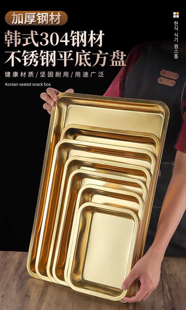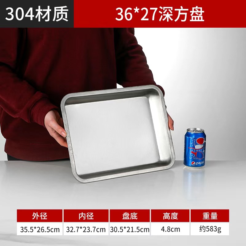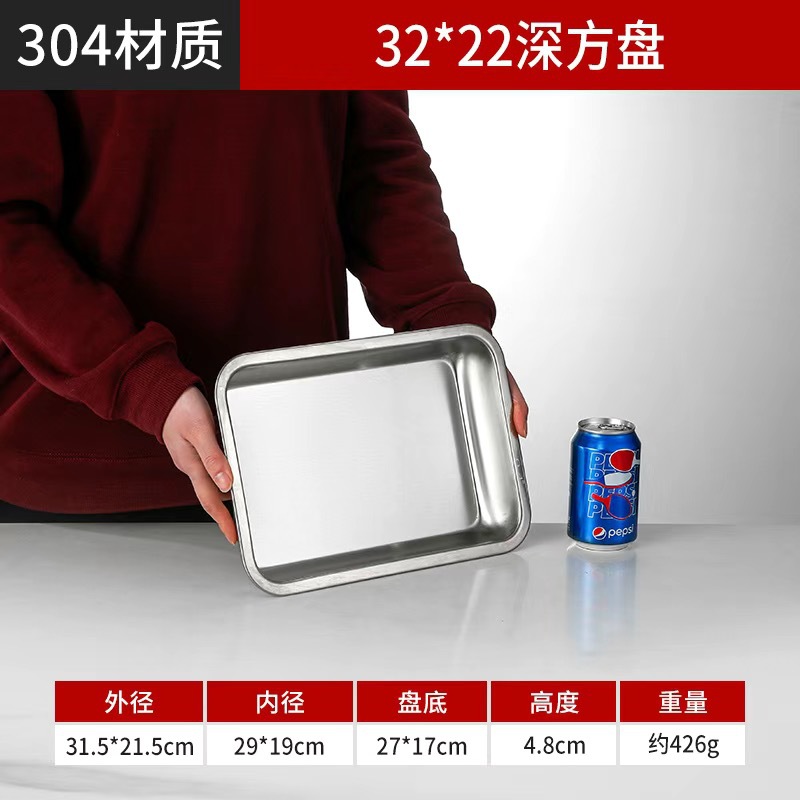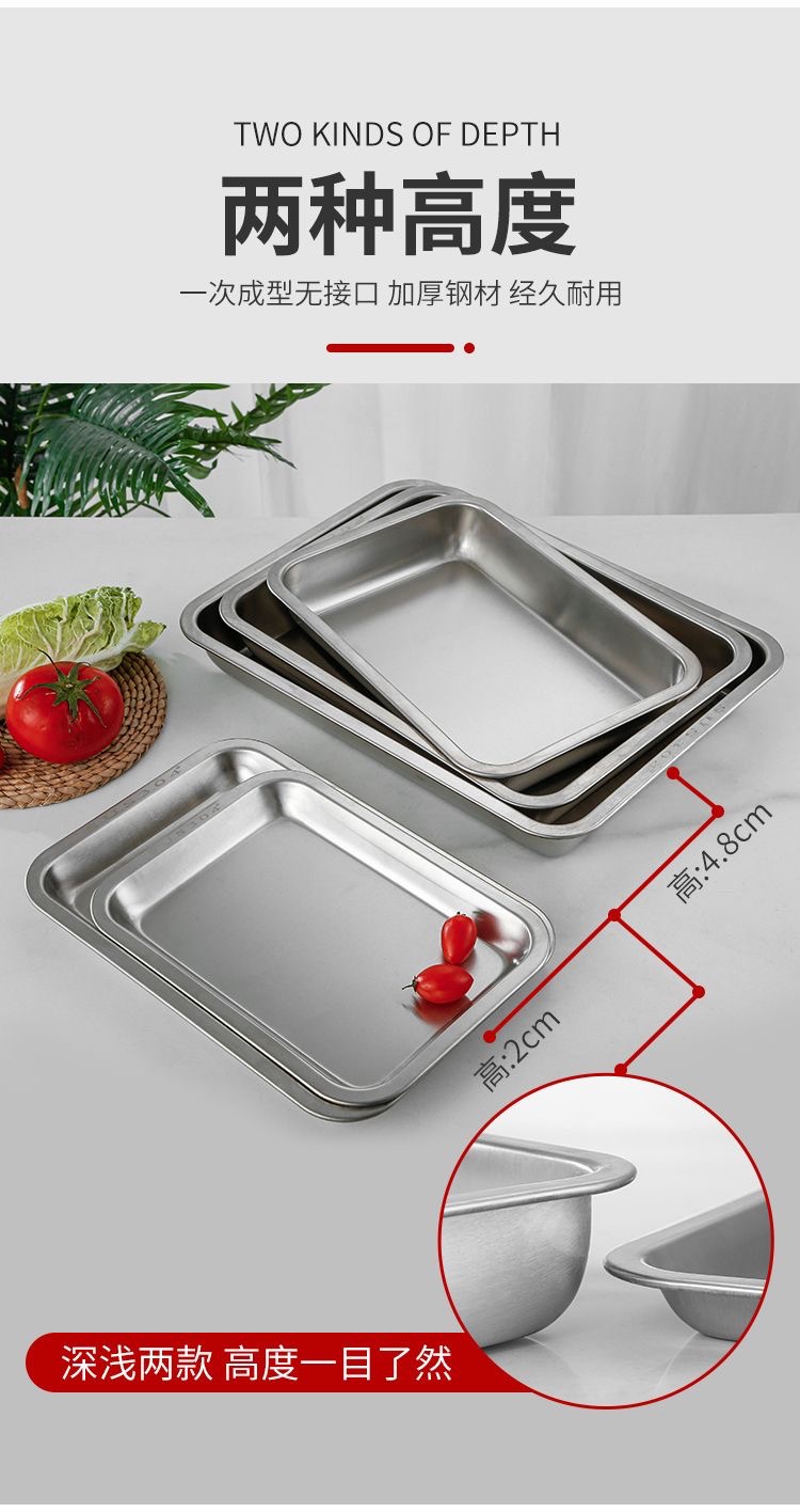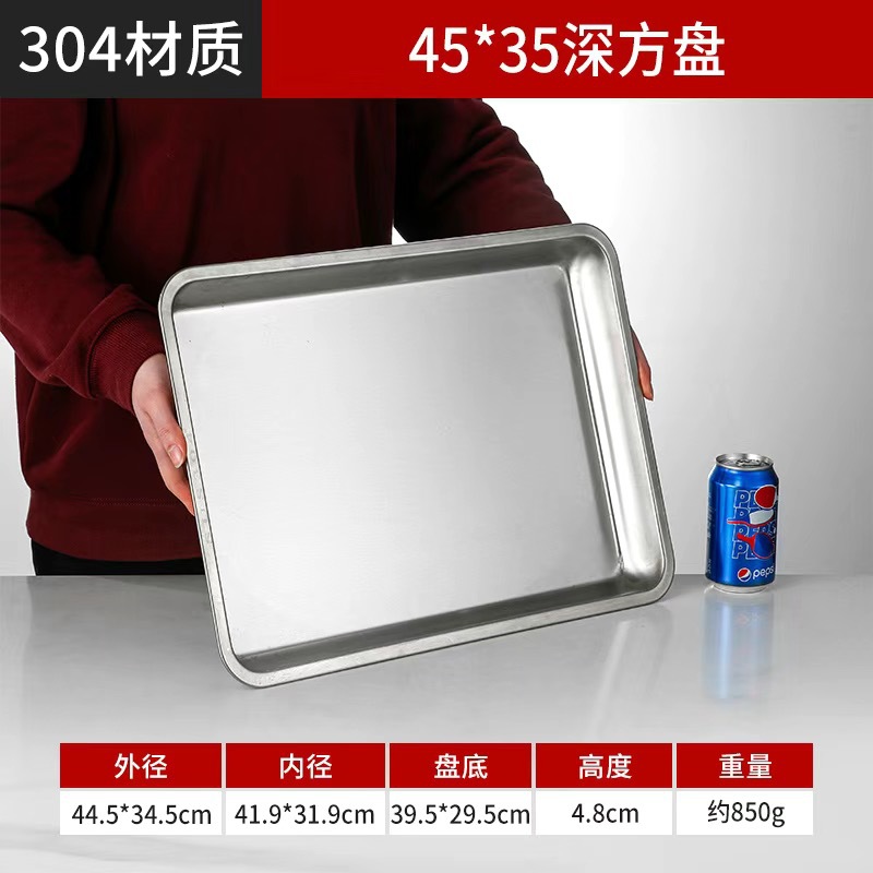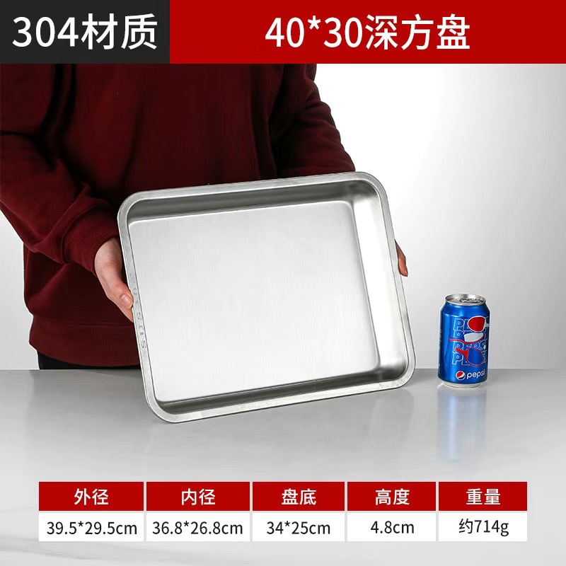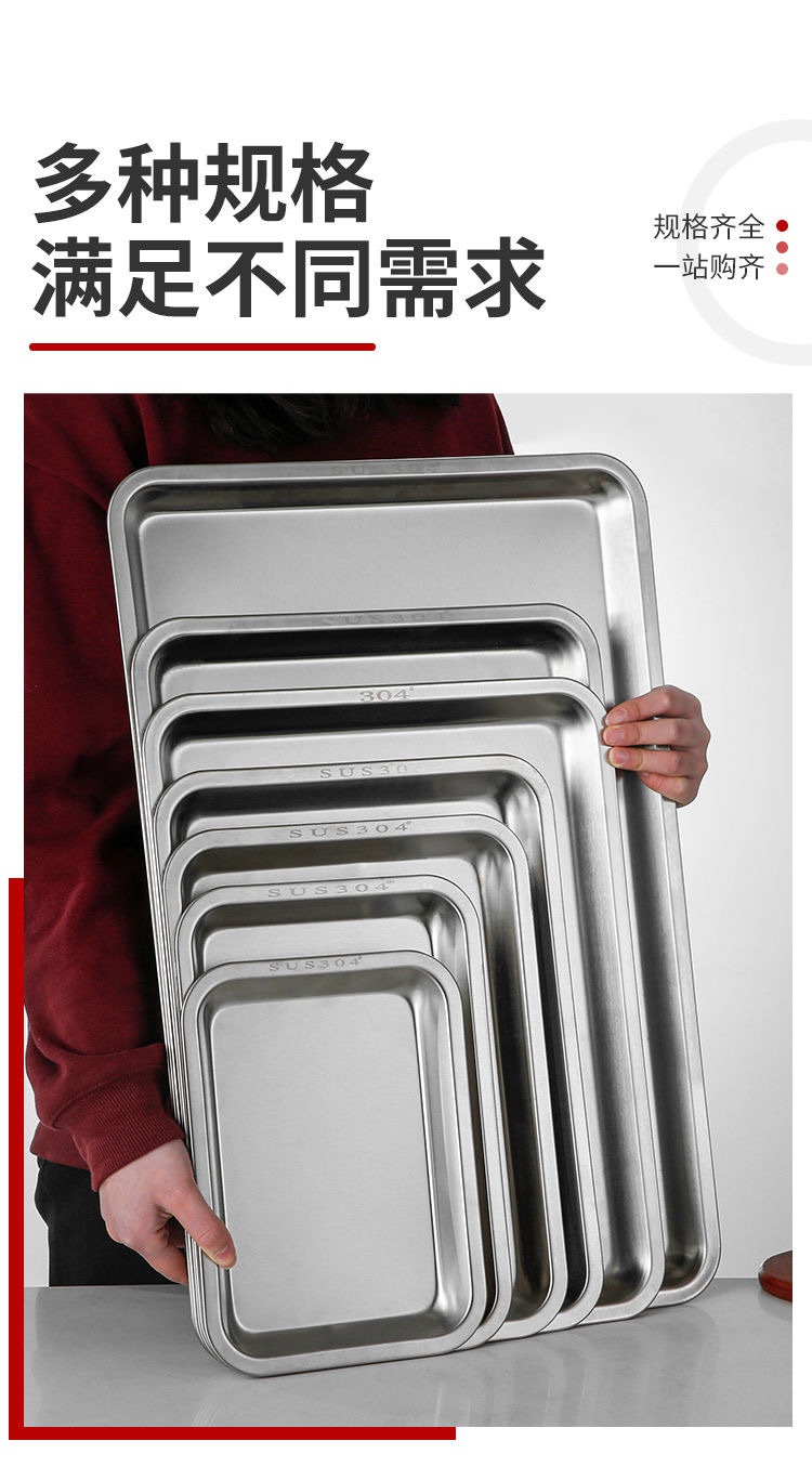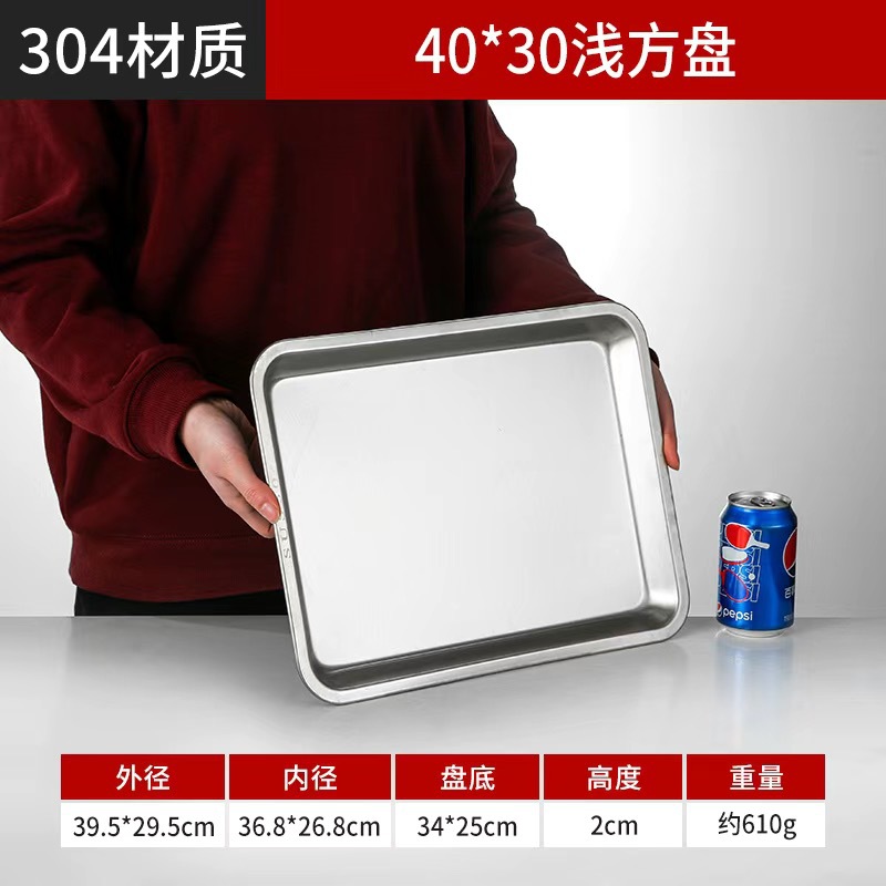 304 식품 등급 스테인레스 스틸 직사각형 트레이 플랫 바닥 바베큐 트레이 물 트레이 추가 두꺼운 상업용 스팀 라이스 트레이스토어 가기