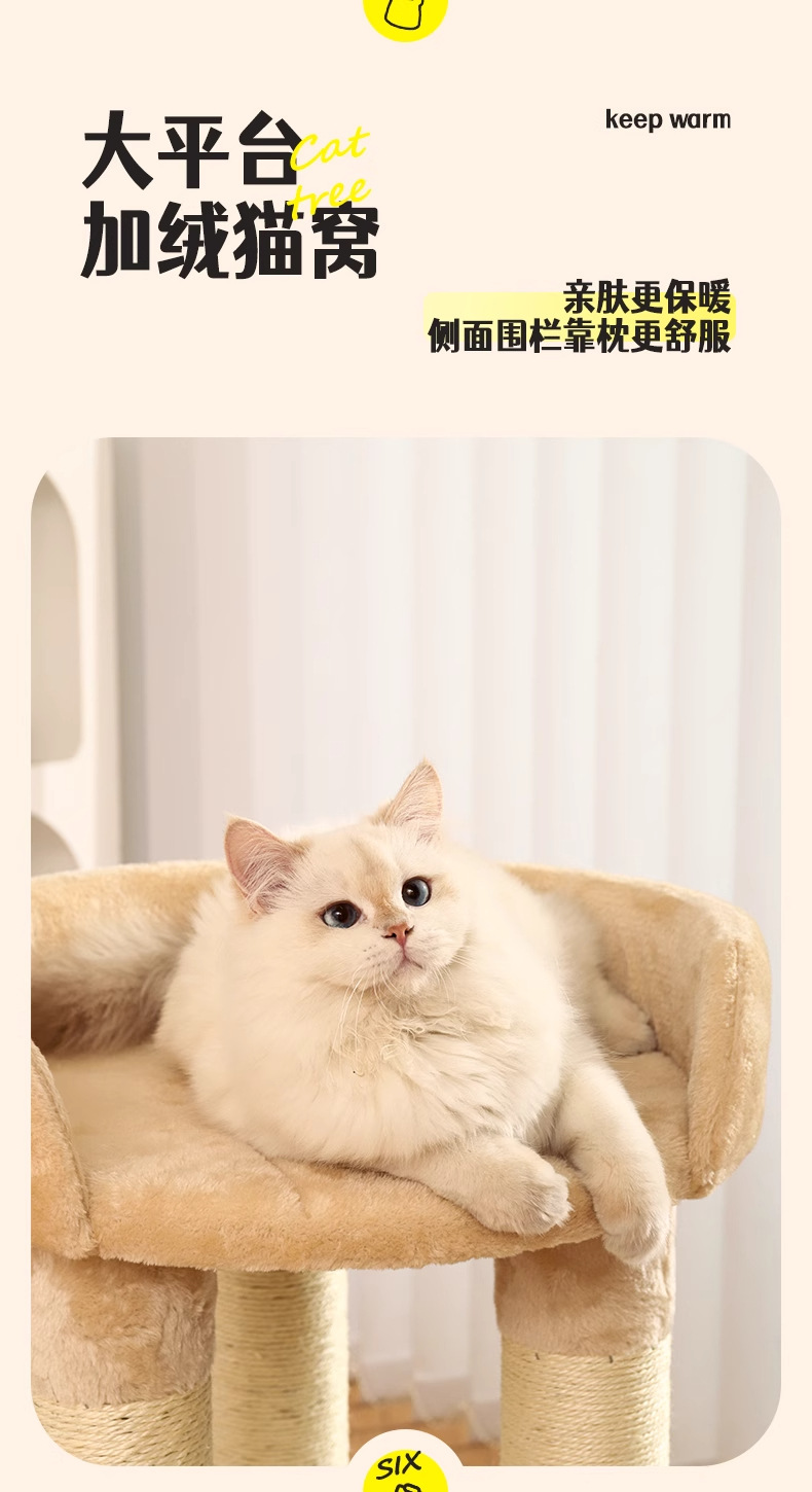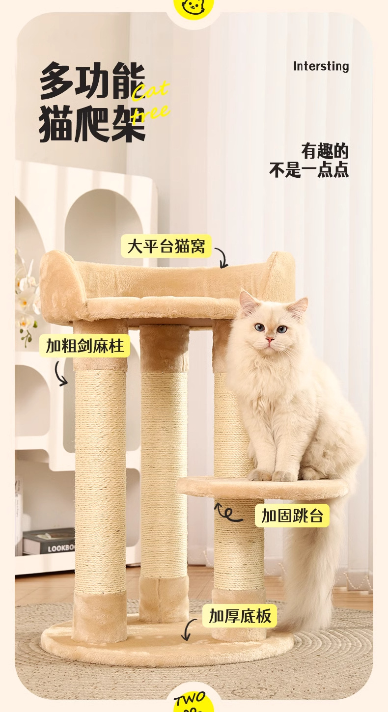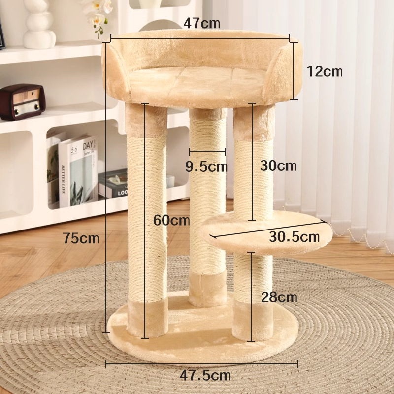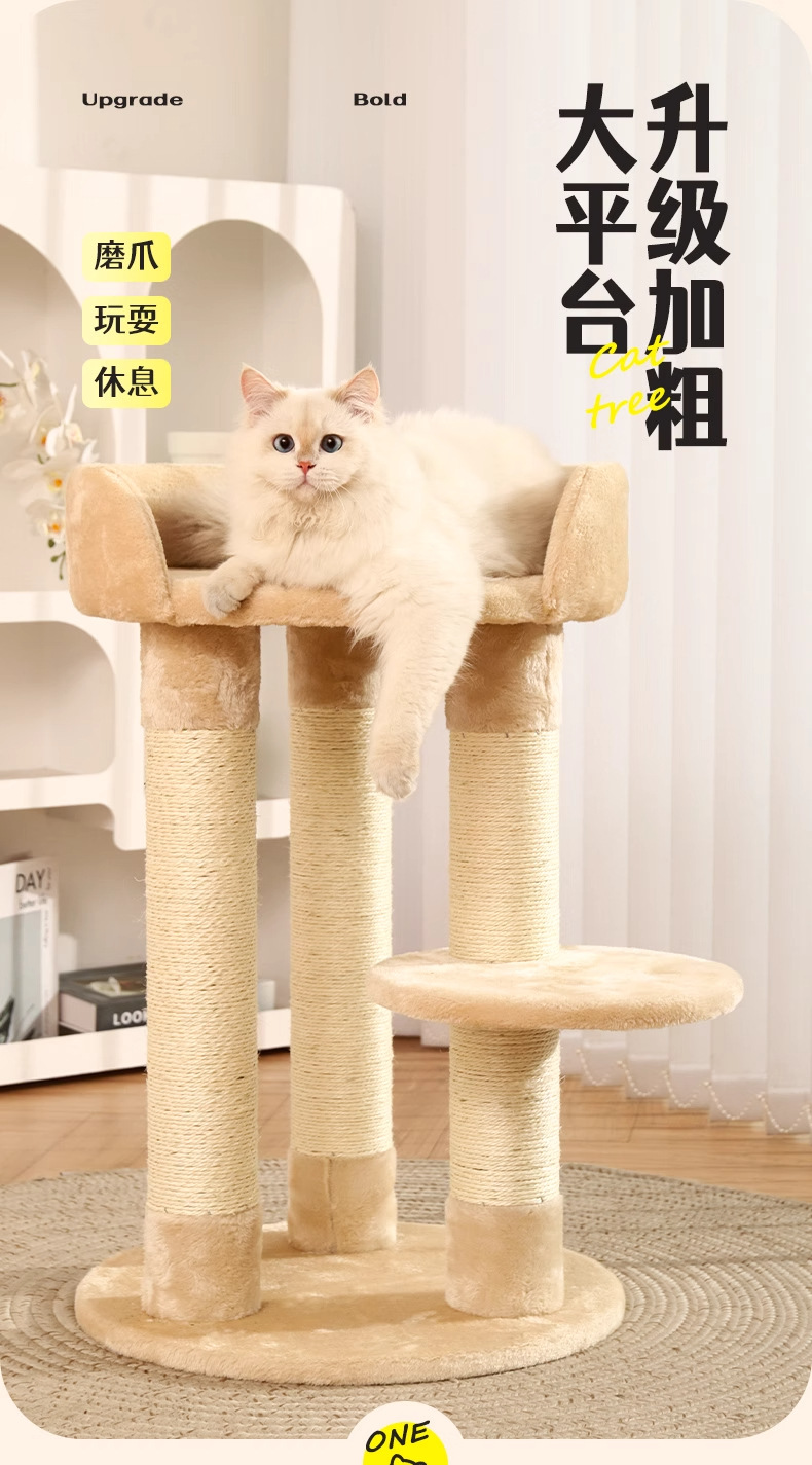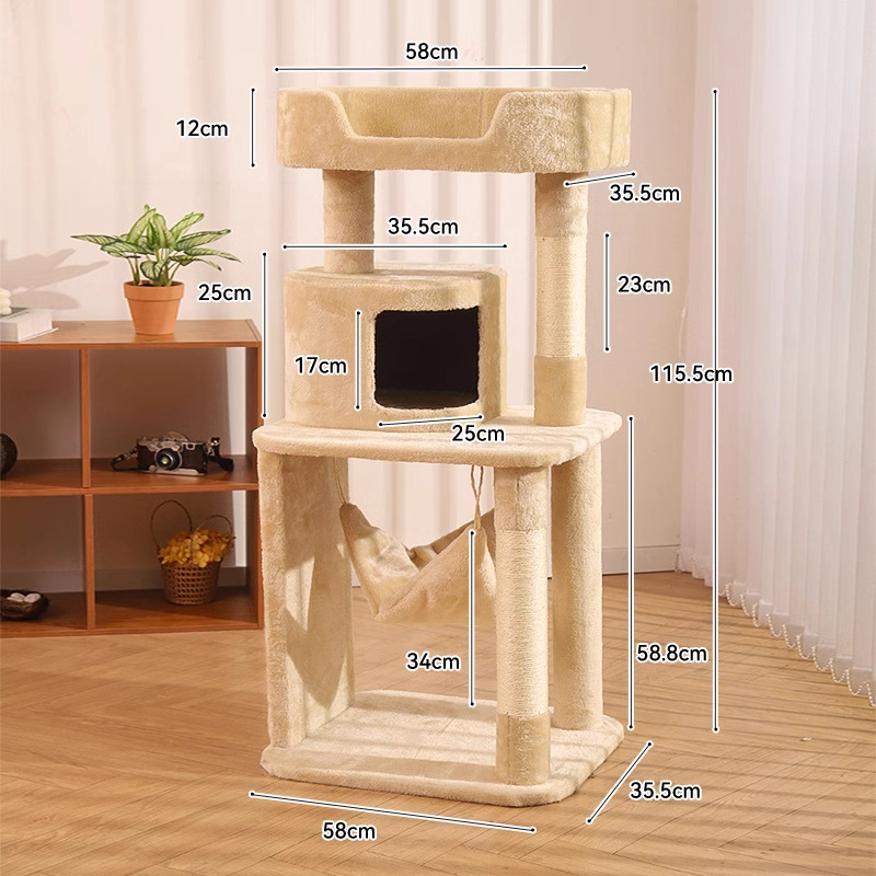 • 대형 플랫폼 고양이 등반 프레임(베이지색) - 둥지 + 해먹 포함