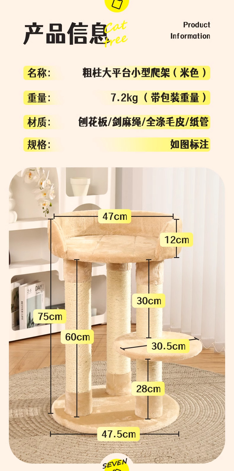 • 대형 플랫폼 소형 클라이밍 프레임(베이지색) 두꺼운 사이잘 기둥
