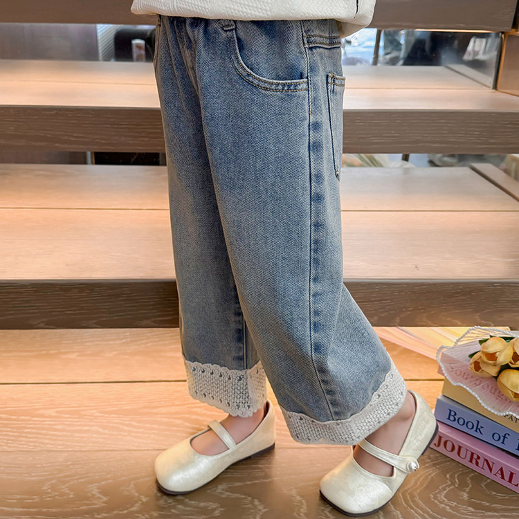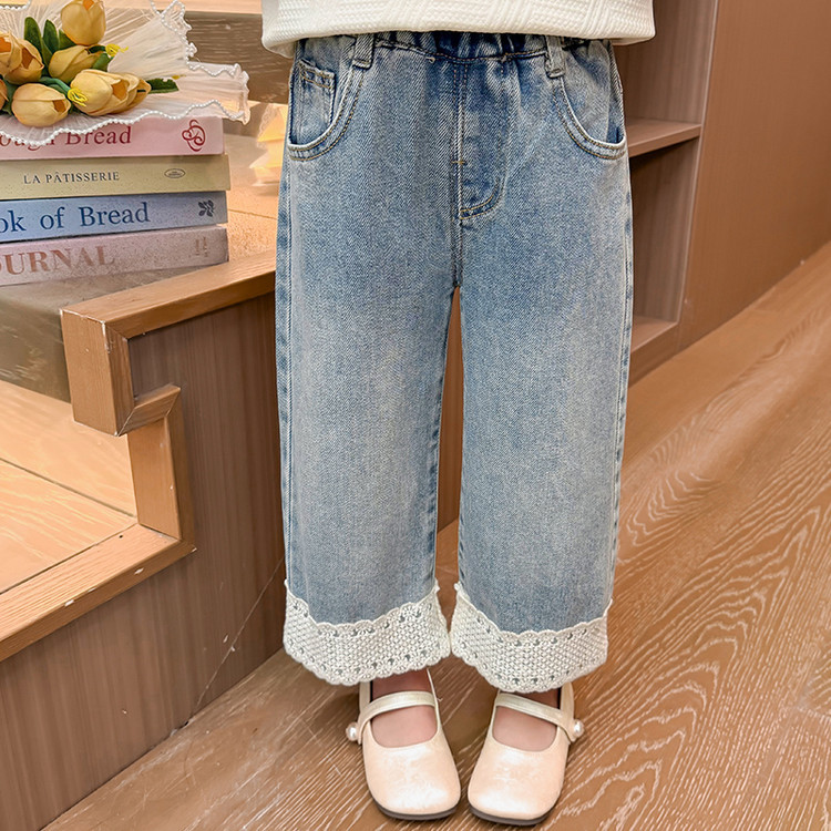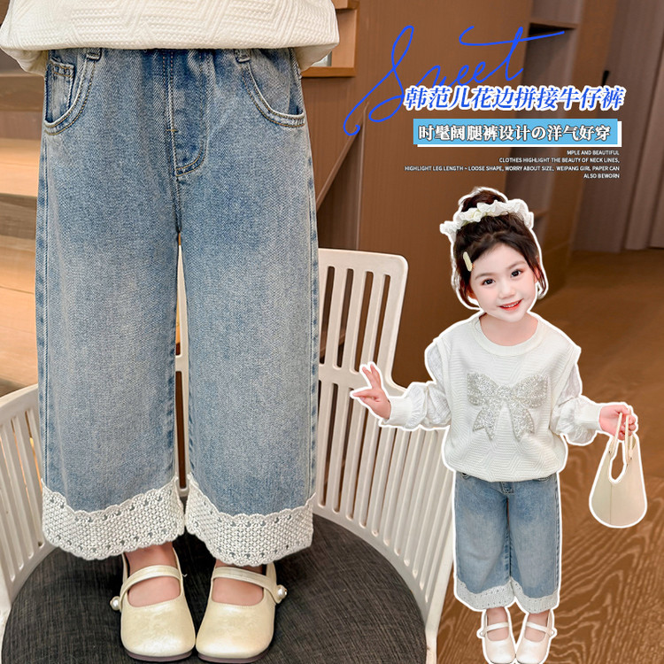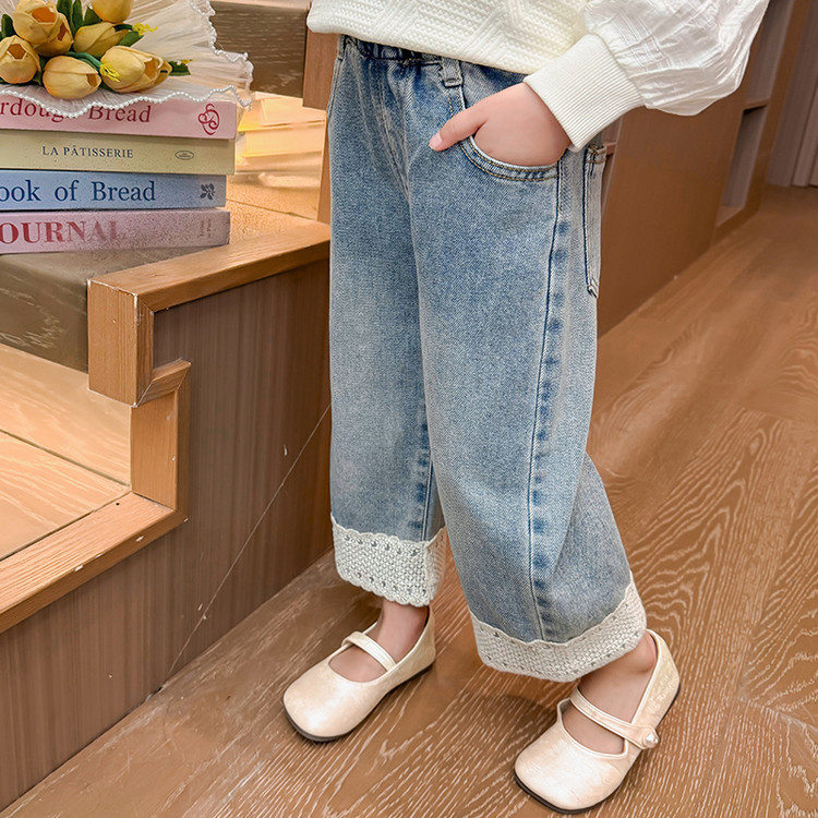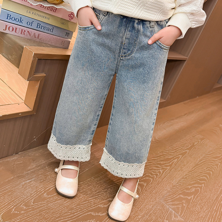 여아 가을 데님 팬츠, 아동용 패셔너블하고 스타일리쉬한 와이드 팬츠, 2026년 신상 여아 캐주얼 스트레이트 팬츠스토어 가기
