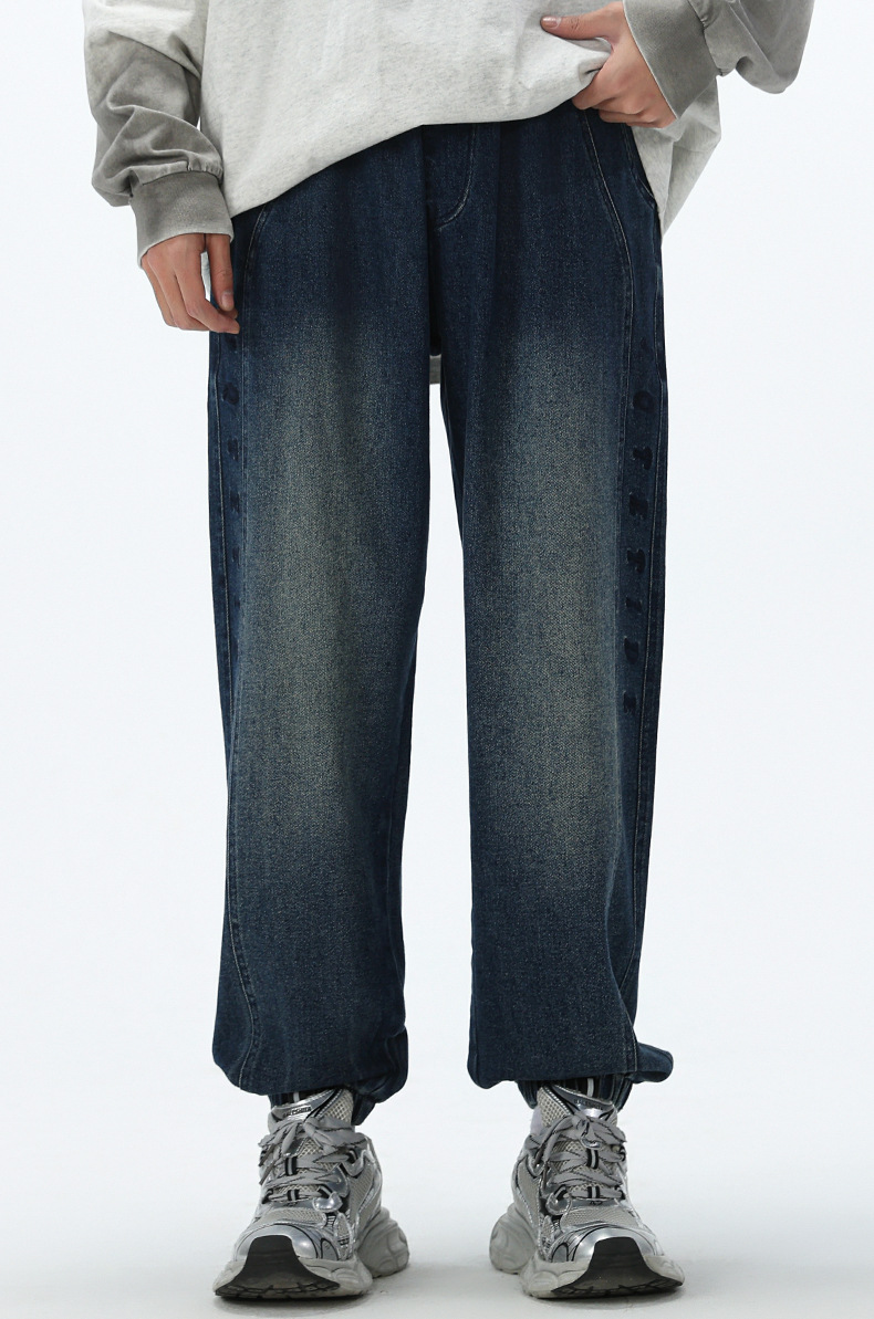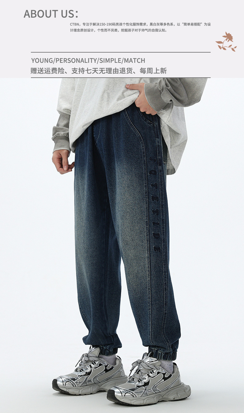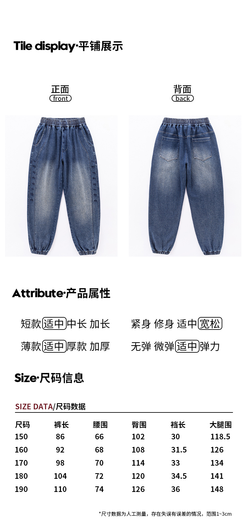 남자 큰 어린이 청바지 2025 봄과 가을 새로운 뚱뚱한 아이들의 봄 캐주얼 바지 청소년 봄 느슨한 중학생스토어 가기