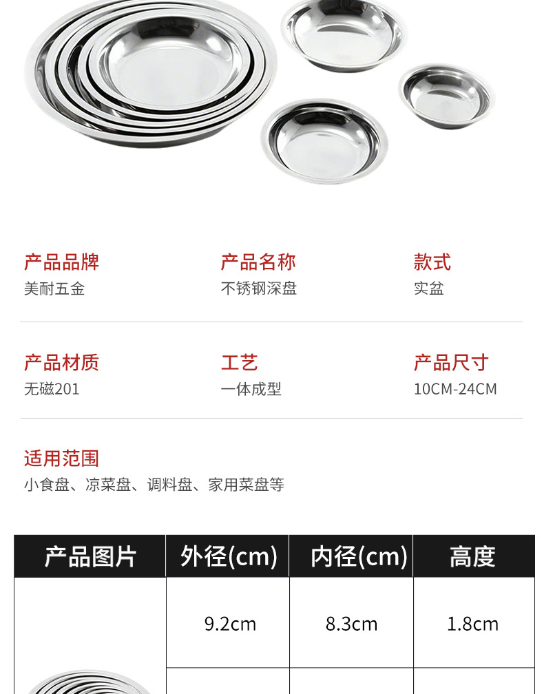 스테인레스 스틸 딥 플레이트 가정용 디스크 스테인레스 스틸 플레이트 접시 둥근 접시 접시 접시 접시 가정용 식기스토어 가기
