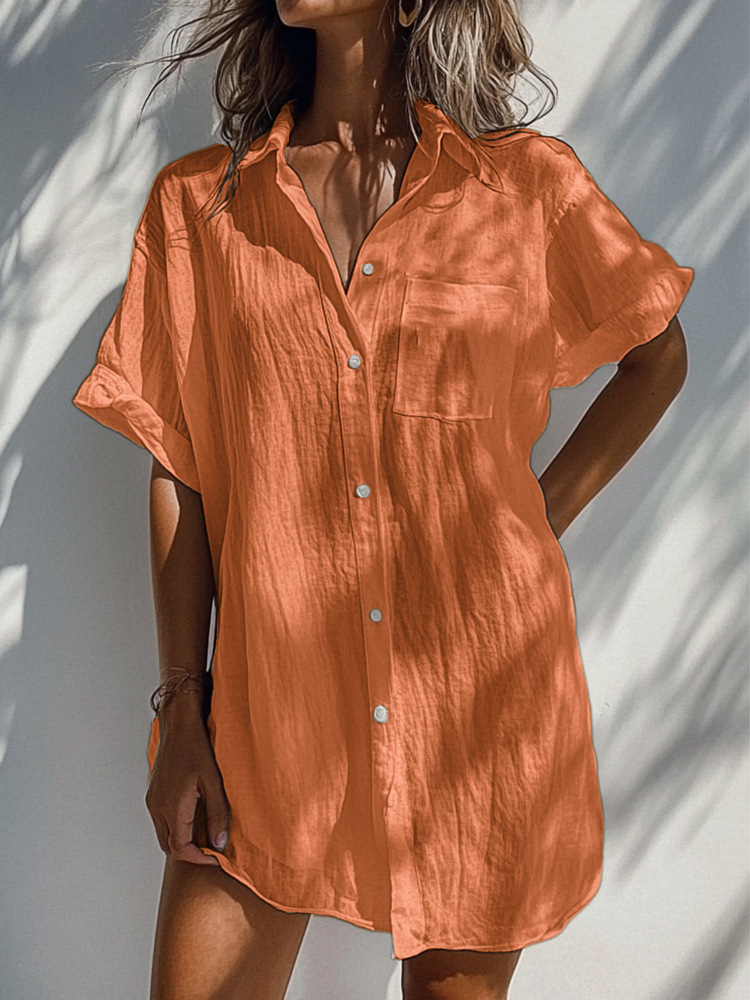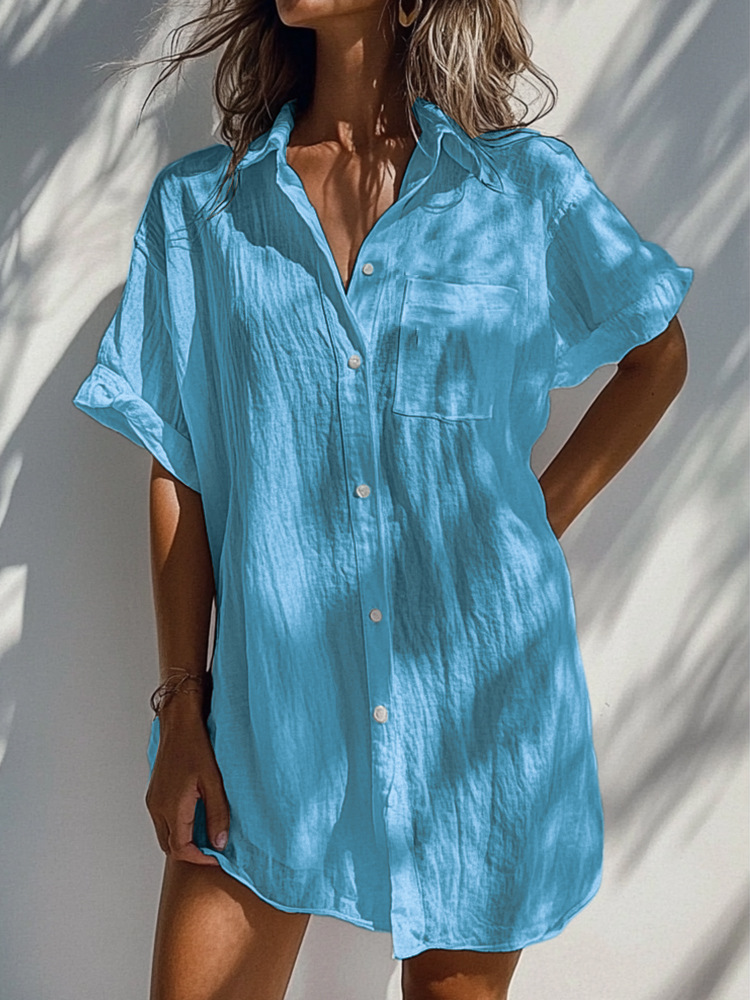 2025 대외 무역 국경 새 여성 캐주얼 반팔 정사이즈 긴 카디건 다색 블라우스