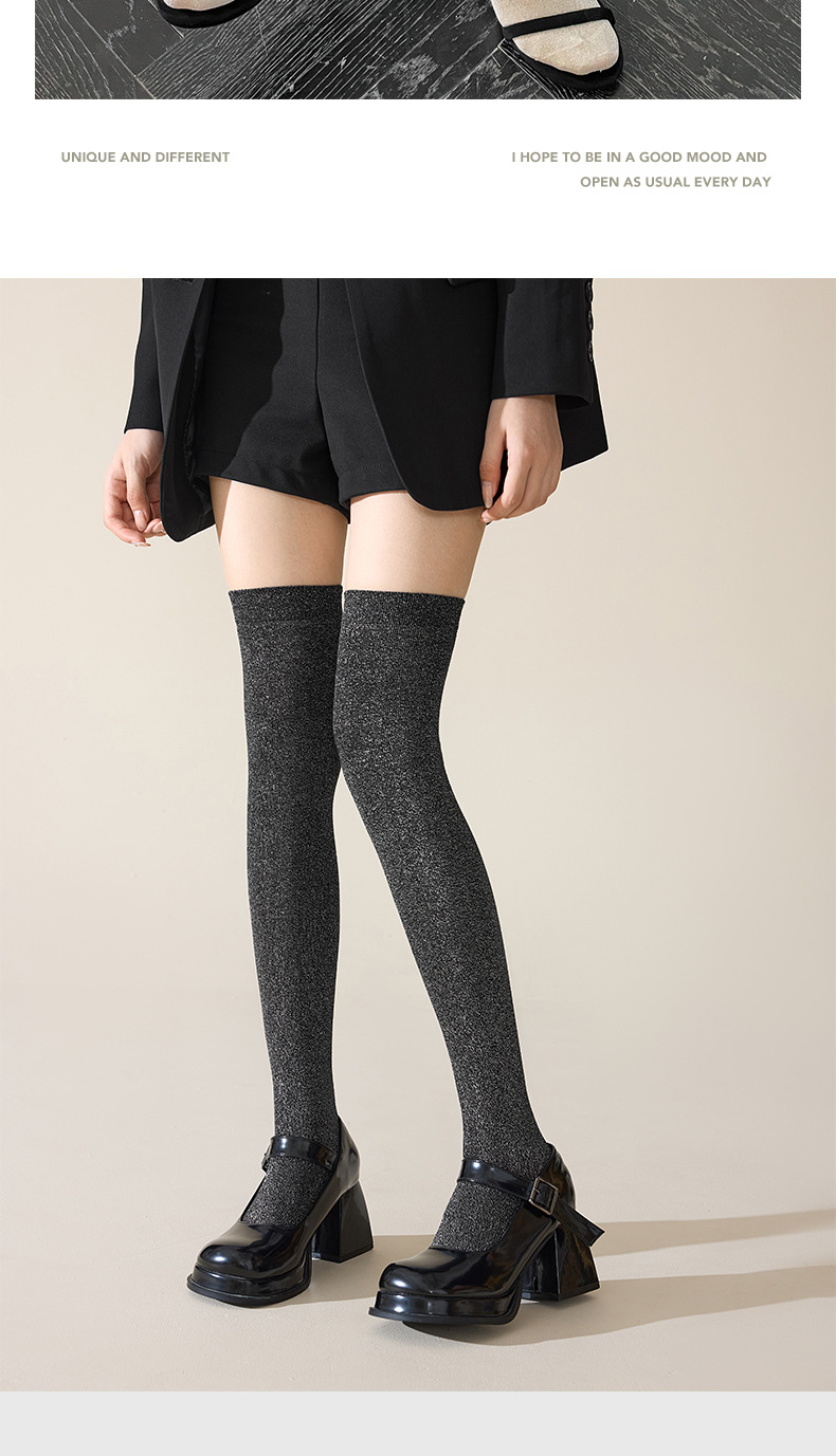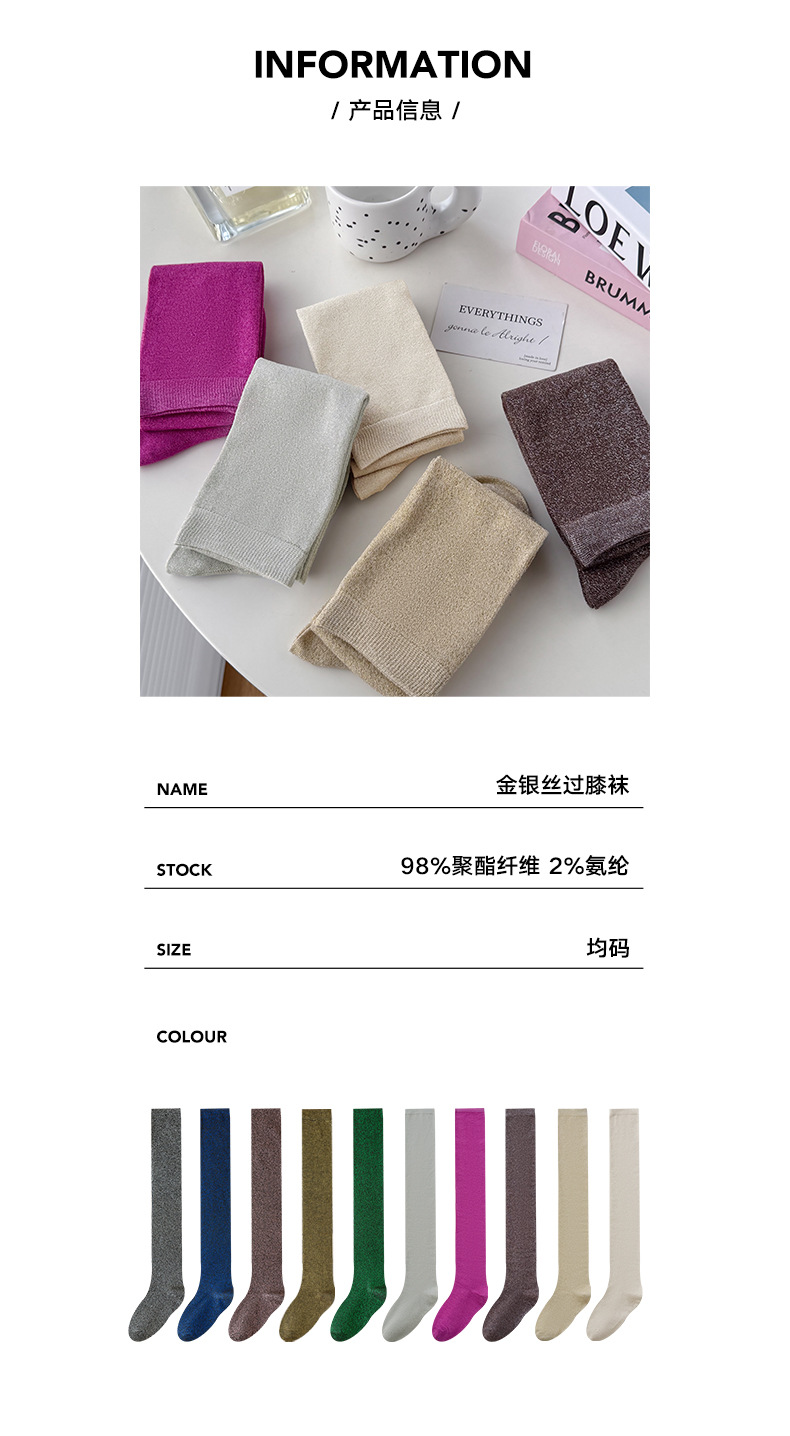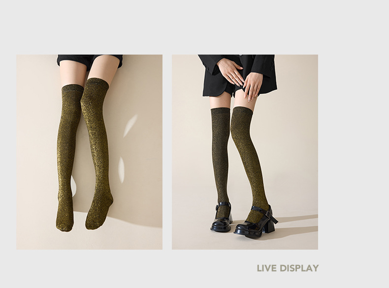 플래시 허벅지 양말 여성 스타킹 골드 및 실버 반짝이는 무릎 위 스타킹 아름다운 다리 긴 다리 빛나는 실크 더미 스타킹 여성스토어 가기