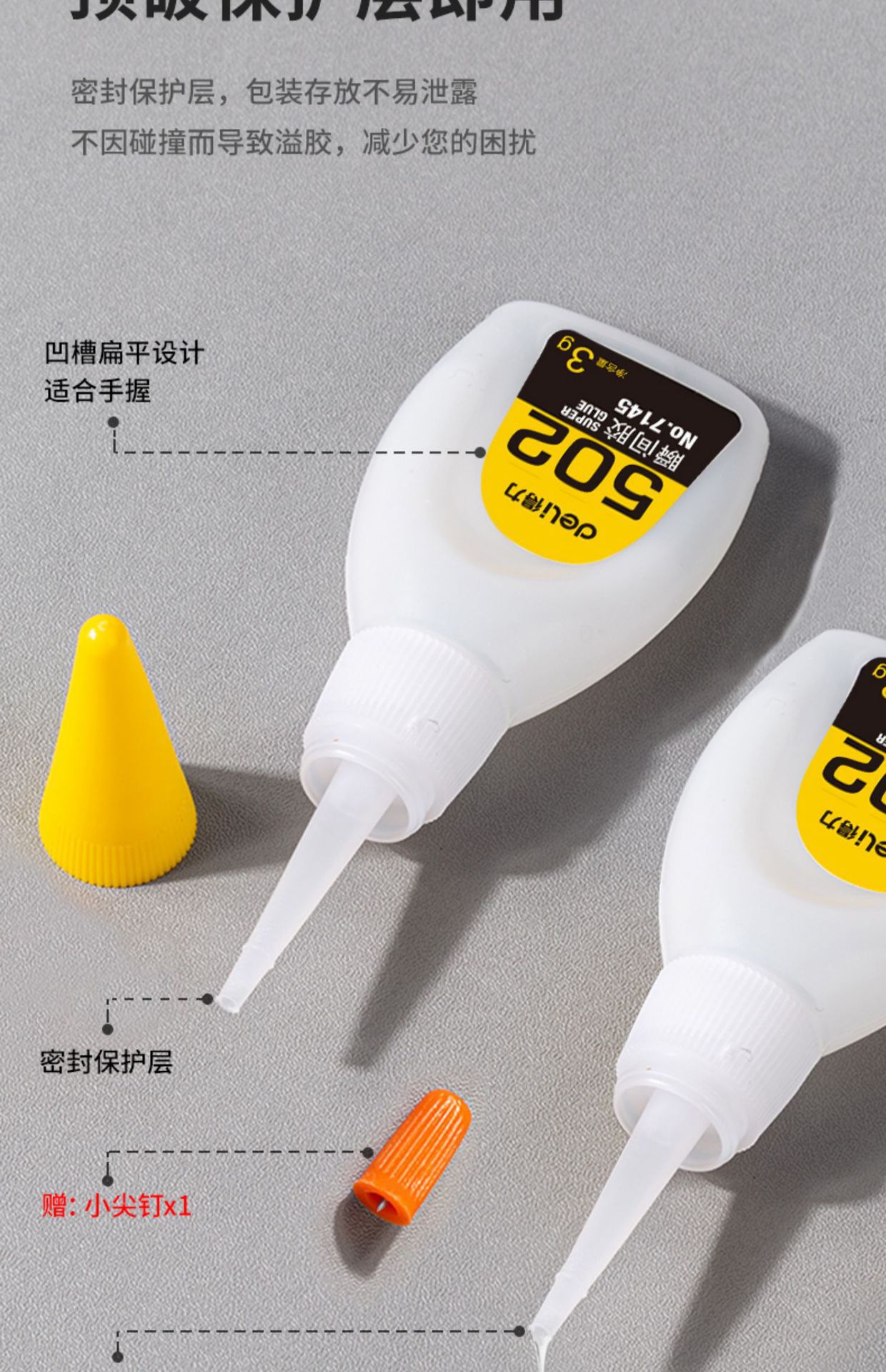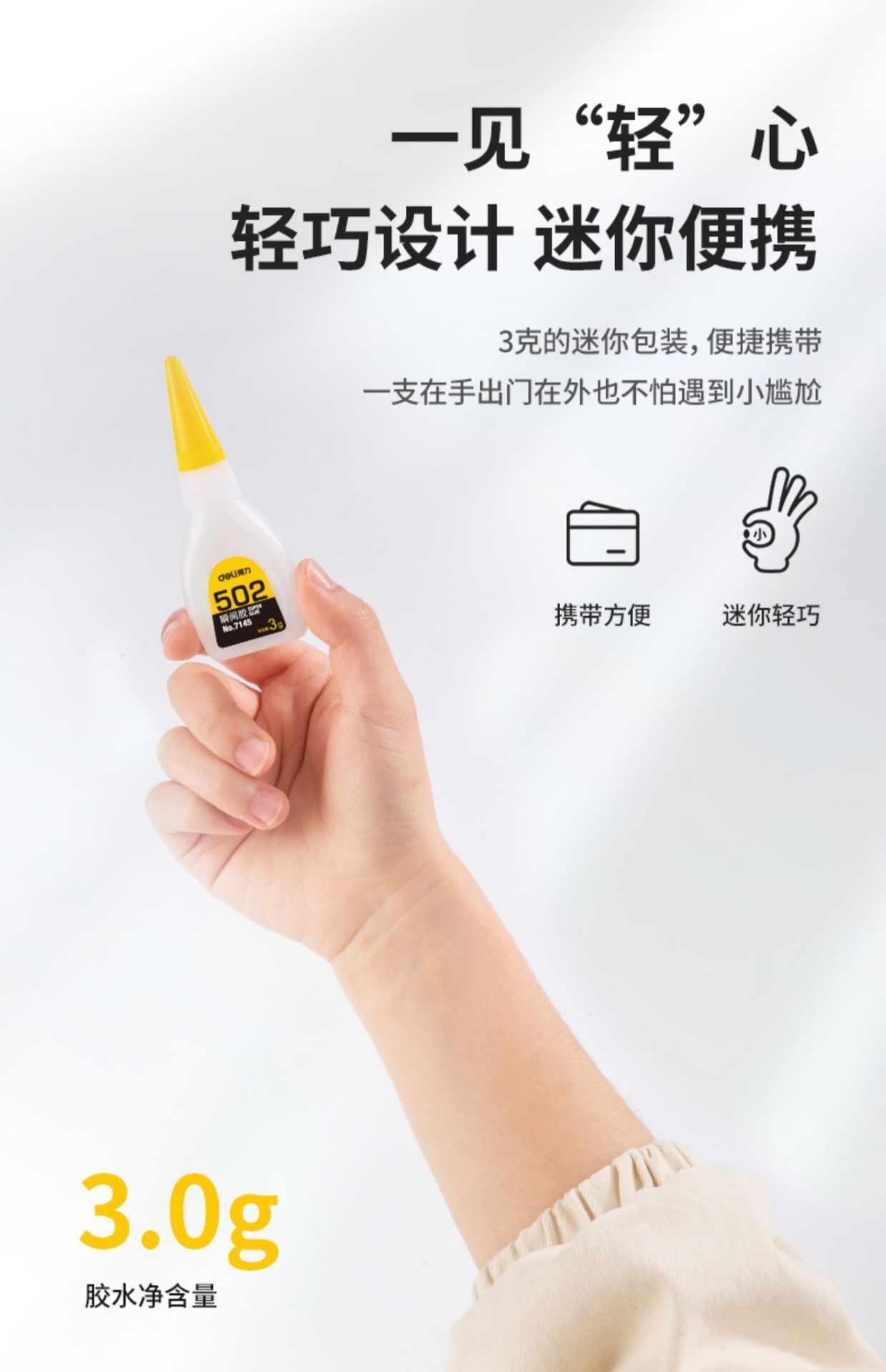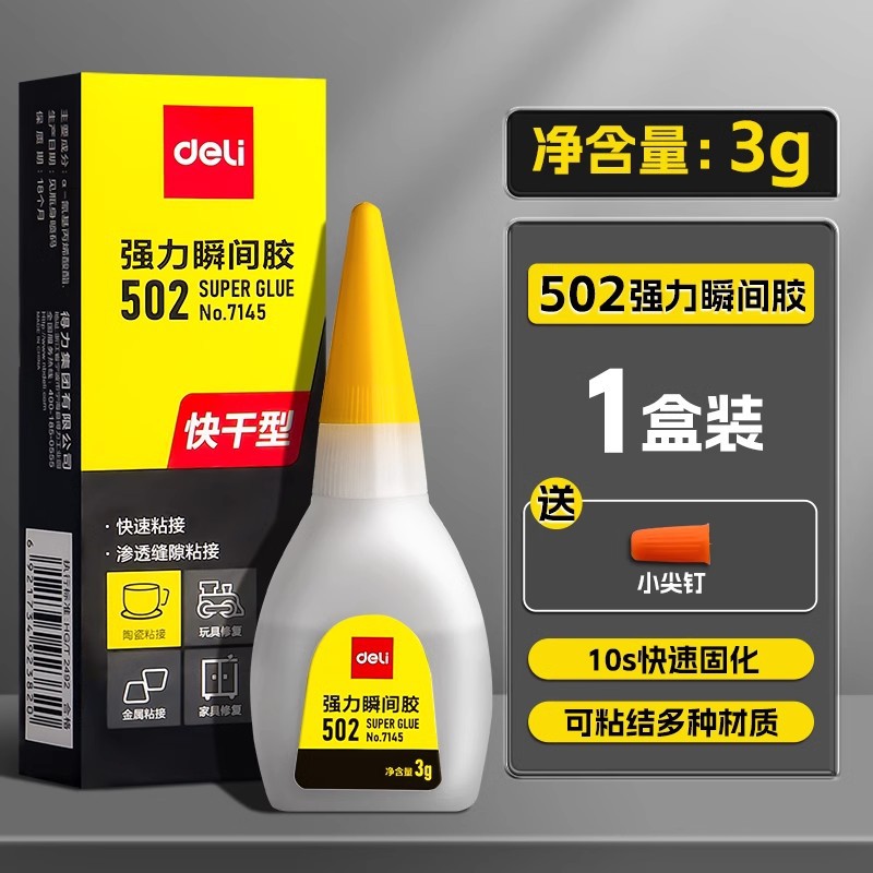 델리 7145-502 강력한 인스턴트 접착제 3g 세라믹 나무 유리 돌 장난감 강한 붙여 넣기 특수 접착제