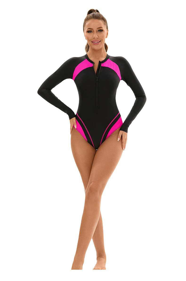 국경 간 새로운 색상 매칭 긴팔 트라이앵글 여성 수영복 유럽과 미국의 섹시한 꽉 끼는 서핑 수트 보수적 인 수영복 수영복스토어 가기