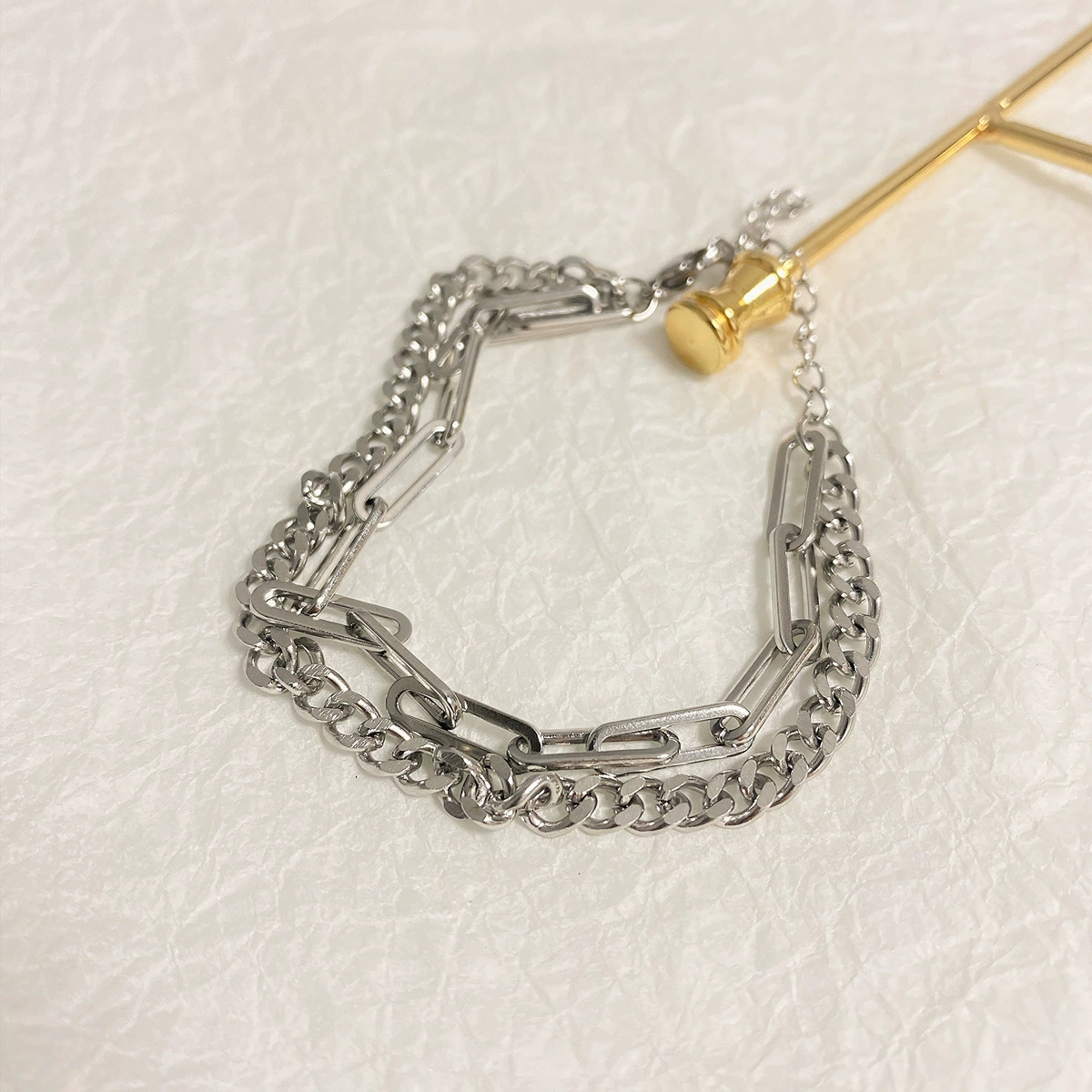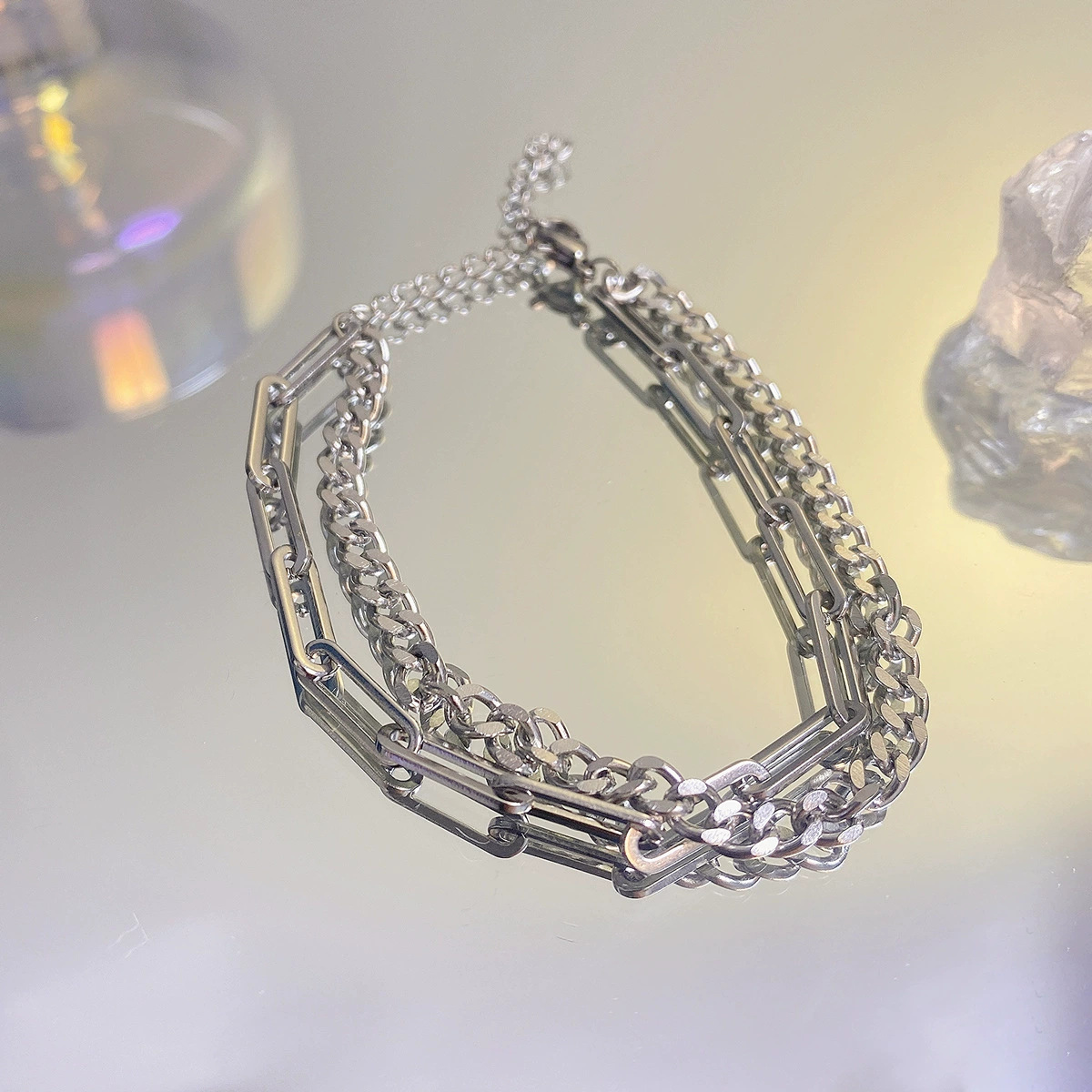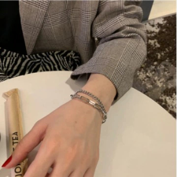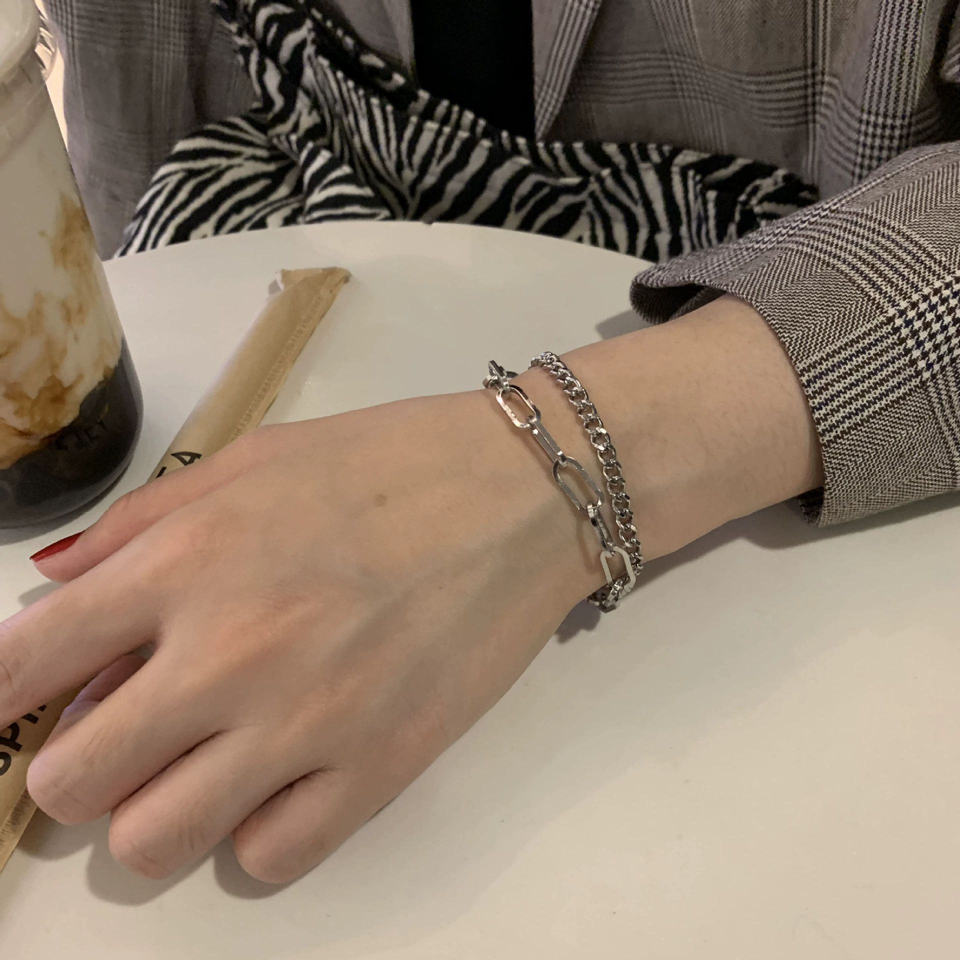 더블 레이어 스택 팔찌 인 쿨 스타일 중립 틈새 디자인 센스 여자 친구 커플 팔찌 독특한 패션 액세서리스토어 가기