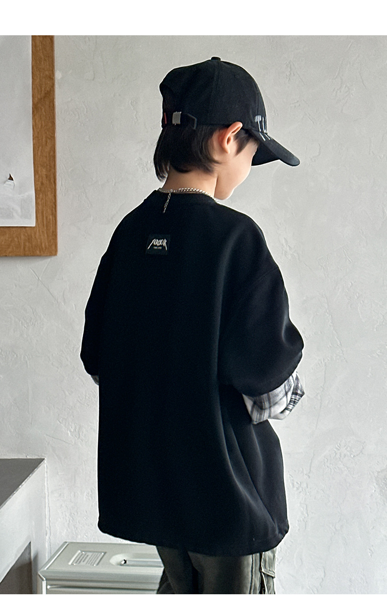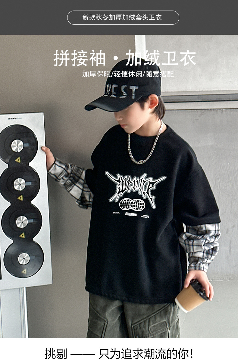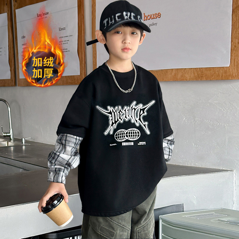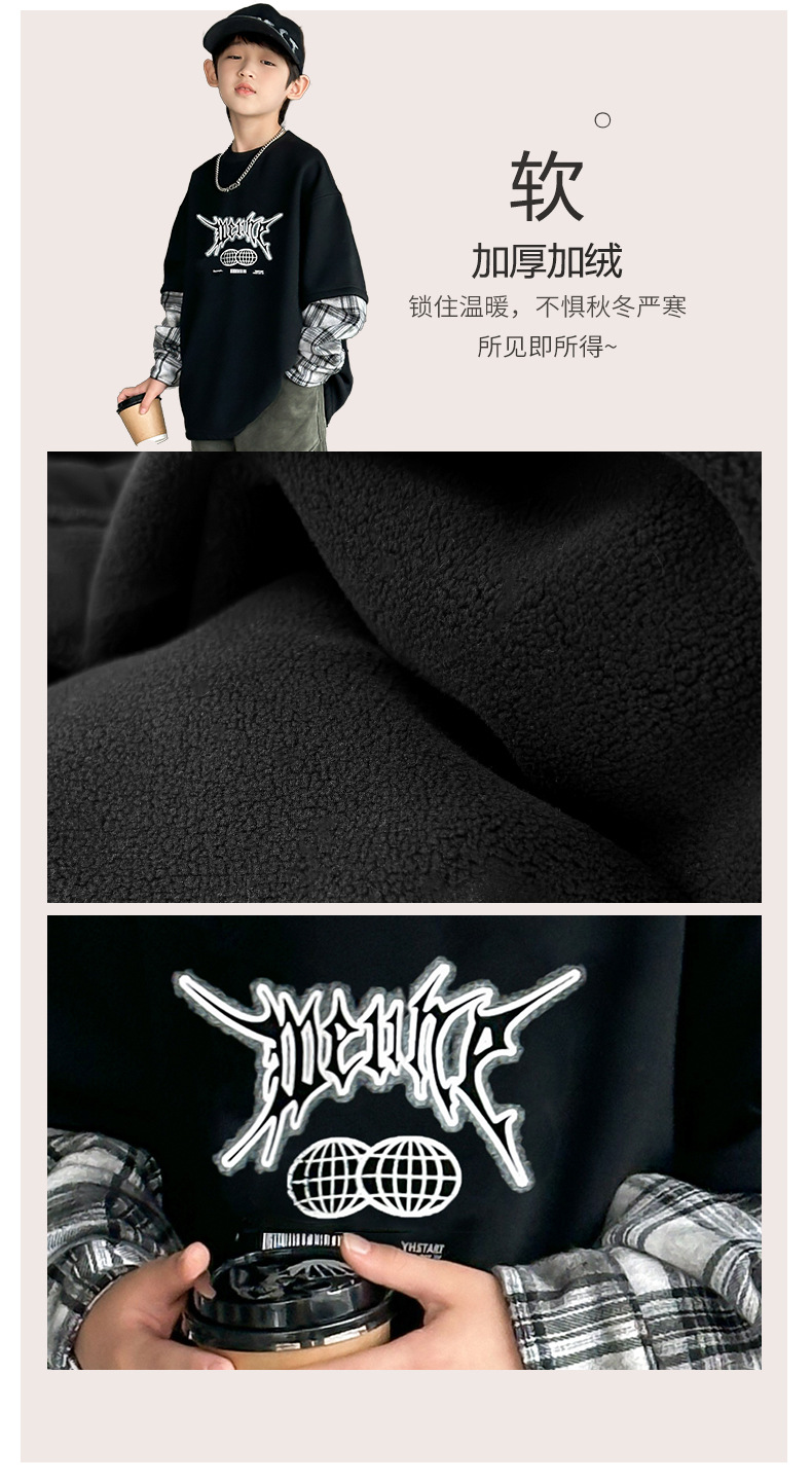 소년 양털 스웨트 셔츠 가을, 겨울 2025 새로운 아동복 겨울 올인원 양털 두꺼운 겨울 라운드 넥 바닥 셔츠스토어 가기