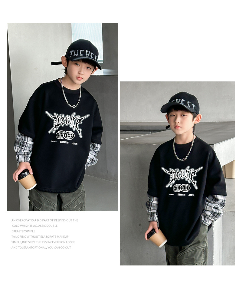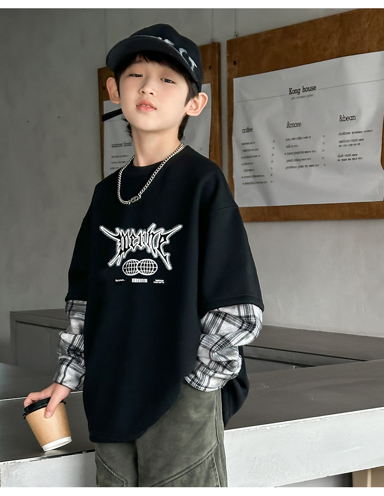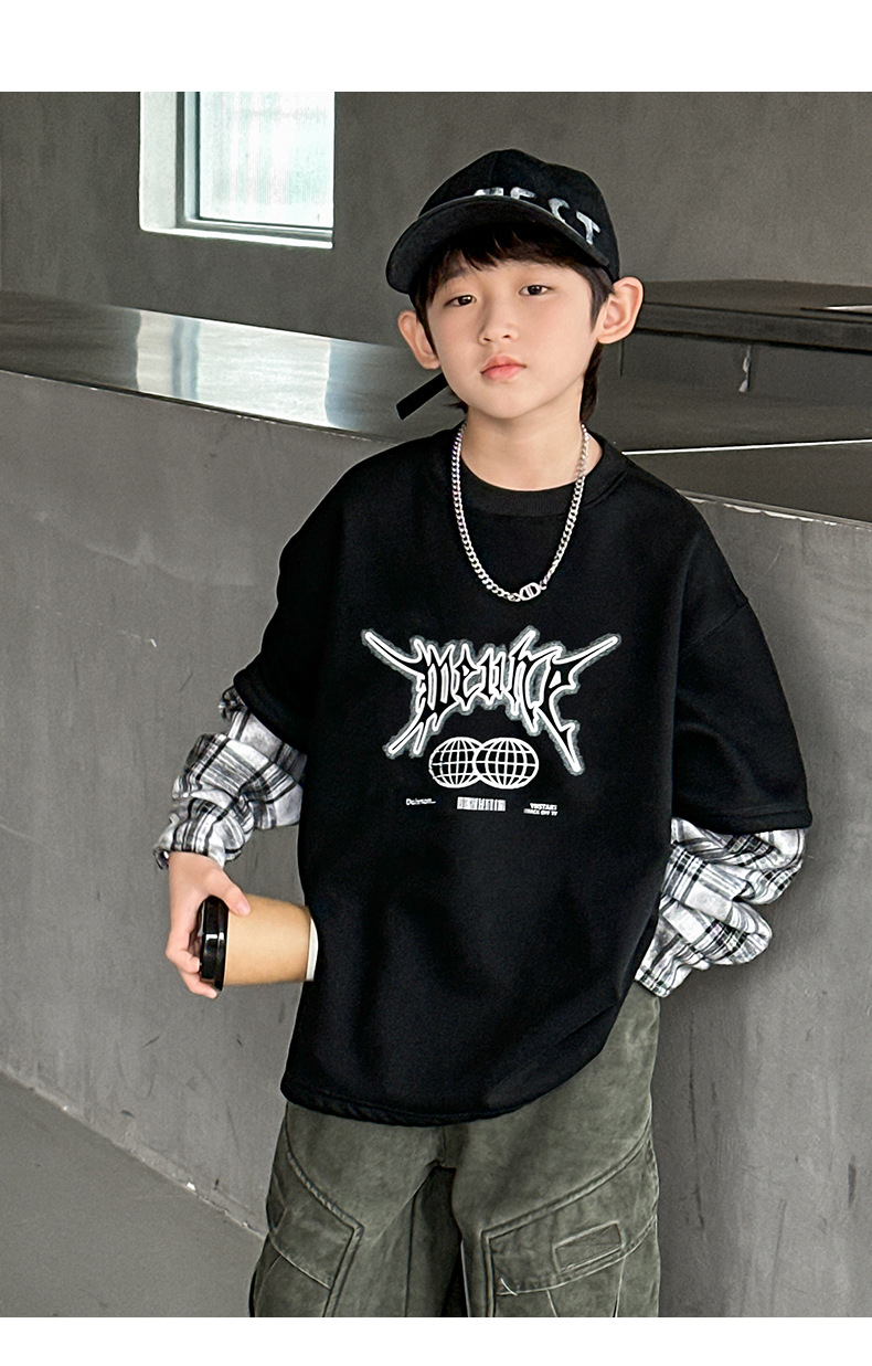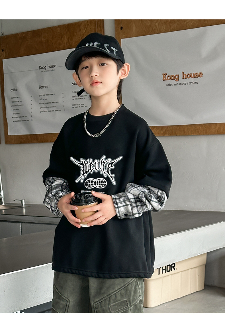 소년 양털 스웨트 셔츠 가을, 겨울 2025 새로운 아동복 겨울 올인원 양털 두꺼운 겨울 라운드 넥 바닥 셔츠스토어 가기
