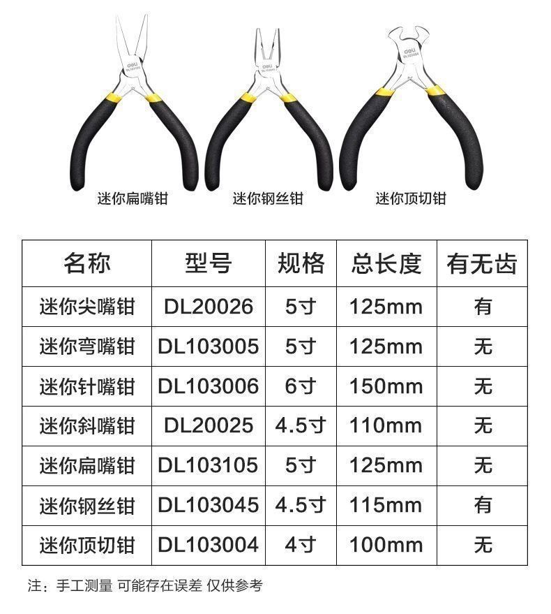 델리 미니 와이어 펜치 뾰족한 코 펜치 대각선 펜치 구부러진 코 펜치 바늘-코 펜치 플랫 코 펜치 수동 소형 펜치 미니 펜치