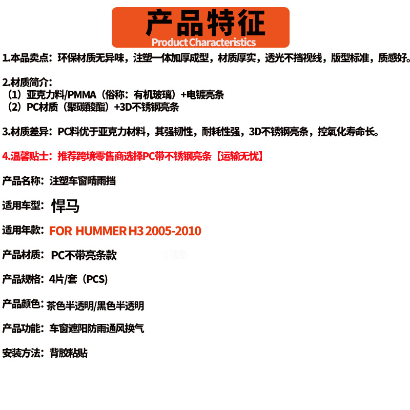 Hummer H2 H3 자동차 창 비 방패 태양 바이저 비 눈썹 허머 h3 창 바이저에 적합