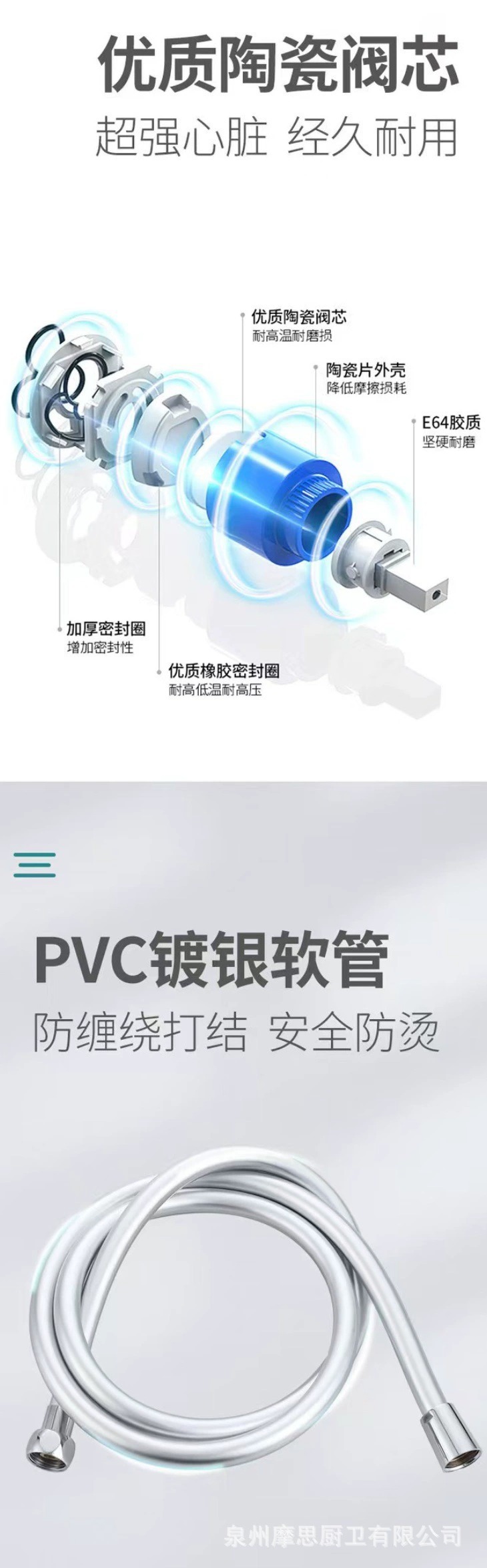 • [전기도금 실버] 구리 본체 - 3가지 기능 구리 물 분배기 샤워 헤드