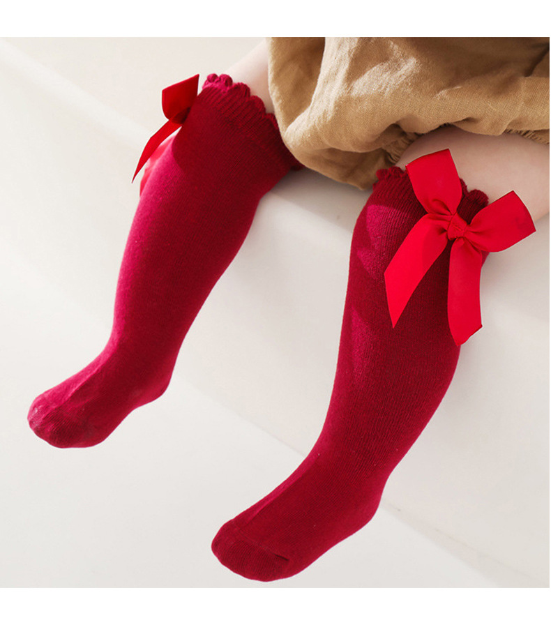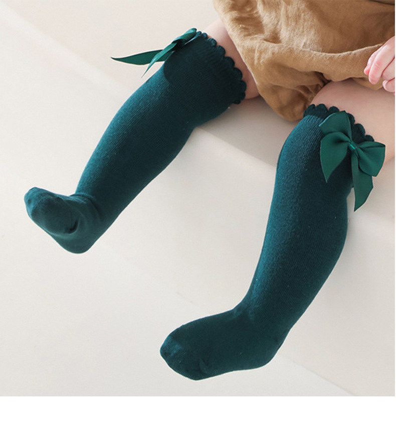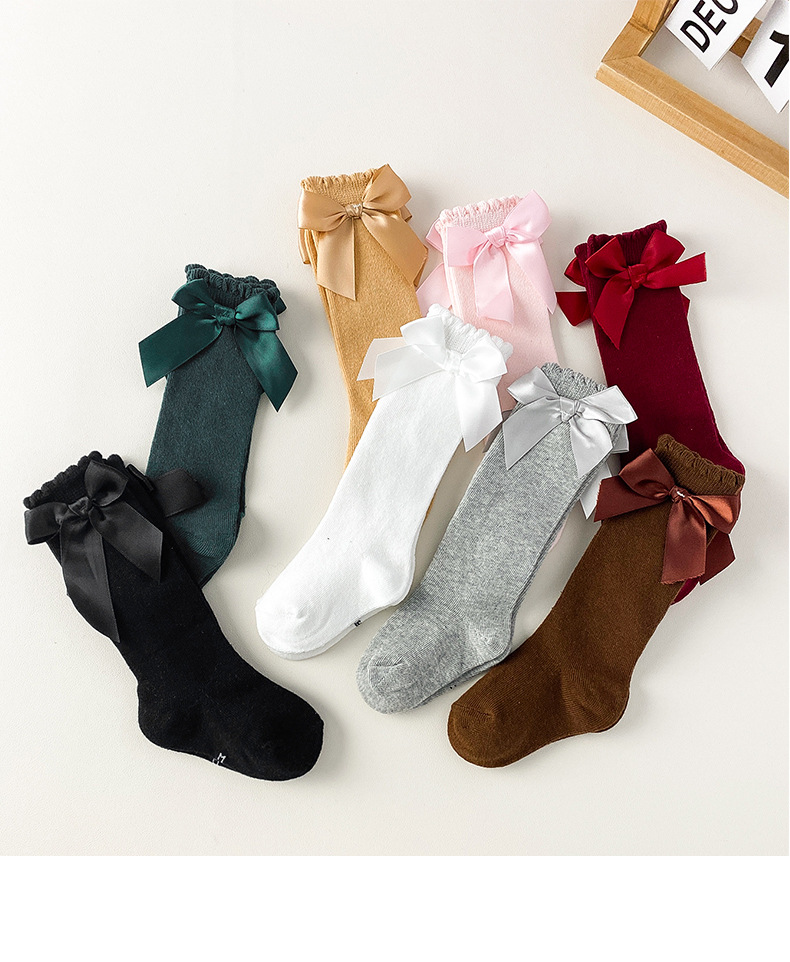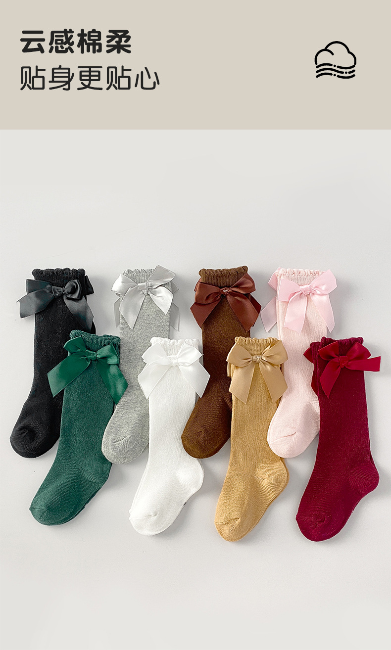 아기 양말 아기 큰 활 원피스 소녀 학생 공주 양말 긴 튜브 느슨한 양말 간단한 사계절 아기 소녀