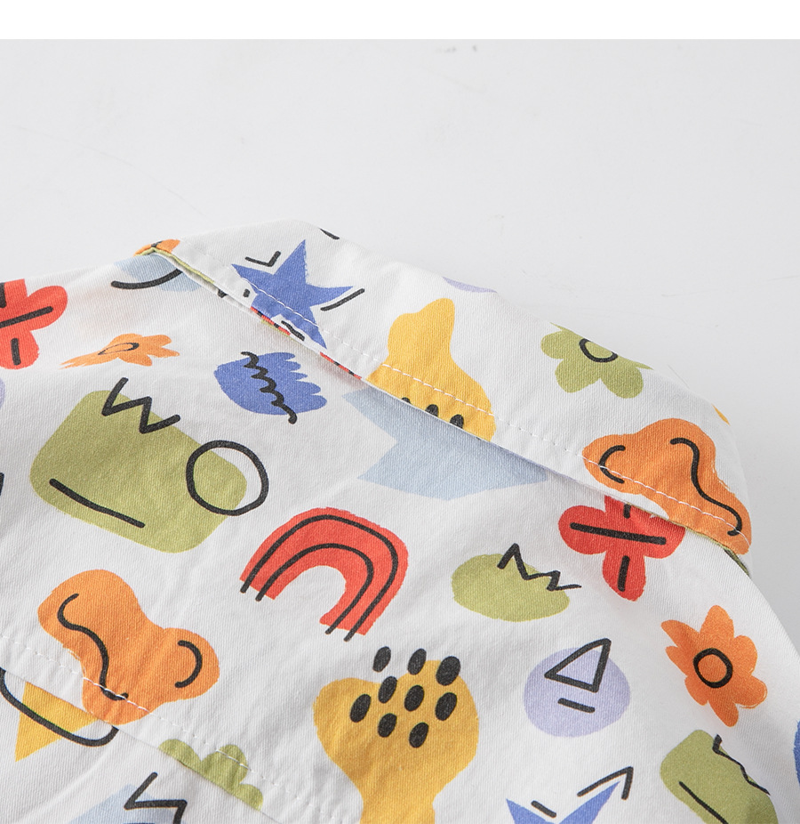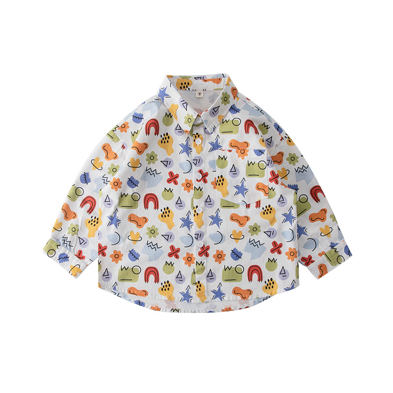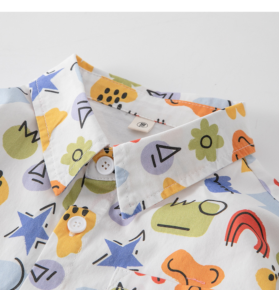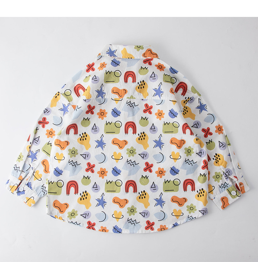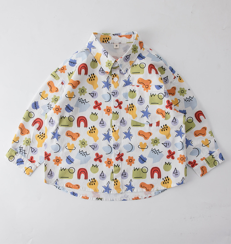 거리를 날려! 2025 봄과 가을 만화 잘 생긴 셔츠 소년의 꽃 셔츠 중 큰 어린이 캐주얼 탑 옷깃 한국 셔츠스토어 가기