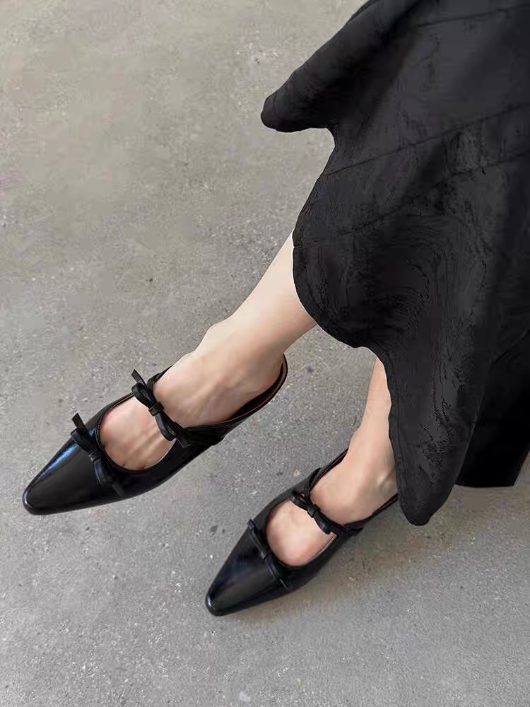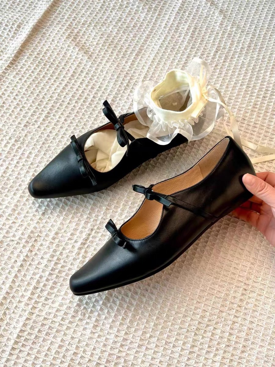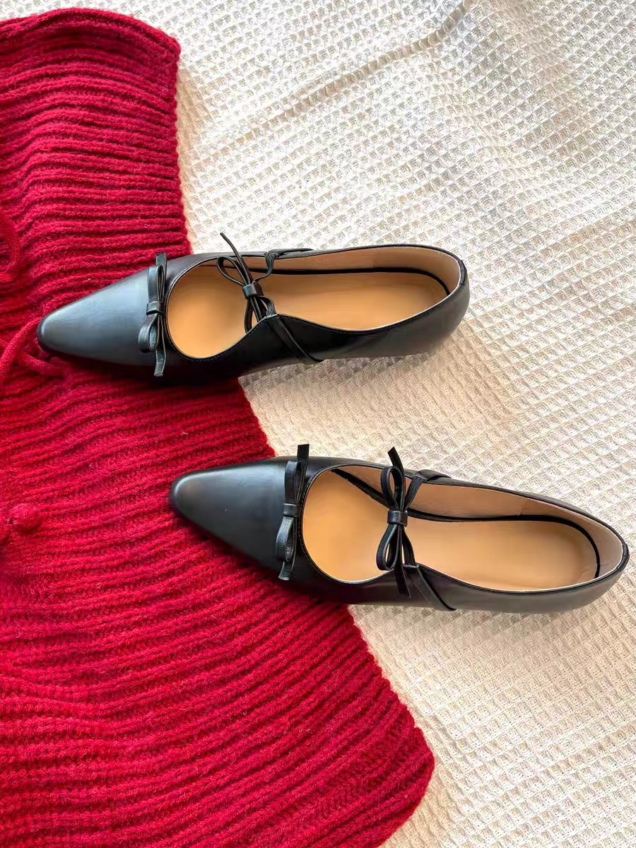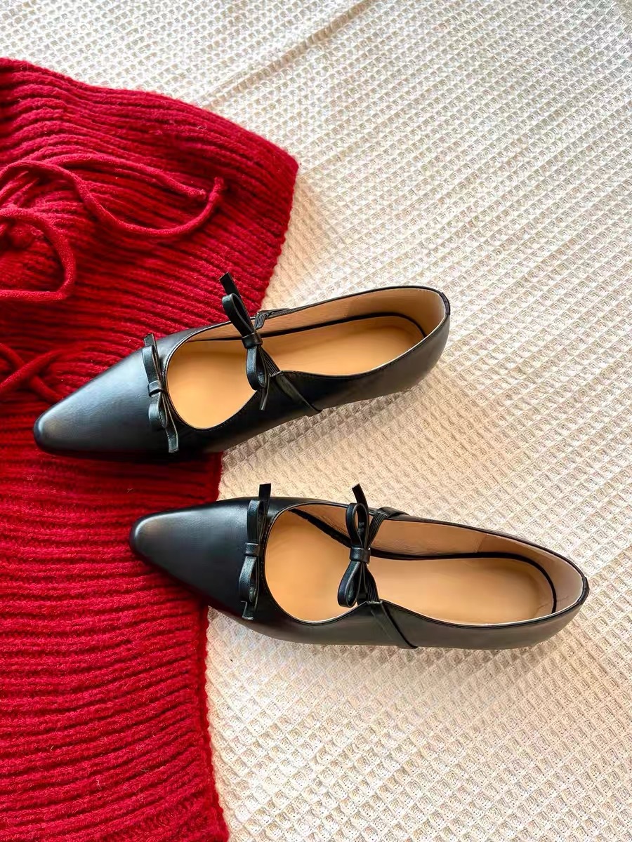 정품 가죽 프렌치 뾰족한 발가락 얕은 활 플랫 싱글 레이어 신발 여성의 2025 봄 새로운 올 매치 메리 제인 작은 가죽 신발스토어 가기