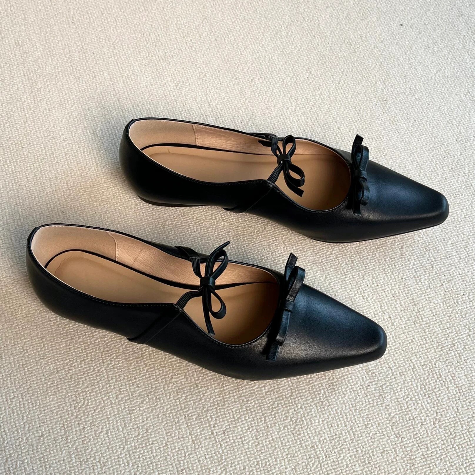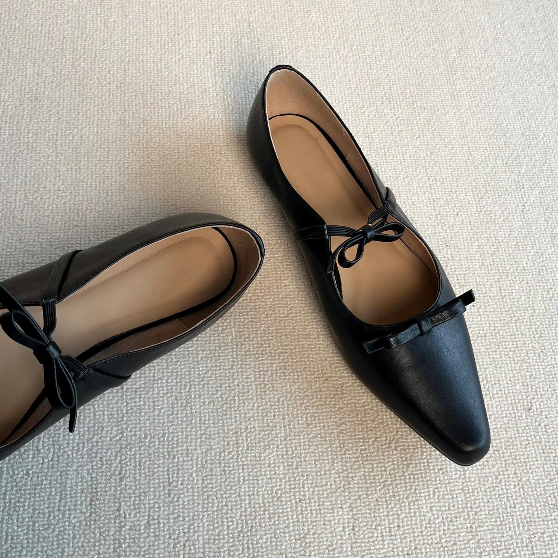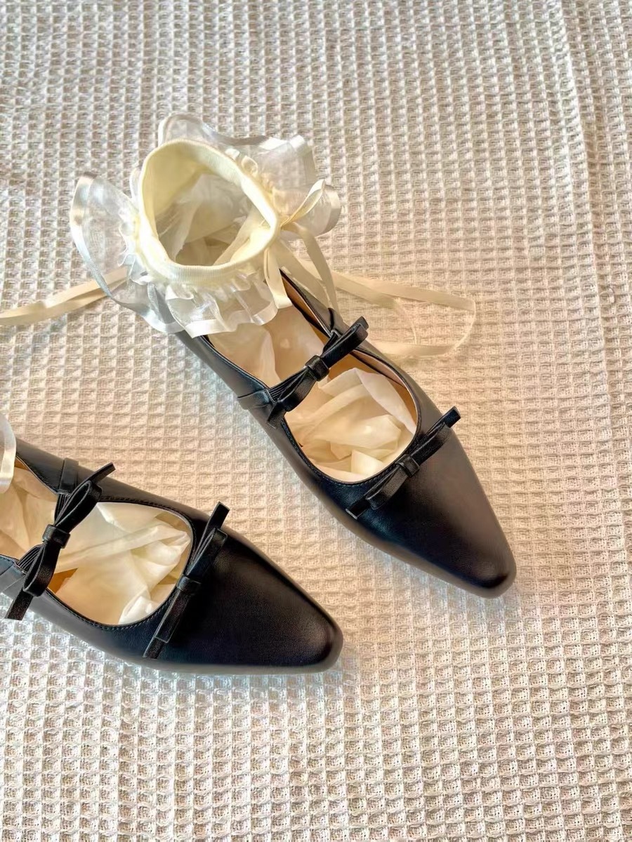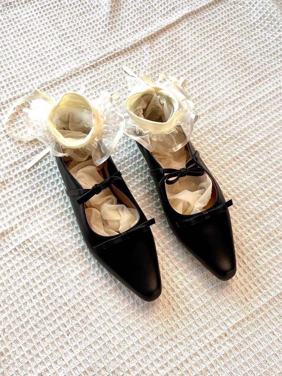 정품 가죽 프렌치 뾰족한 발가락 얕은 활 플랫 싱글 레이어 신발 여성의 2025 봄 새로운 올 매치 메리 제인 작은 가죽 신발스토어 가기