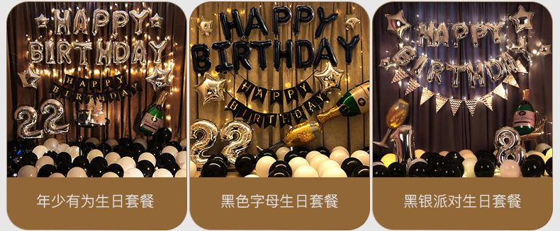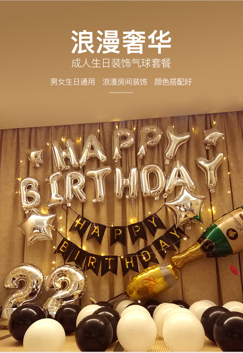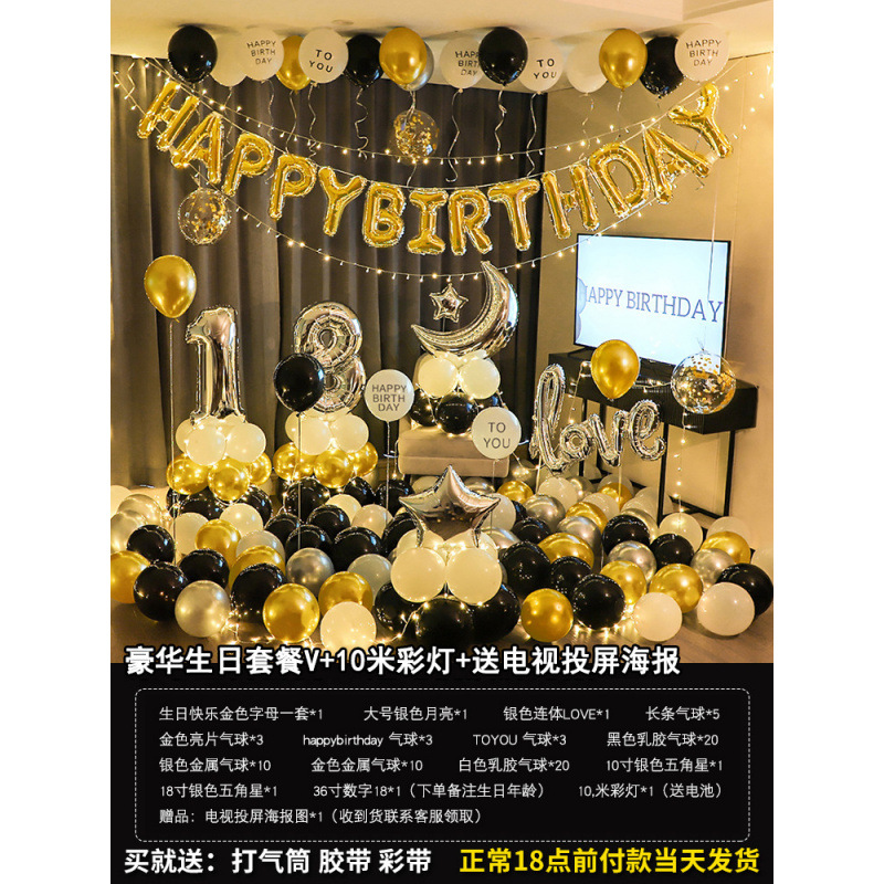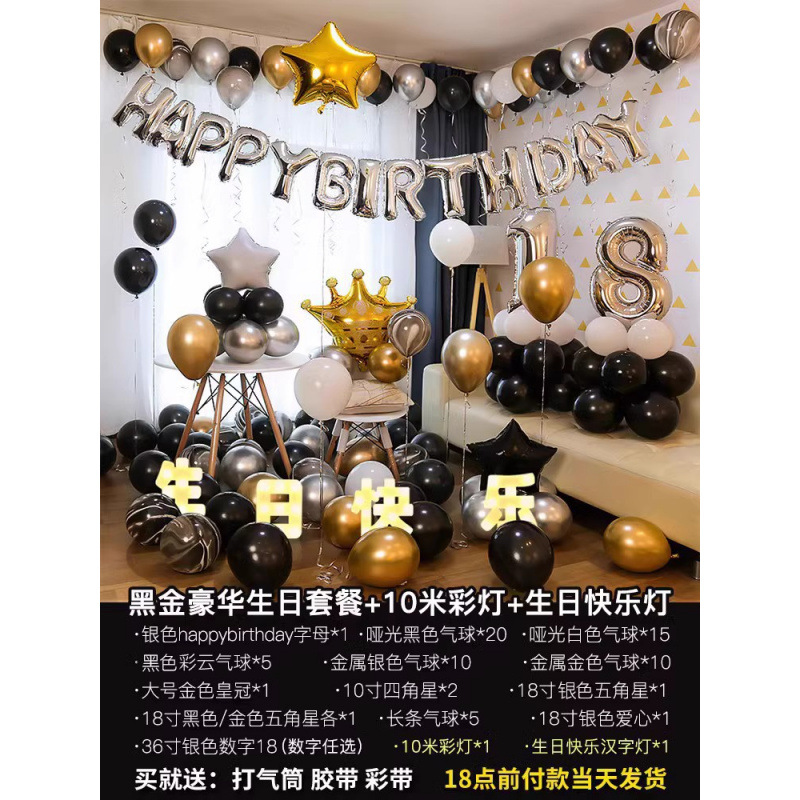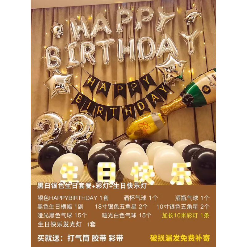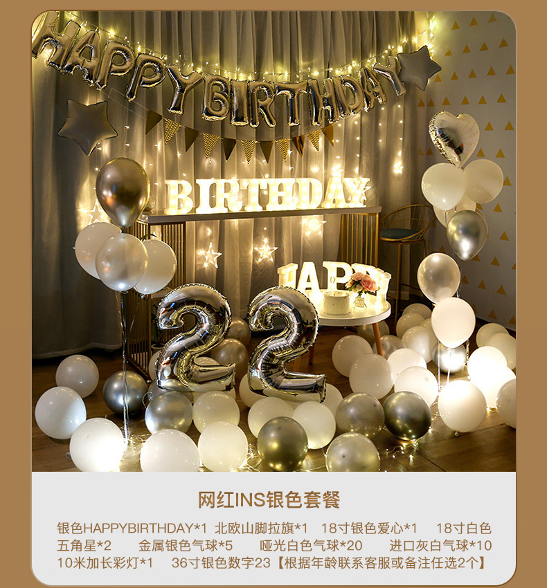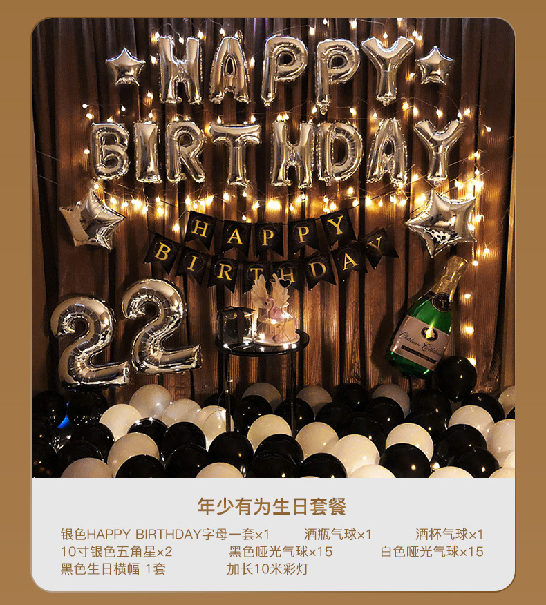 • 흑백 실버 생일 패키지 + 10m 등불 + 생일 축하 조명 [번호 비고]
