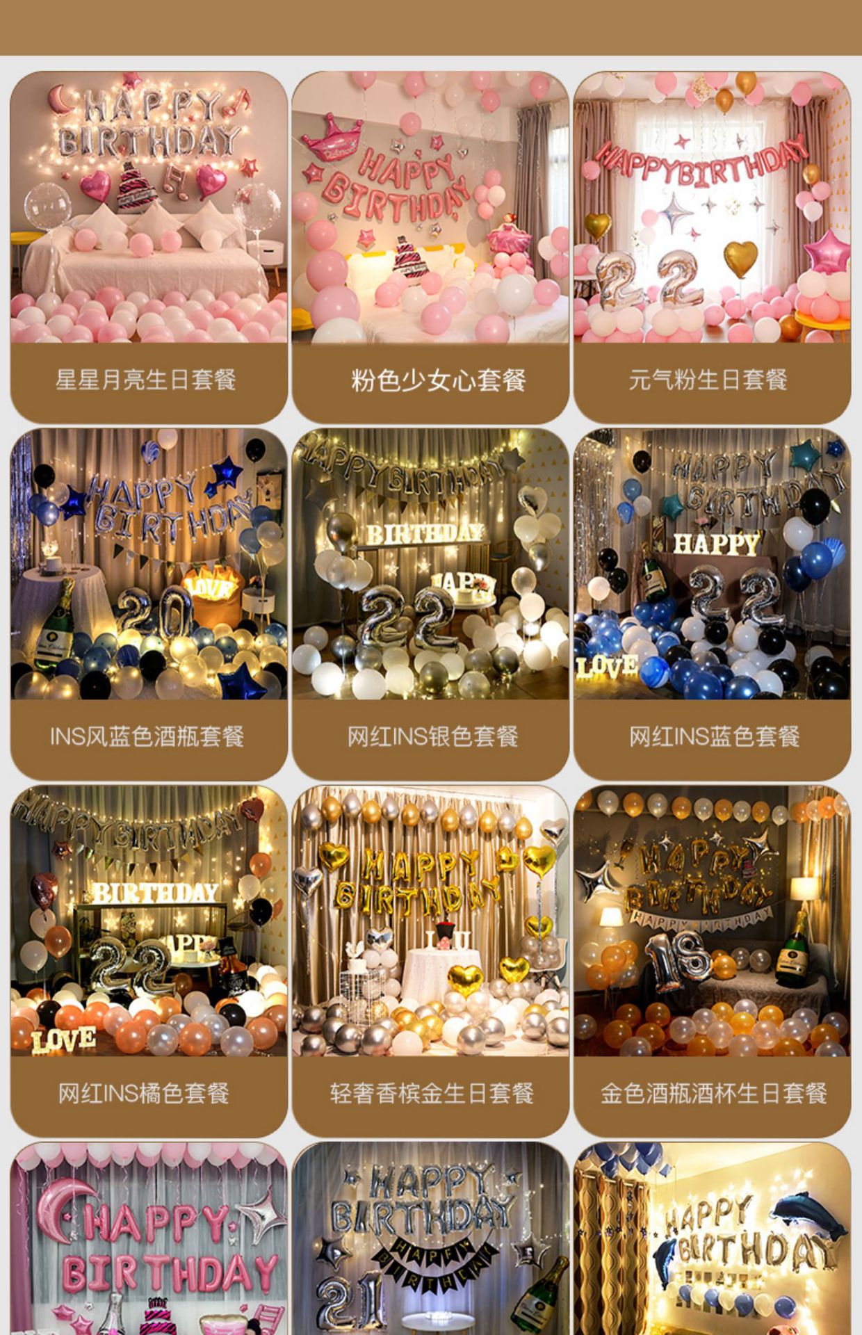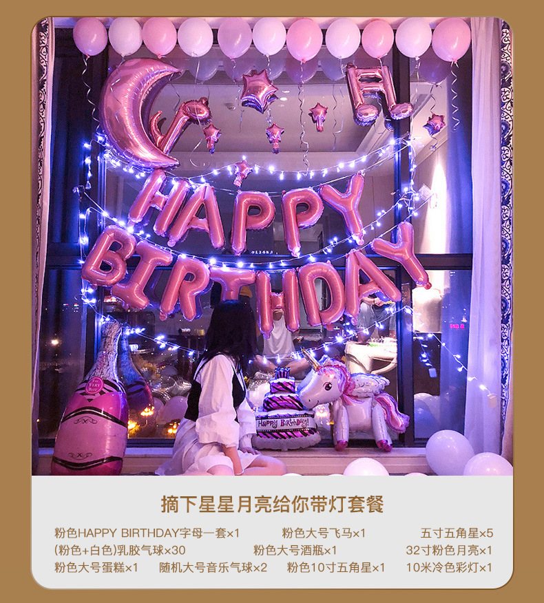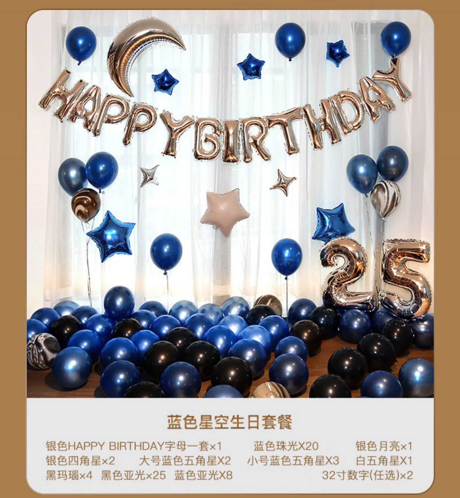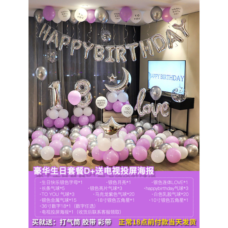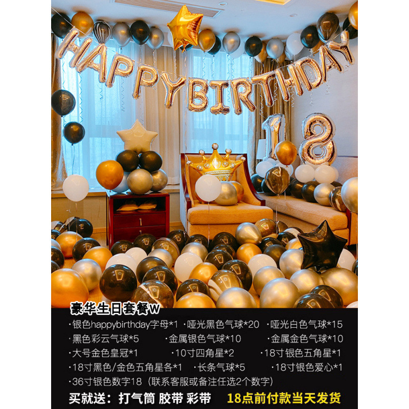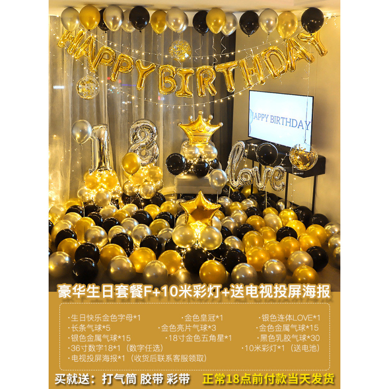 • 흑백 실버 생일 패키지 + 10m 등불 + 생일 축하 조명 [번호 비고]