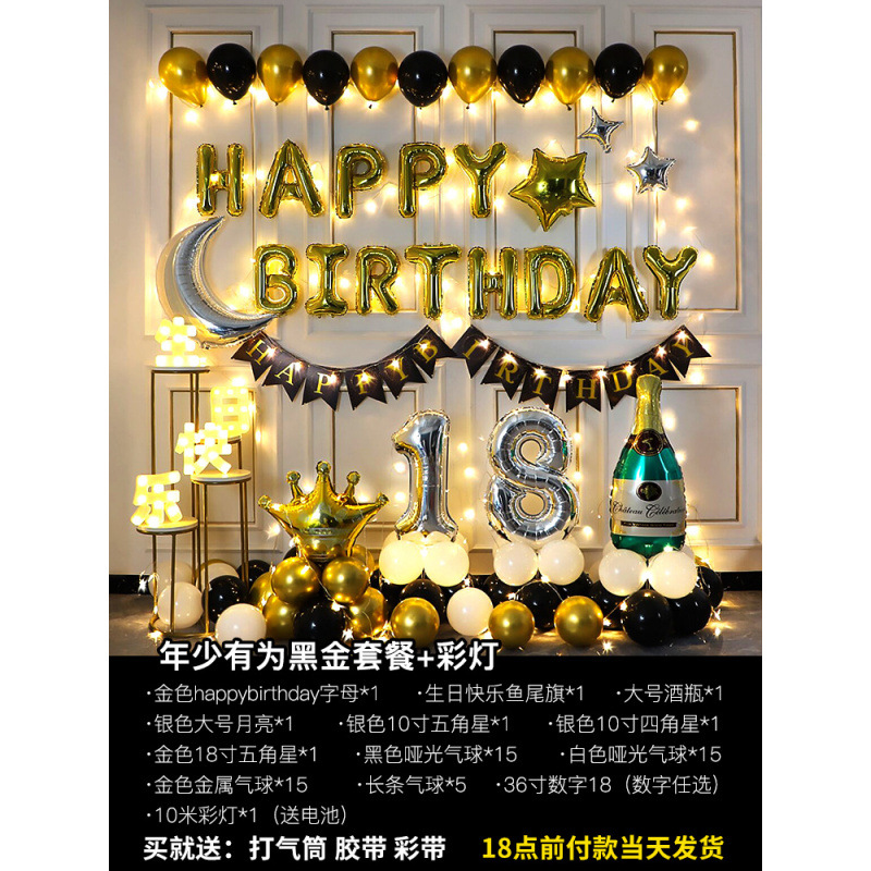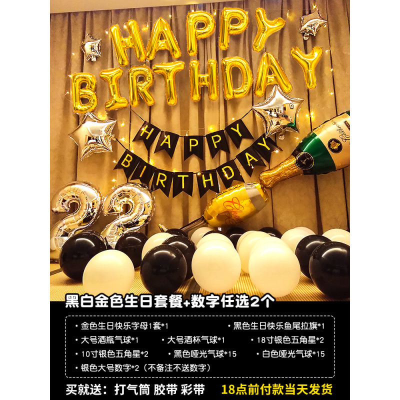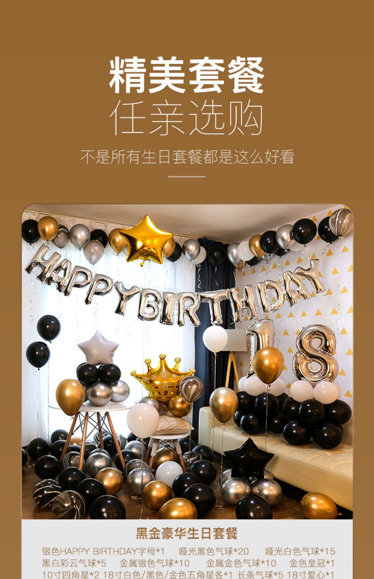 • 흑백 황금 생일 패키지 + 10m 등불 [선택한 36inch 숫자]