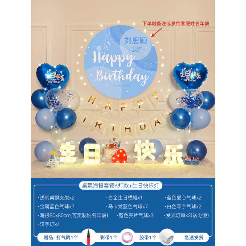 • 럭셔리 생일 패키지 B + 맞춤형 스크린 프로젝션 + 10m 등불 [선택 36inch 숫자]