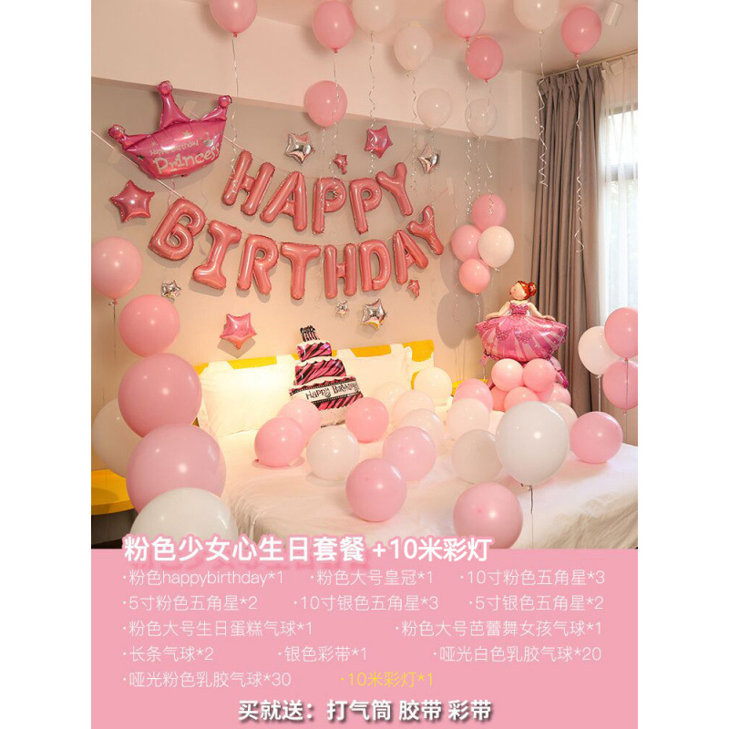 • 핑크 걸리 하트 생일 패키지 + 10m 등불 [ 36inch 숫자 선택]