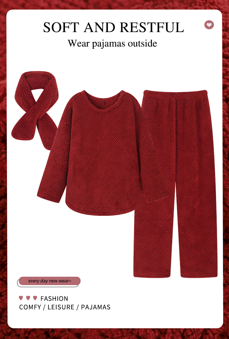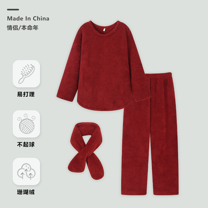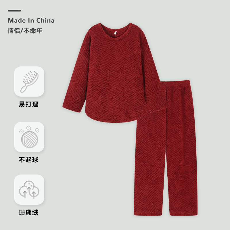빨간 커플 잠옷 여성의 겨울 산호 양털 플란넬 새해 로브 축제 결혼식 남자 홈 의류 세트
