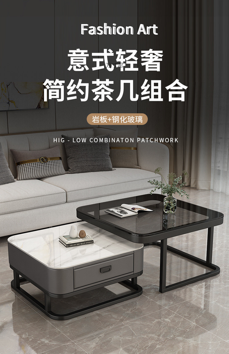 라이트 럭셔리 커피 테이블 거실 홈 현대 간단한 작은 아파트 인터넷 연예인 광장 유리 암판 커피 테이블 TV 캐비닛 공장
