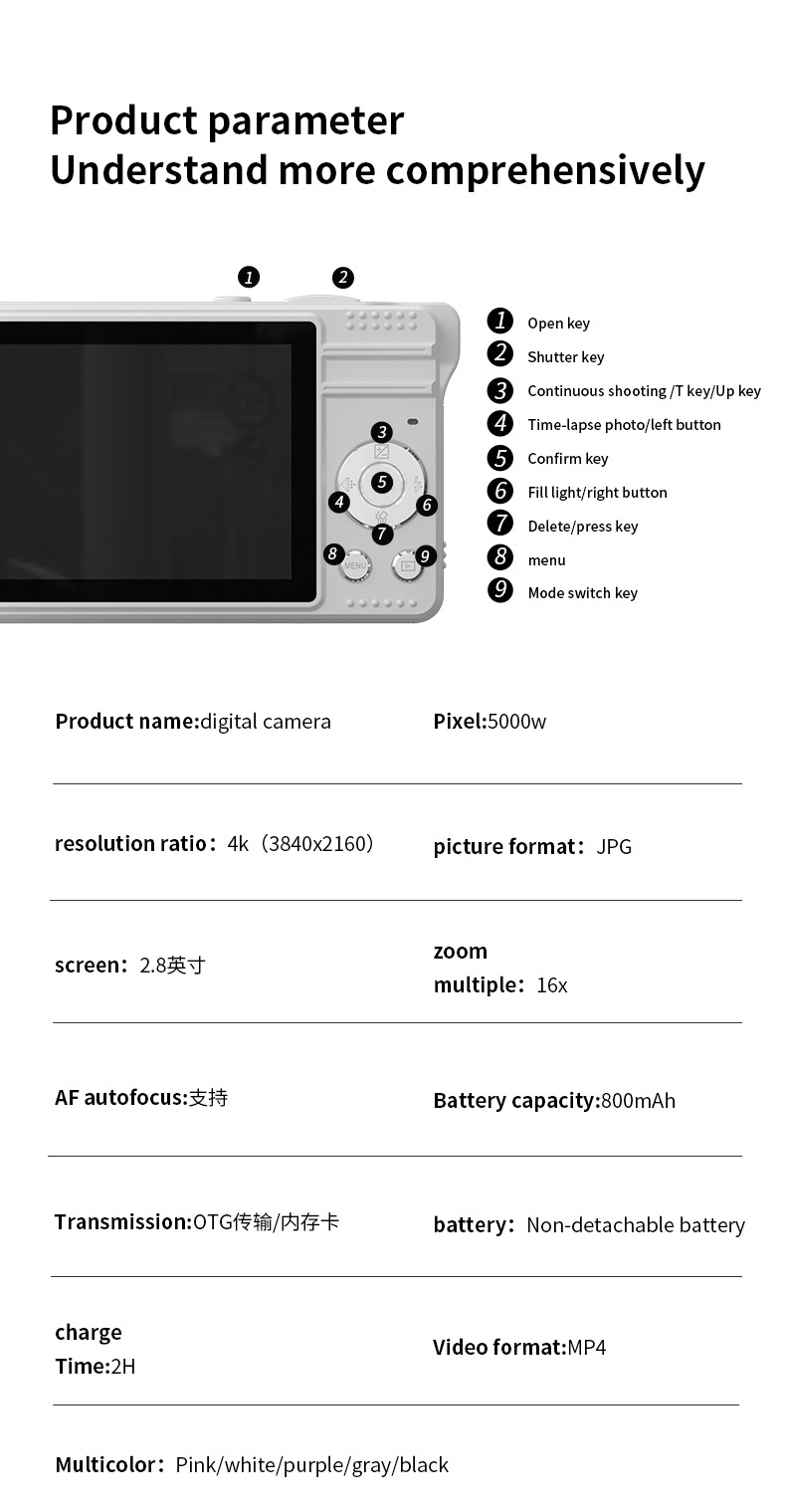 국경 간 대외 무역 폭발 CCD 학생 파티 디지털 카메라 복고풍 카드 카메라 4K HD 편리한 공장 도매스토어 가기