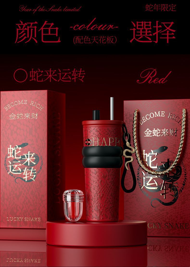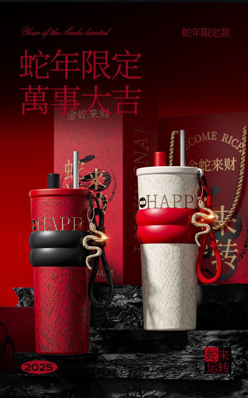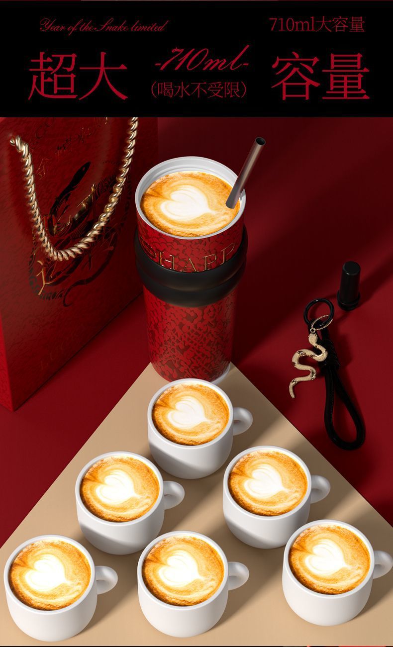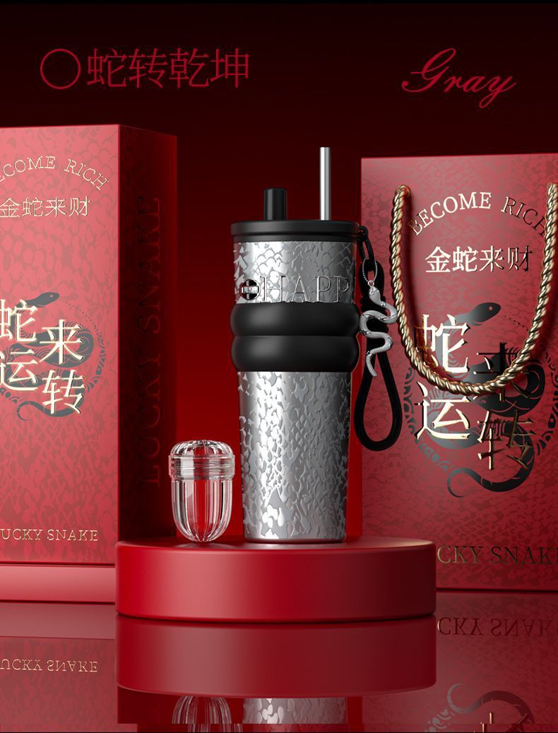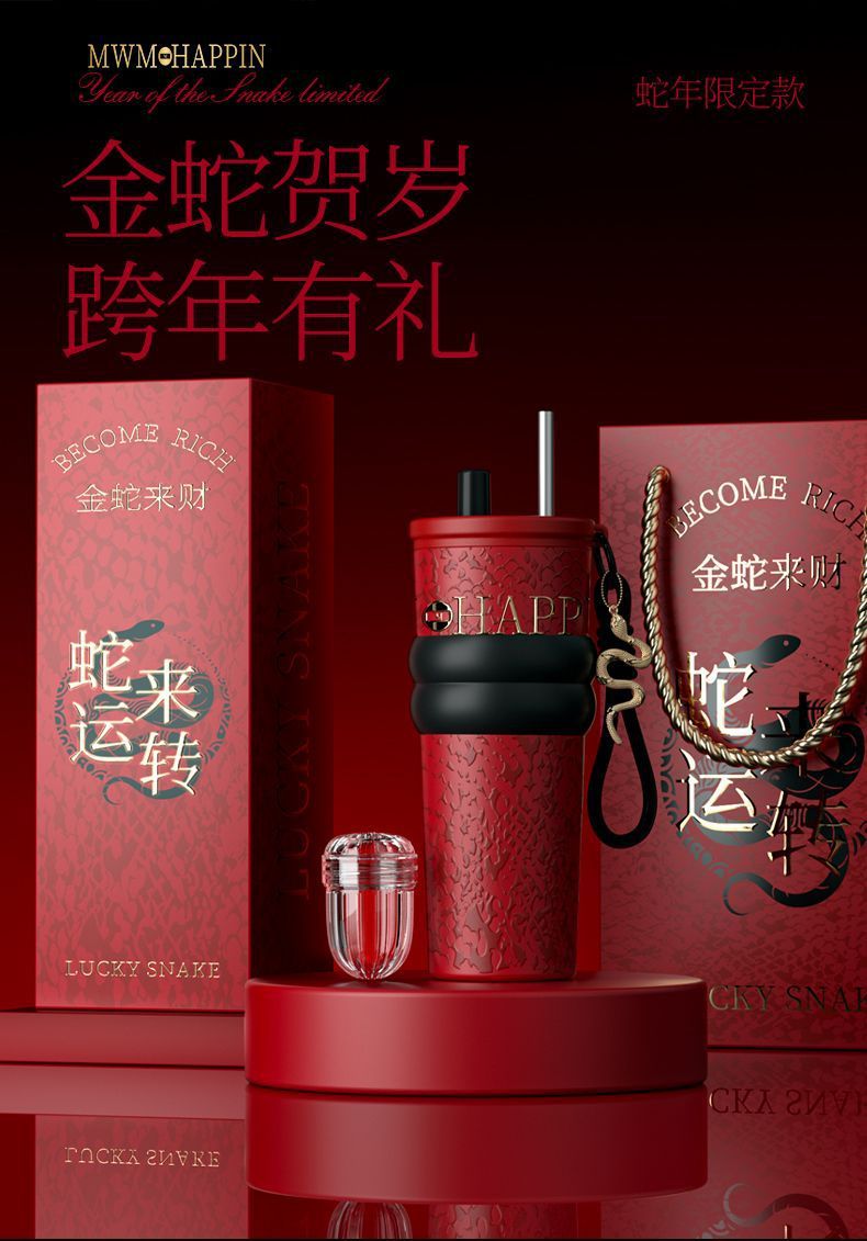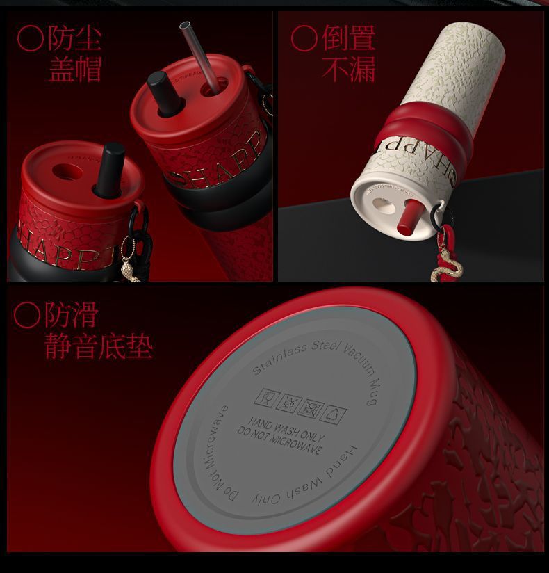 새로운 말년 한정판 빨대형 보온컵, 고급스러운 세라믹 내부 컵, 차량용 커피컵, 새해 기념 선물컵