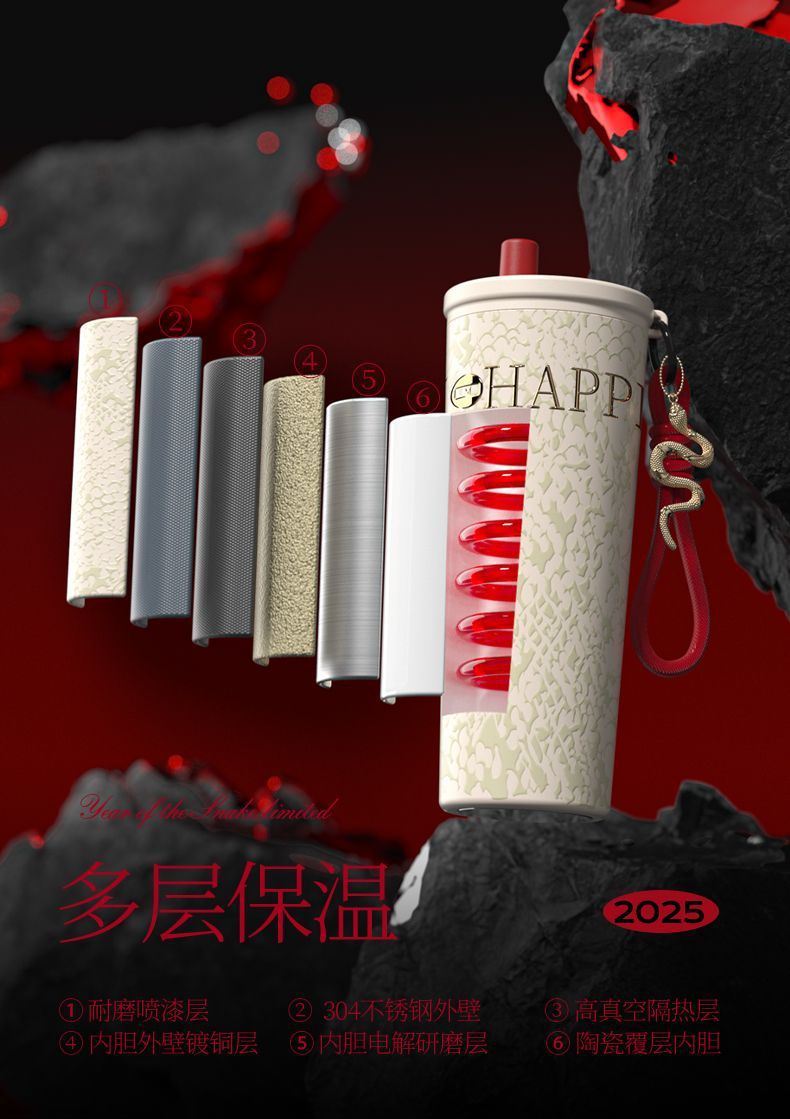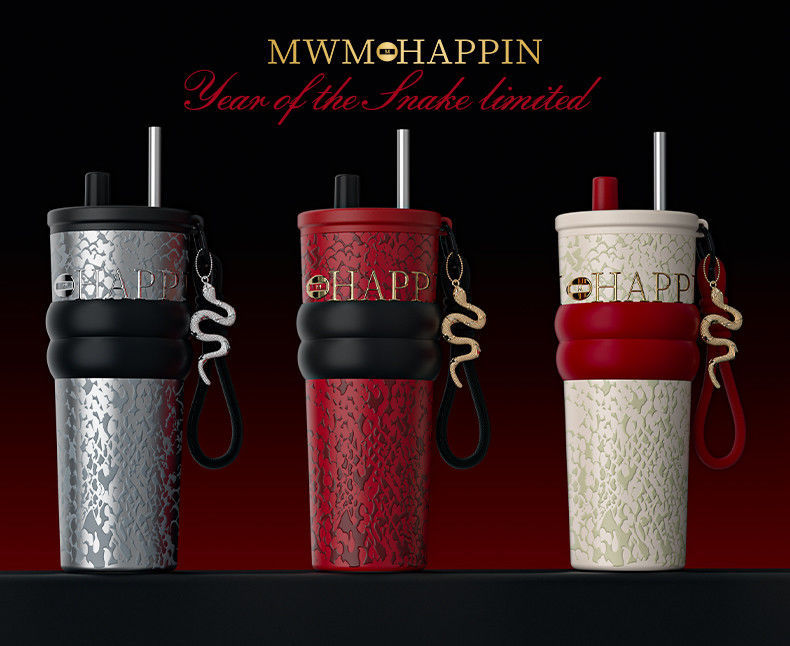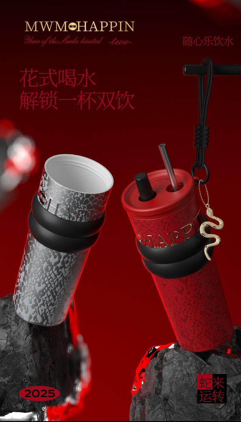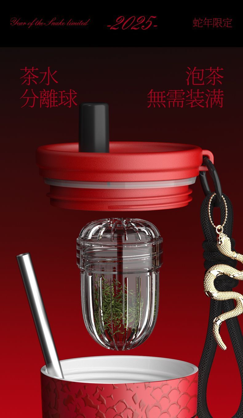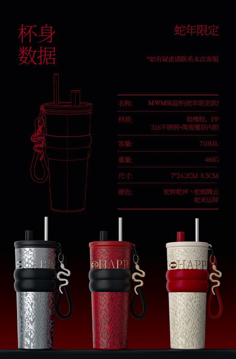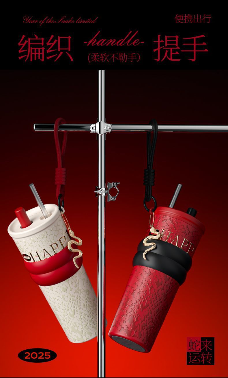 새로운 말년 한정판 빨대형 보온컵, 고급스러운 세라믹 내부 컵, 차량용 커피컵, 새해 기념 선물컵