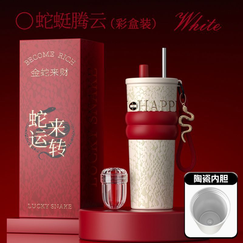 새로운 말년 한정판 빨대형 보온컵, 고급스러운 세라믹 내부 컵, 차량용 커피컵, 새해 기념 선물컵스토어 가기