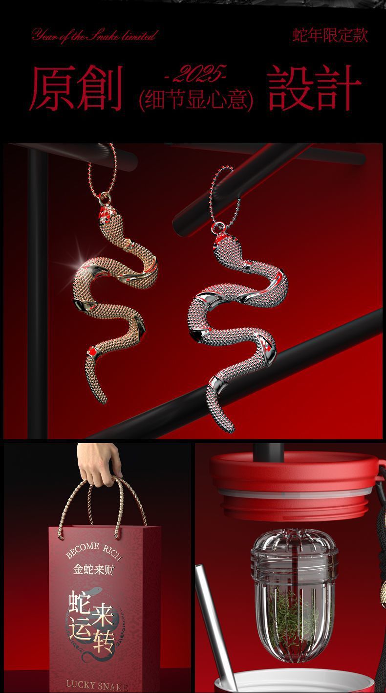 • 뱀이 달려온다 - 레드 [세라믹 라이너] + 구리 뱀 모양 펜던트 [고급 선물 상자]