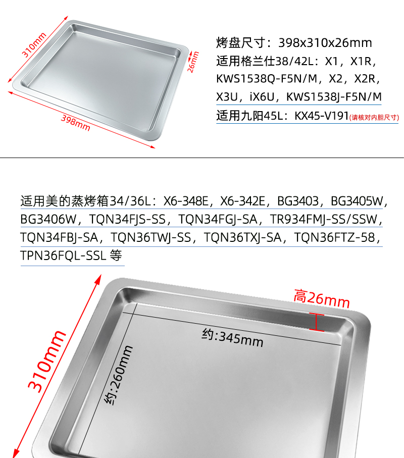 304 스테인레스 스틸 스팀 팬은 Kaidu Panasonic Midea 올인원 기계 임베디드 전기 스팀 오븐 트레이 액세서리에 적합합니다.