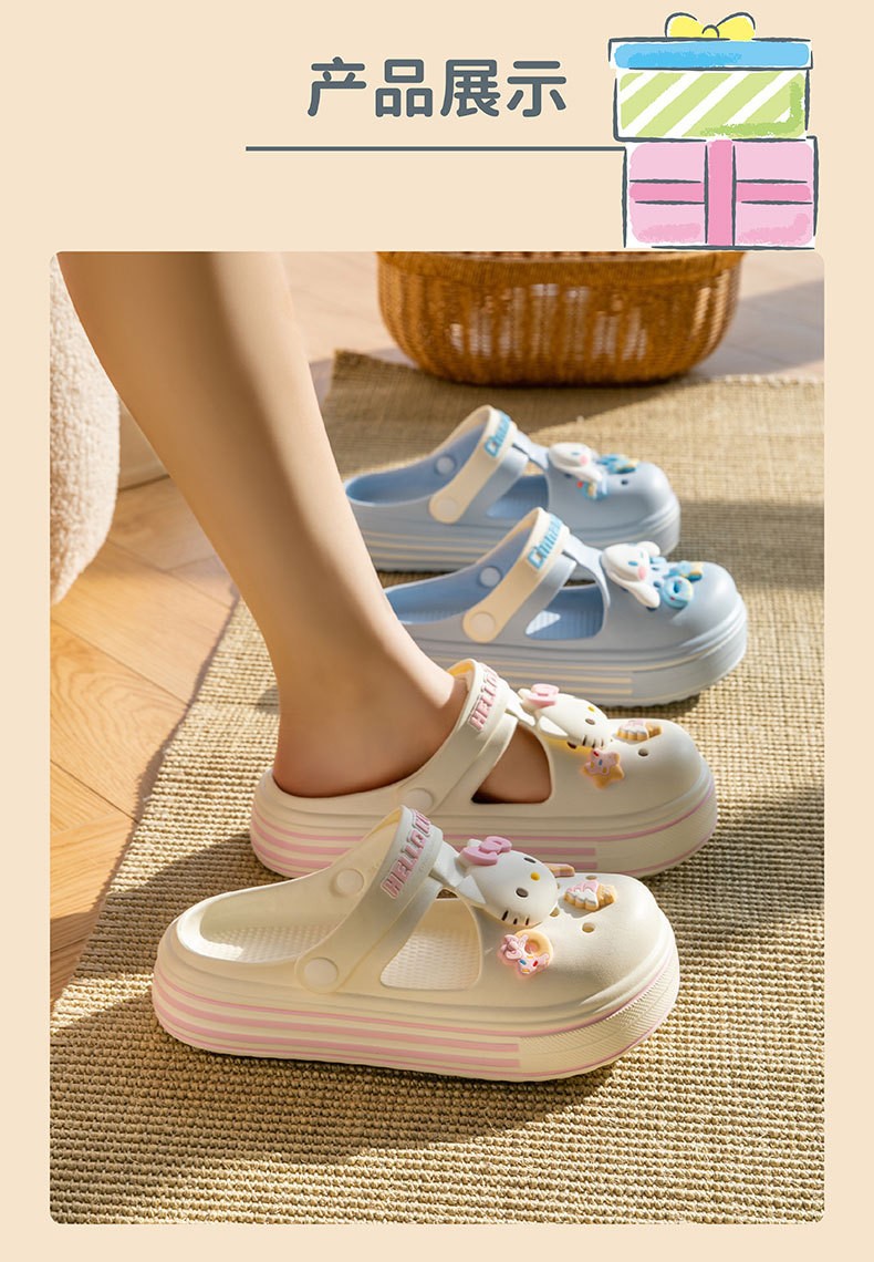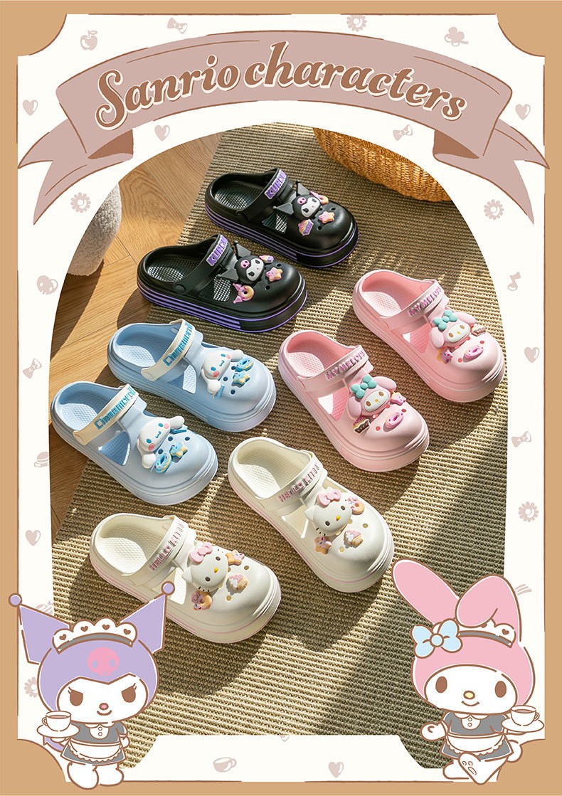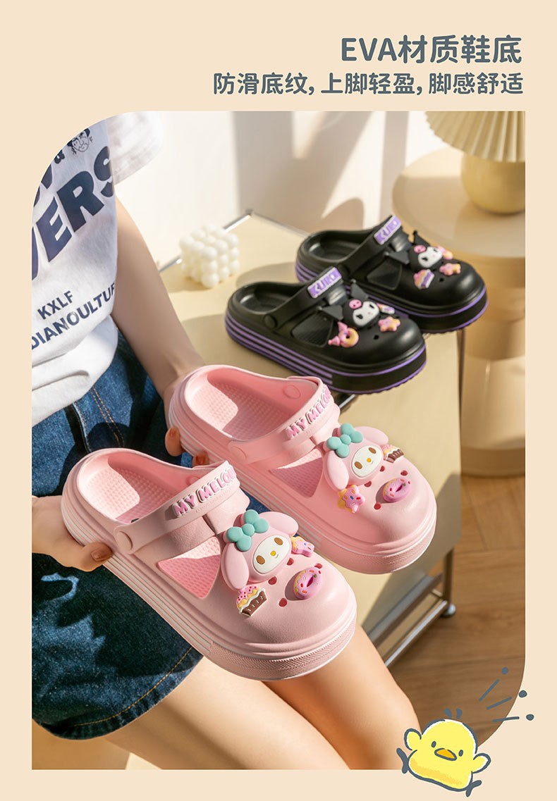 도매 정품 산리오 만화 구멍 신발 쿨로 미 키티 부모 자식 소녀 비치 슬리퍼스토어 가기