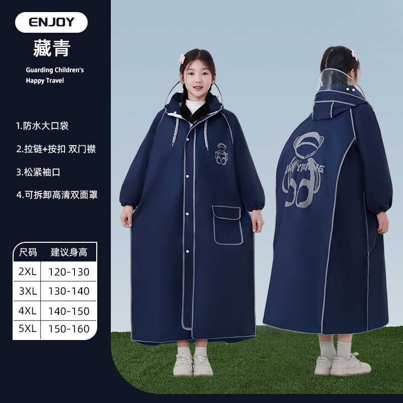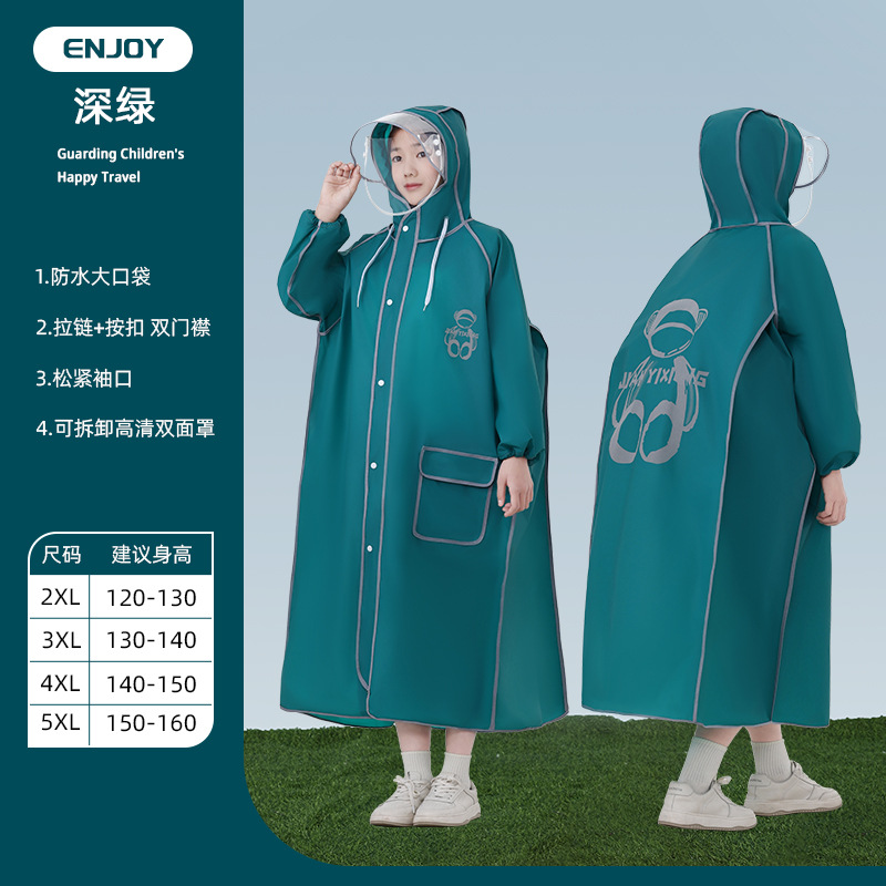 중고등 학교 학생을위한 비옷 남학생과 여학생을위한 긴 전신 방수 학교 가방 중 큰 어린이 비옷