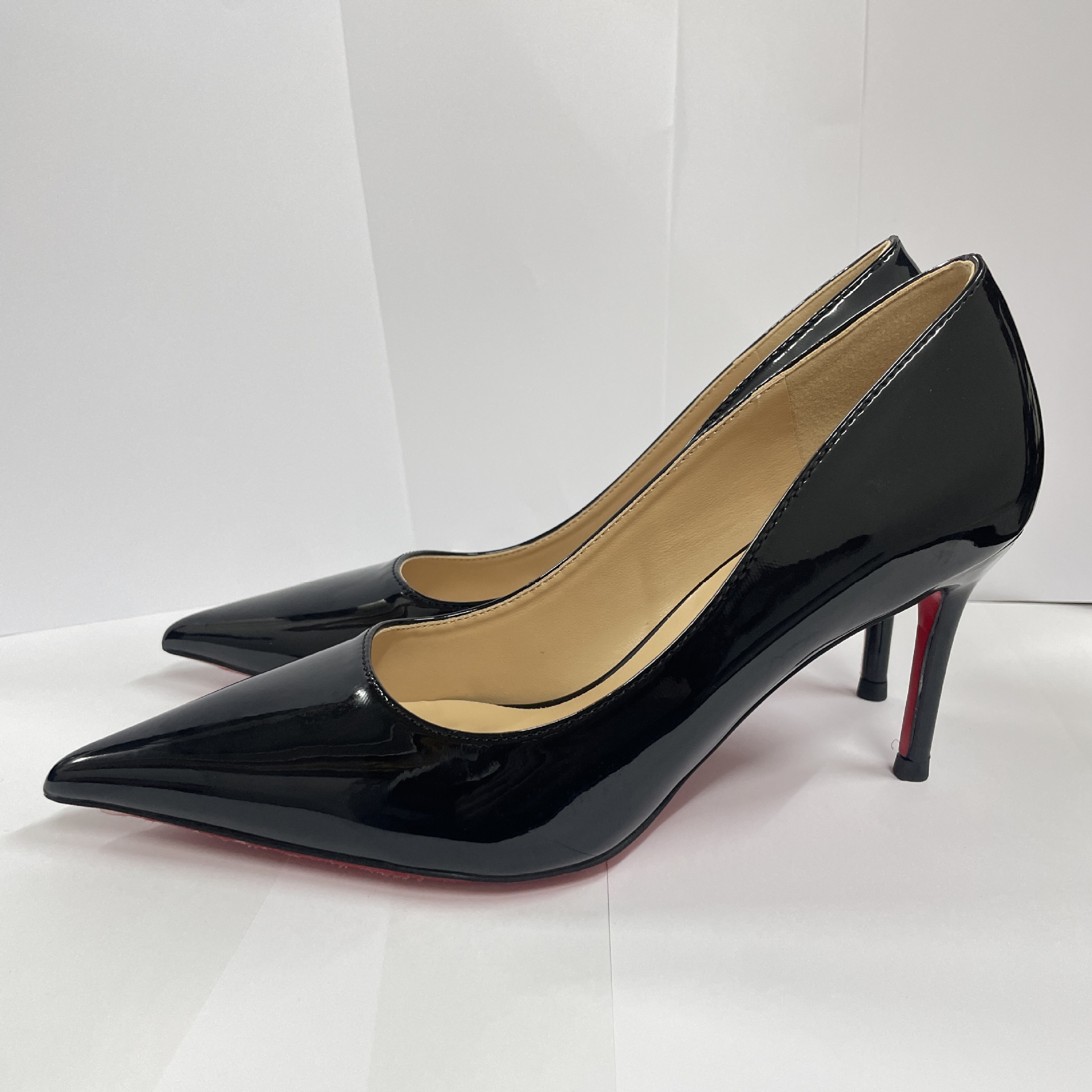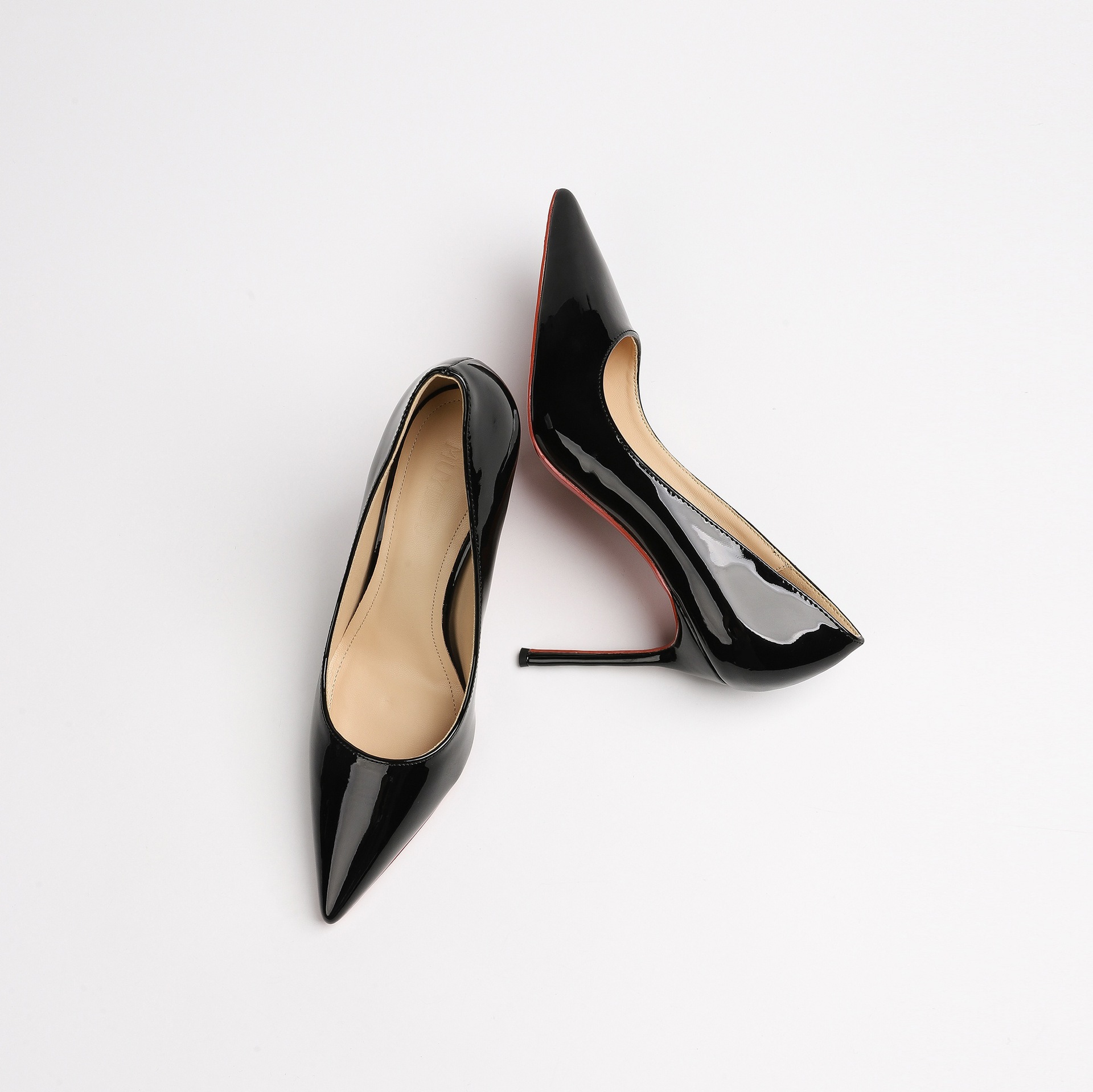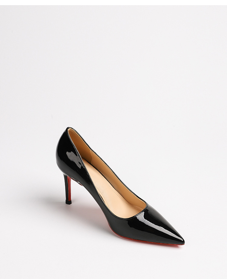 2026 여름 섹시한 얕은 입구 뾰족한 앞코 얇은 굽 레드솔 하이힐 여성용 직장 출퇴근용 페이턴트 가죽 통기성 단색 구두