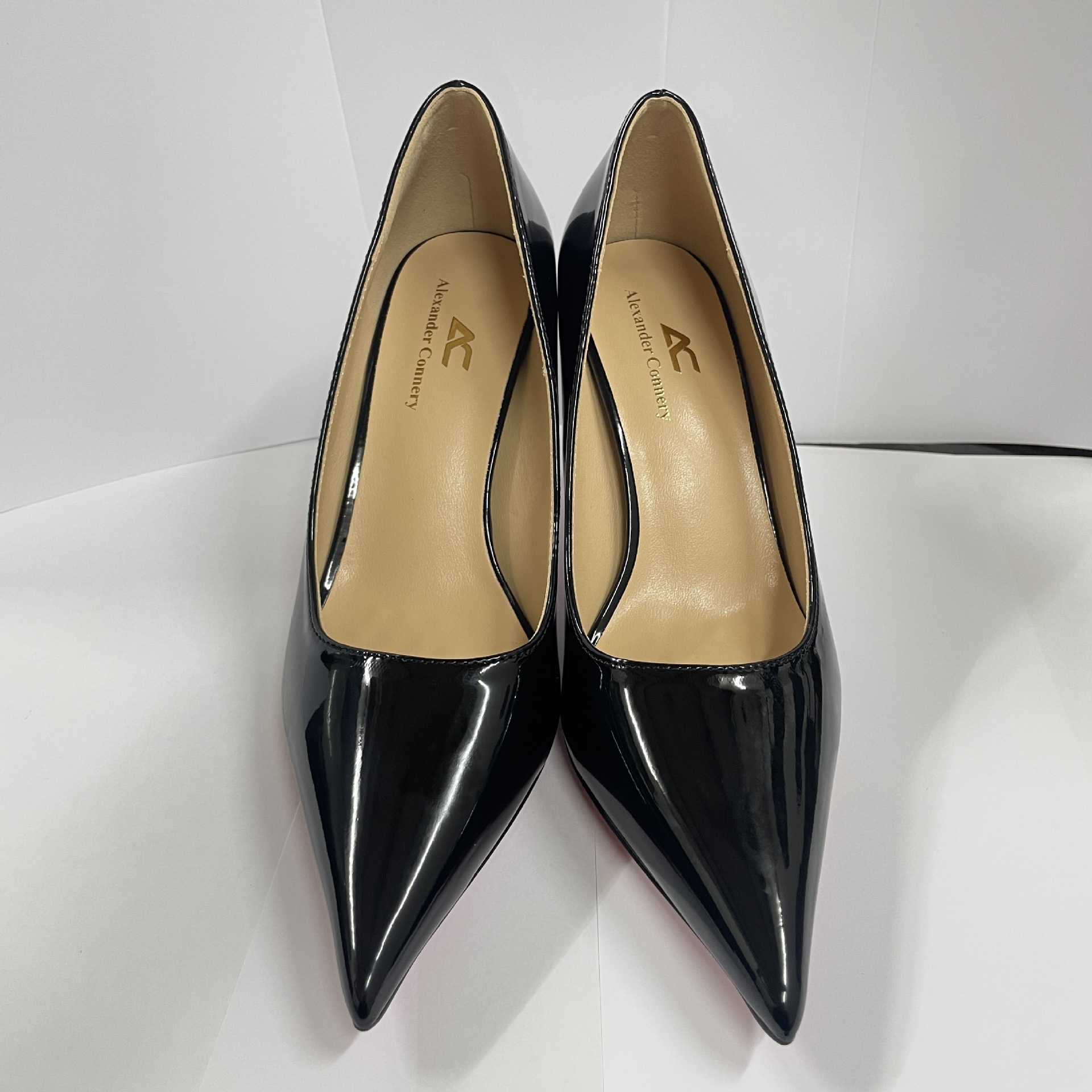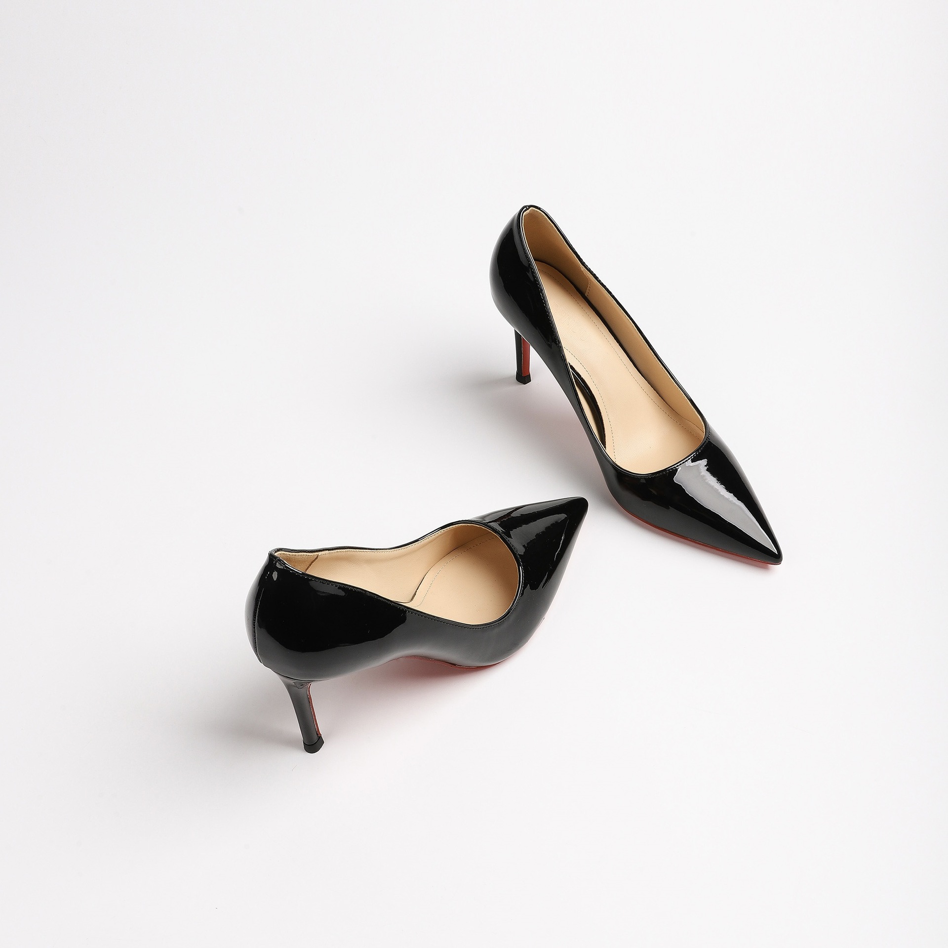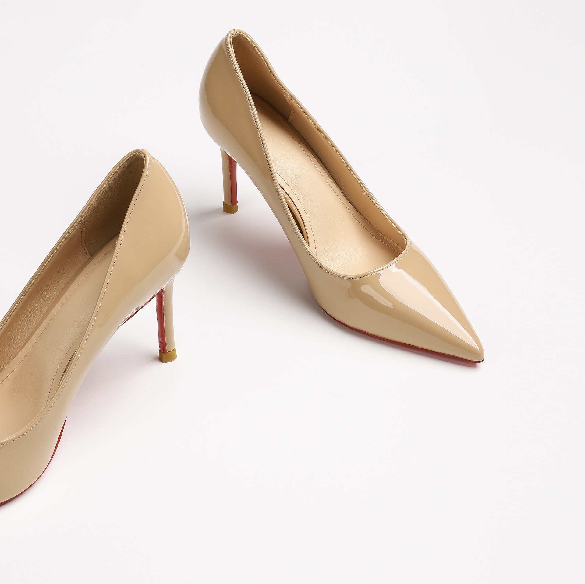 2026 여름 섹시한 얕은 입구 뾰족한 앞코 얇은 굽 레드솔 하이힐 여성용 직장 출퇴근용 페이턴트 가죽 통기성 단색 구두