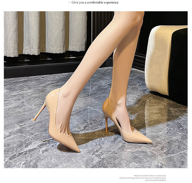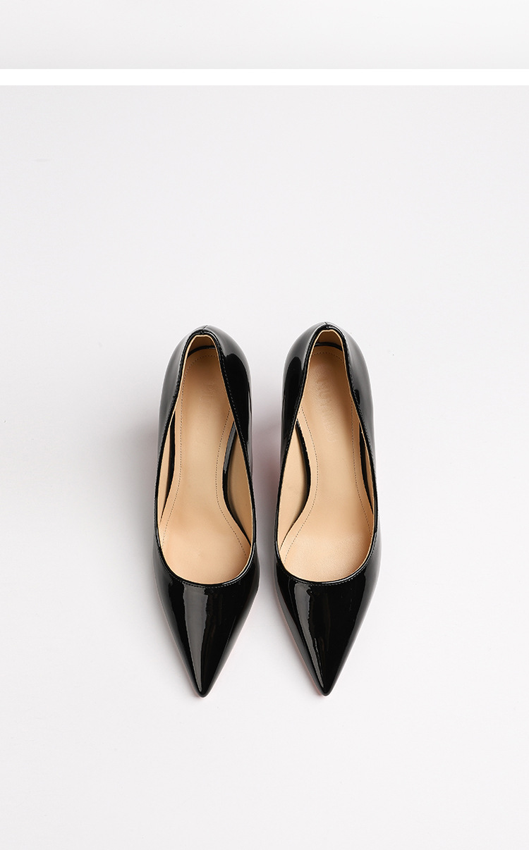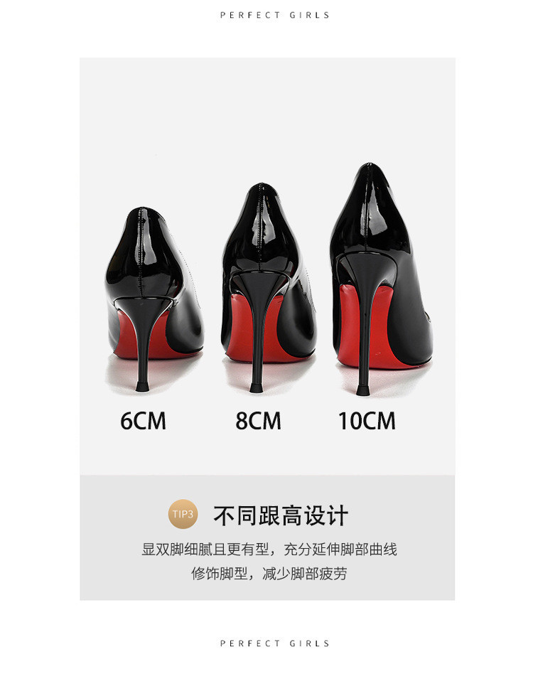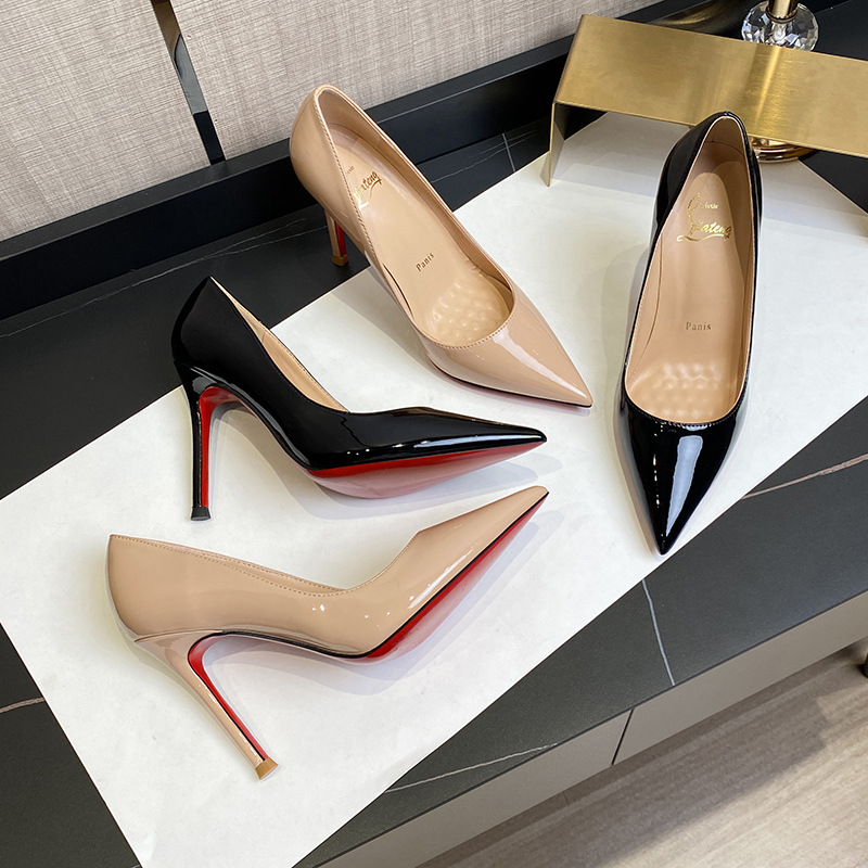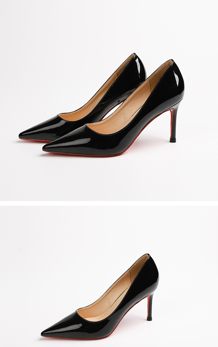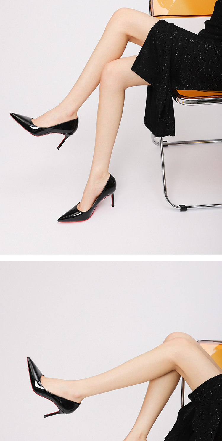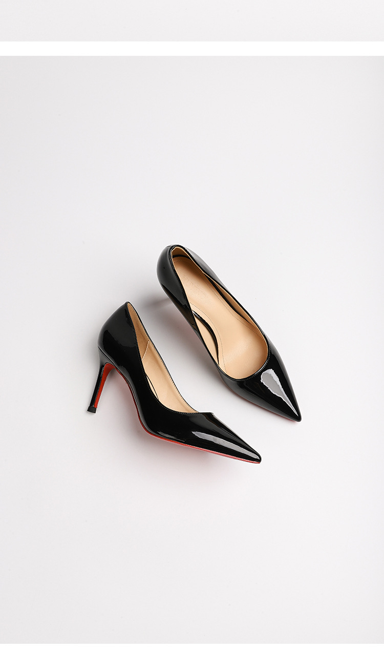 2026 여름 섹시한 얕은 입구 뾰족한 앞코 얇은 굽 레드솔 하이힐 여성용 직장 출퇴근용 페이턴트 가죽 통기성 단색 구두스토어 가기