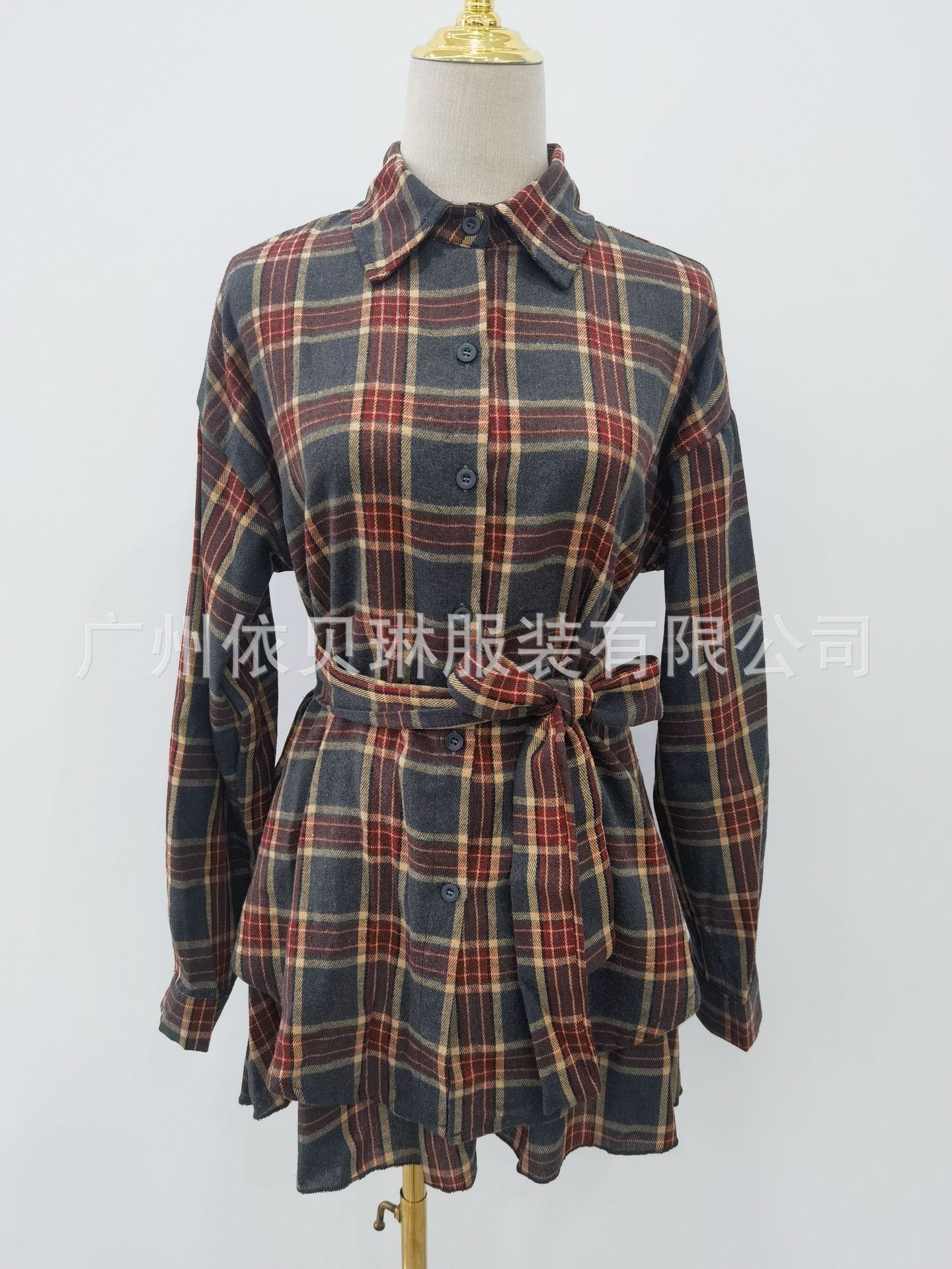 2025 새로운 패션 캐주얼 격자 무늬 원피스 세트 여성용 옷깃 느슨한 셔츠 스트랩 주름 치마 투피스 세트스토어 가기