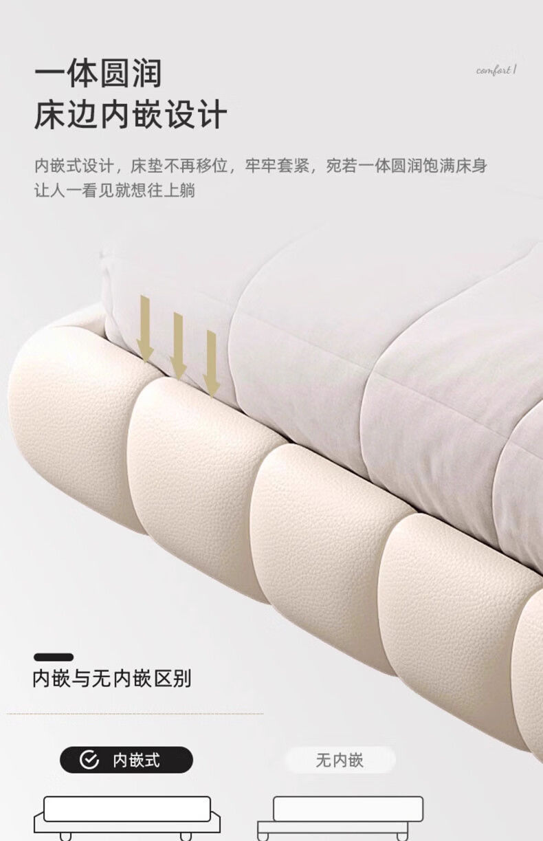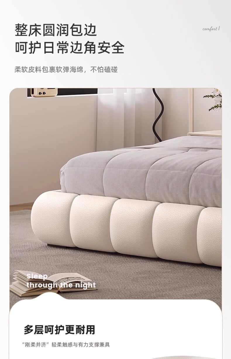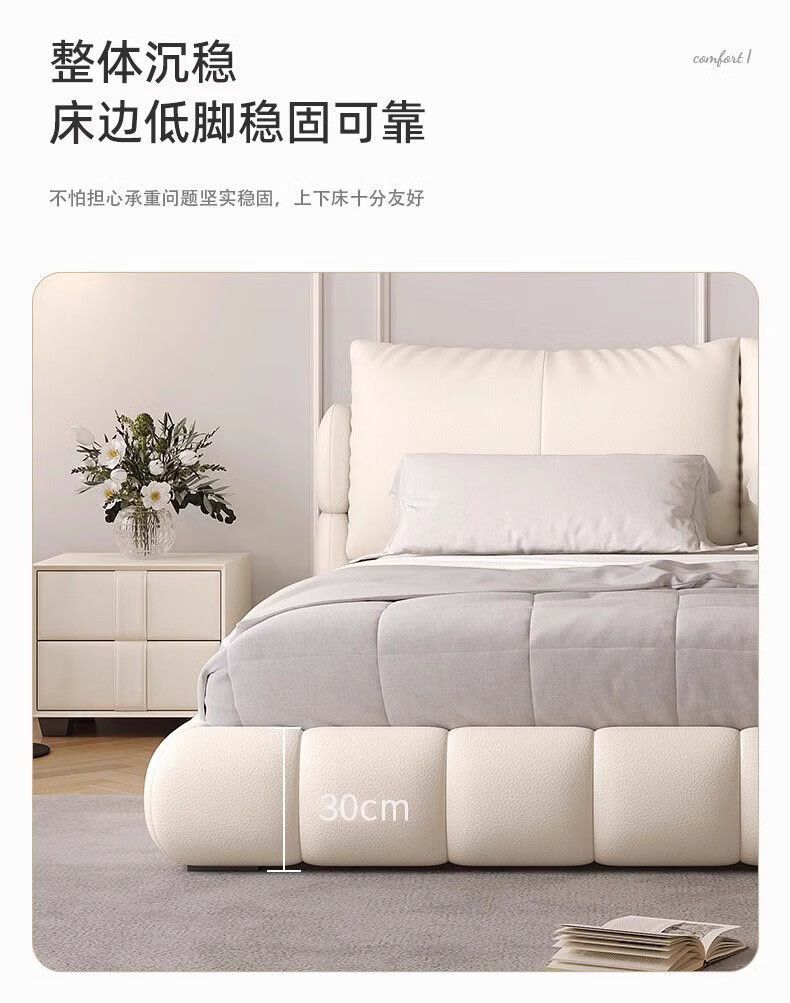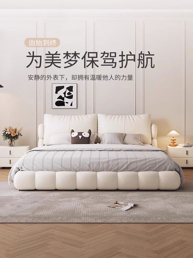 크림 스타일 침대 헤드 레이어 Cowhide 소프트 백 가죽 침대 퍼프 침대 대기 마스터 침실 더블 퀸 침대 높은 박스 보관 침대스토어 가기