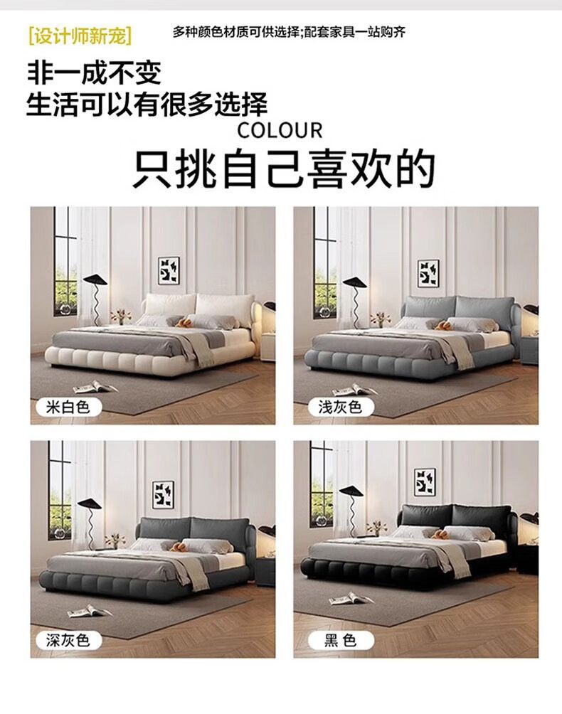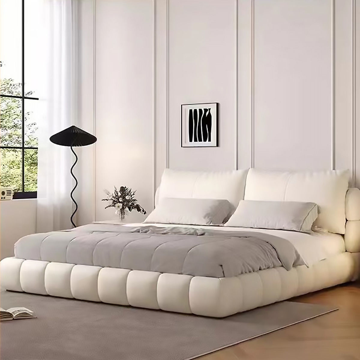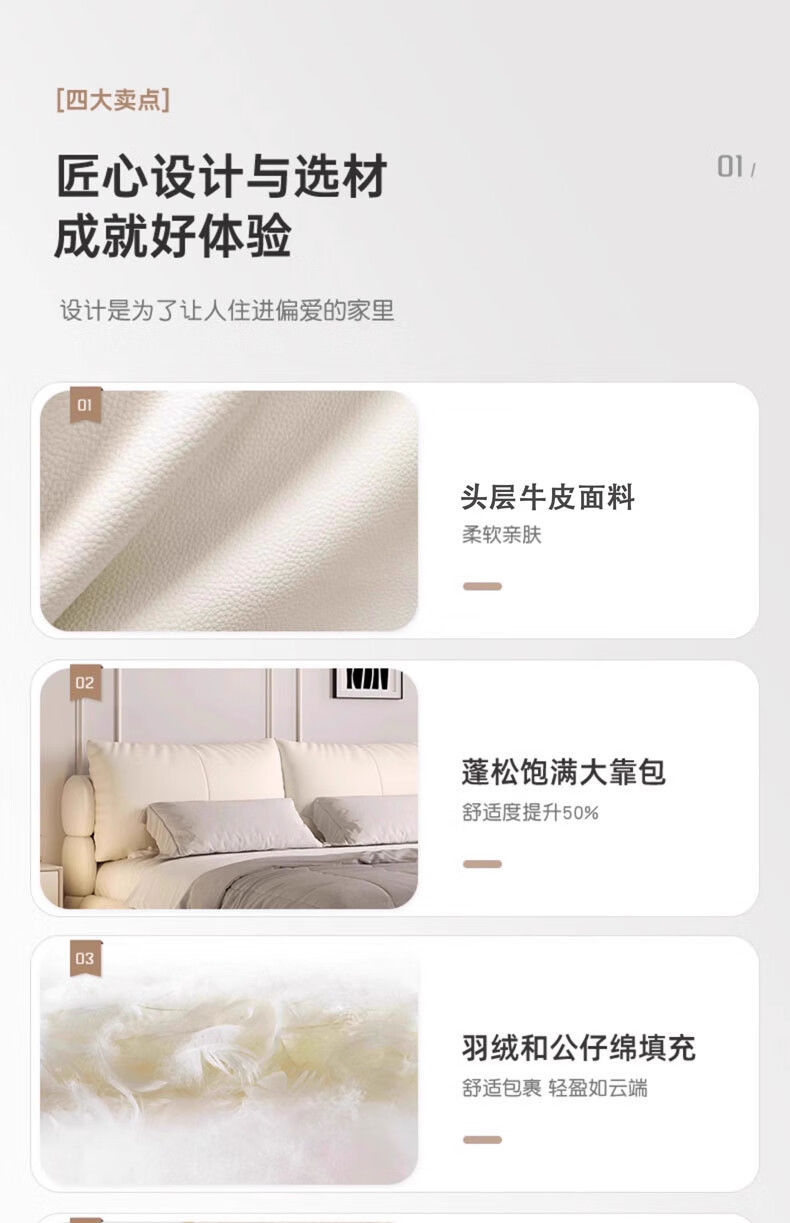 크림 스타일 침대 헤드 레이어 Cowhide 소프트 백 가죽 침대 퍼프 침대 대기 마스터 침실 더블 퀸 침대 높은 박스 보관 침대스토어 가기