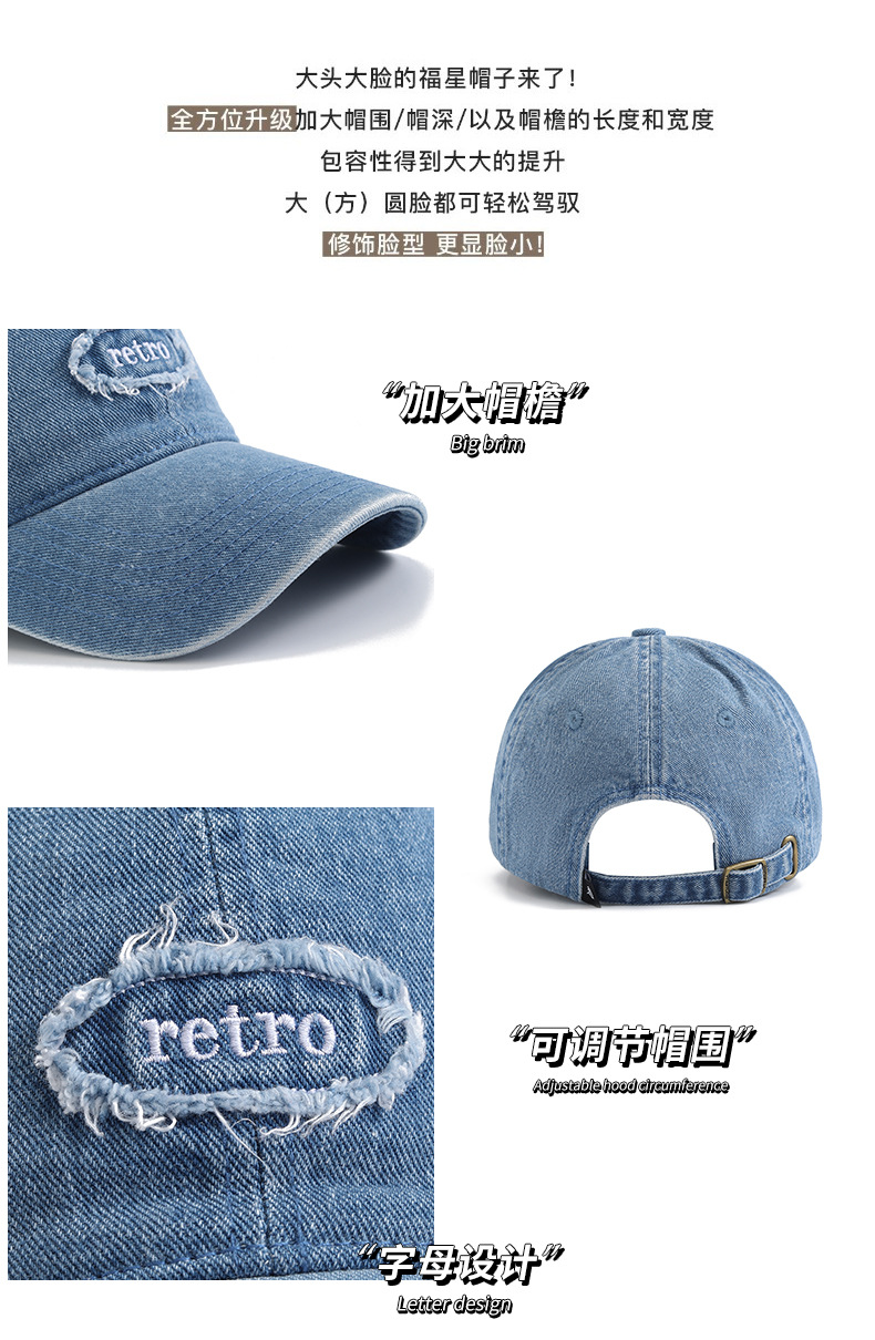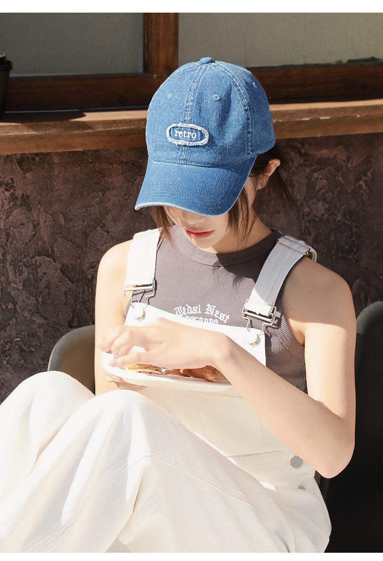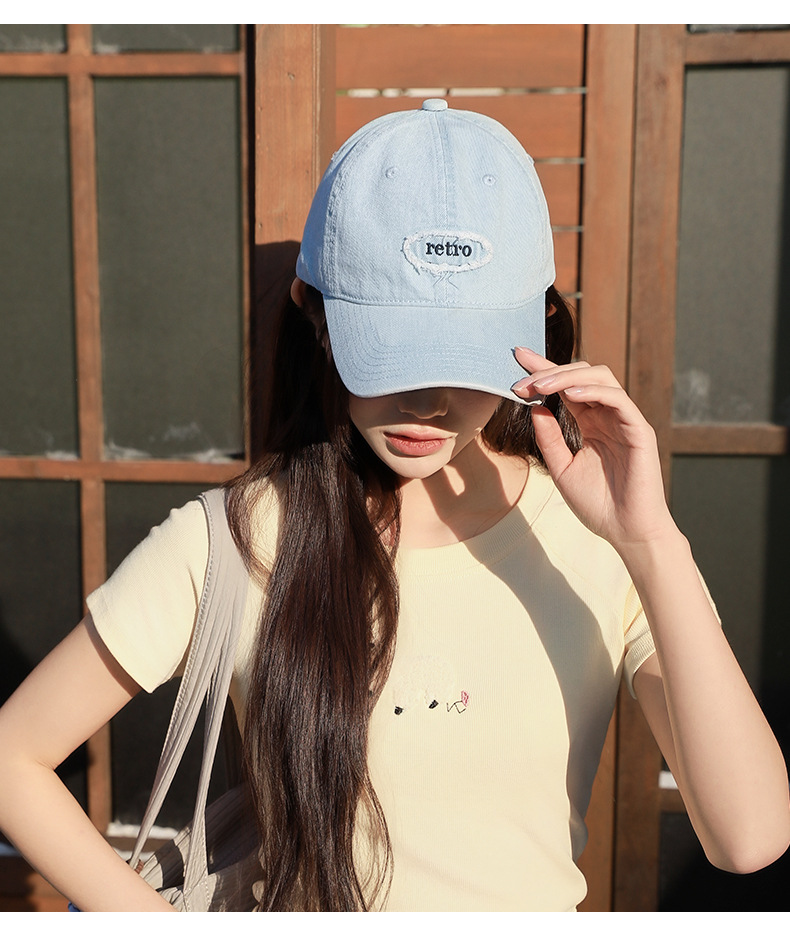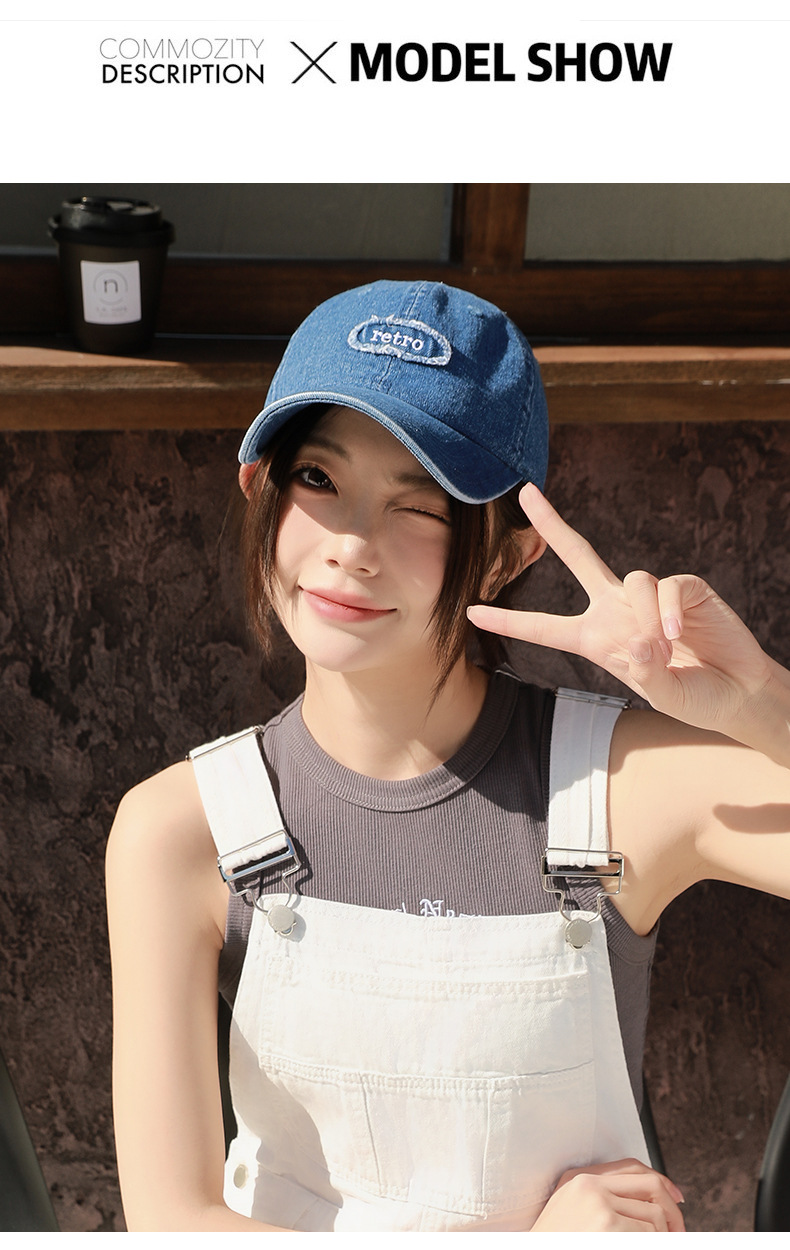 한국 편지 자수 데님 야구 모자 여자 봄과 여름 캐주얼 올 매치 페이스 쉐이딩 작은 차양 모자 야외 스포츠스토어 가기