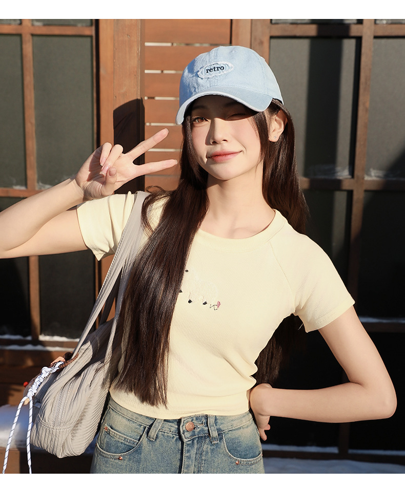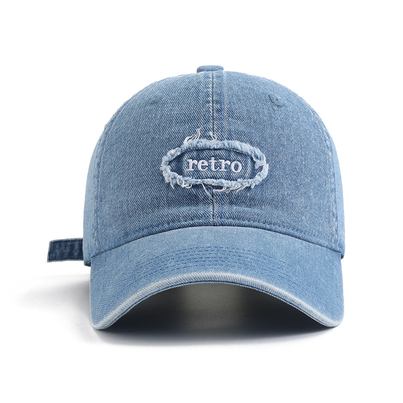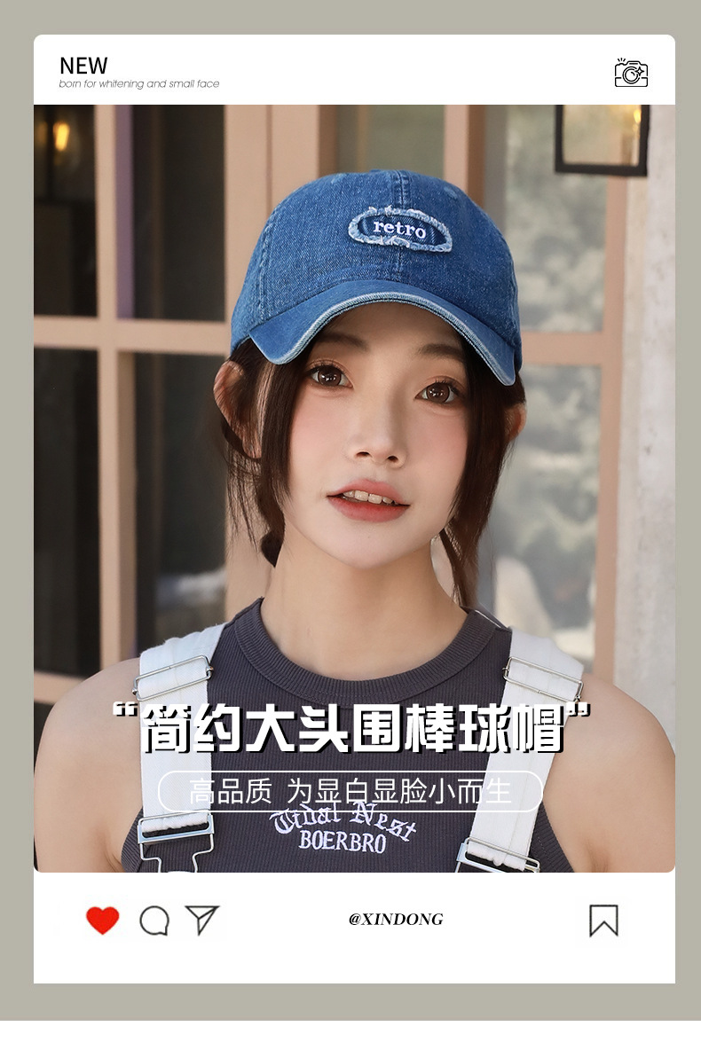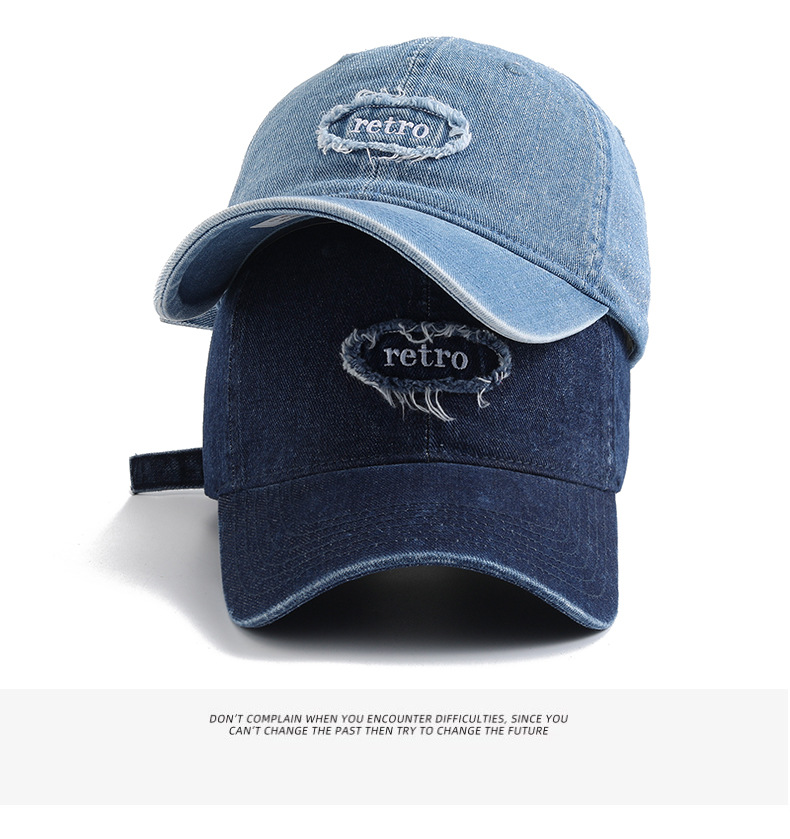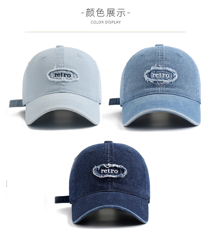 한국 편지 자수 데님 야구 모자 여자 봄과 여름 캐주얼 올 매치 페이스 쉐이딩 작은 차양 모자 야외 스포츠스토어 가기