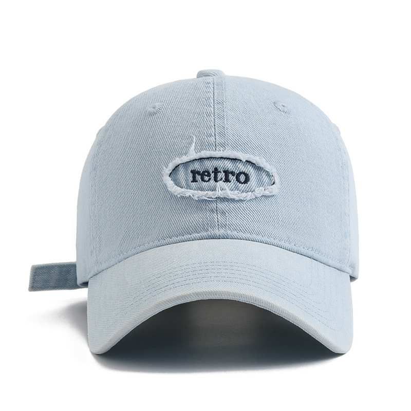 한국 편지 자수 데님 야구 모자 여자 봄과 여름 캐주얼 올 매치 페이스 쉐이딩 작은 차양 모자 야외 스포츠