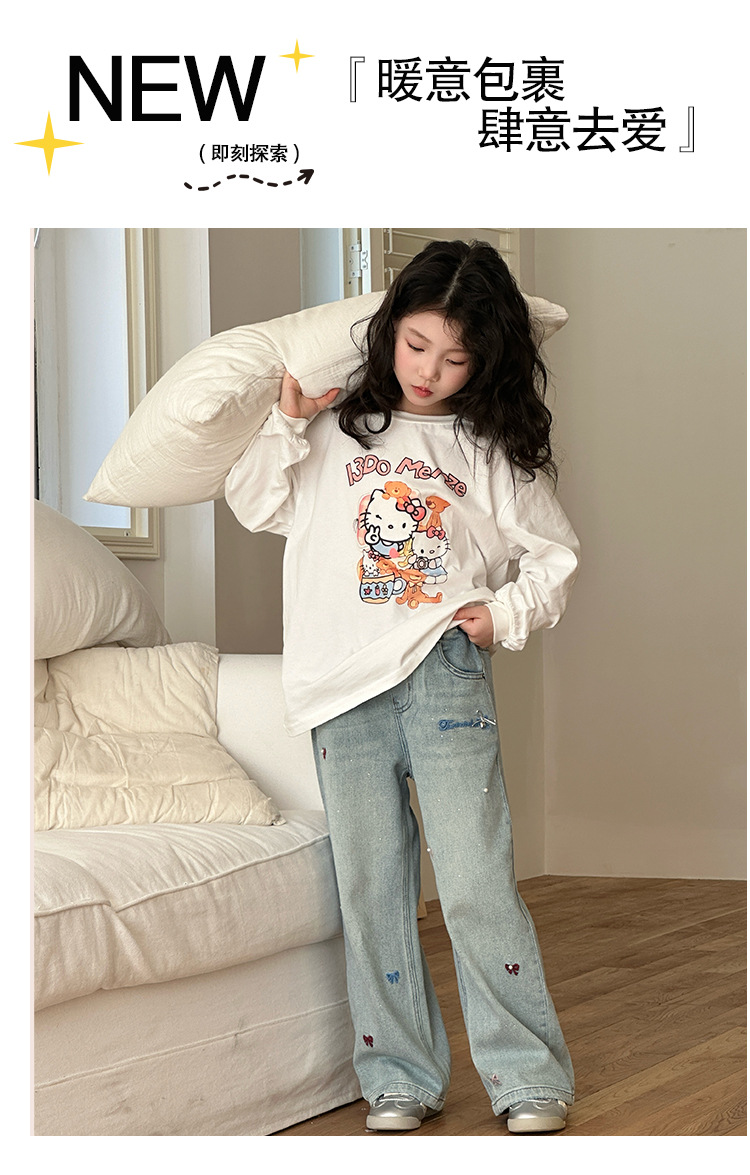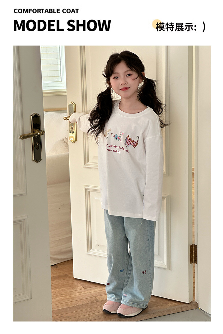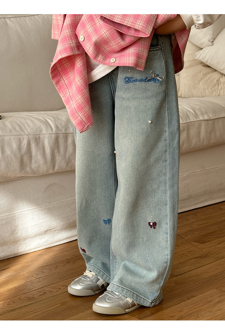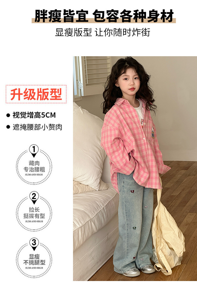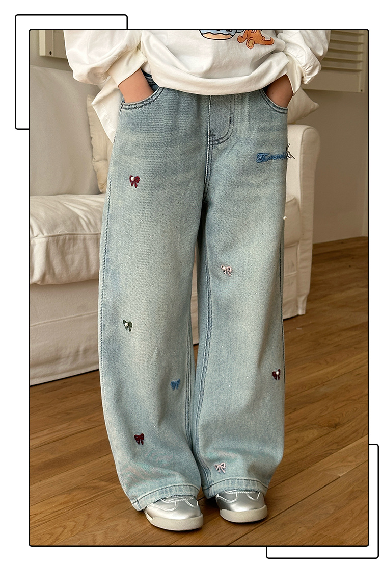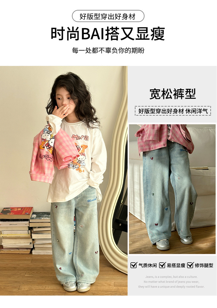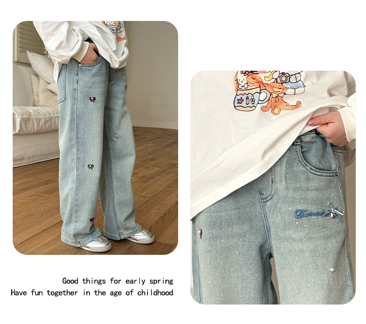 소녀 청바지 봄과 가을 2025 새로운 서양식 중 및 빅 키즈 느슨한 스트레이트 와이드 다리 바지 어린이 캐주얼 바지스토어 가기