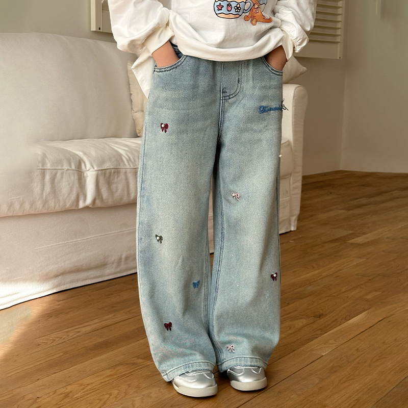 소녀 청바지 봄과 가을 2025 새로운 서양식 중 및 빅 키즈 느슨한 스트레이트 와이드 다리 바지 어린이 캐주얼 바지