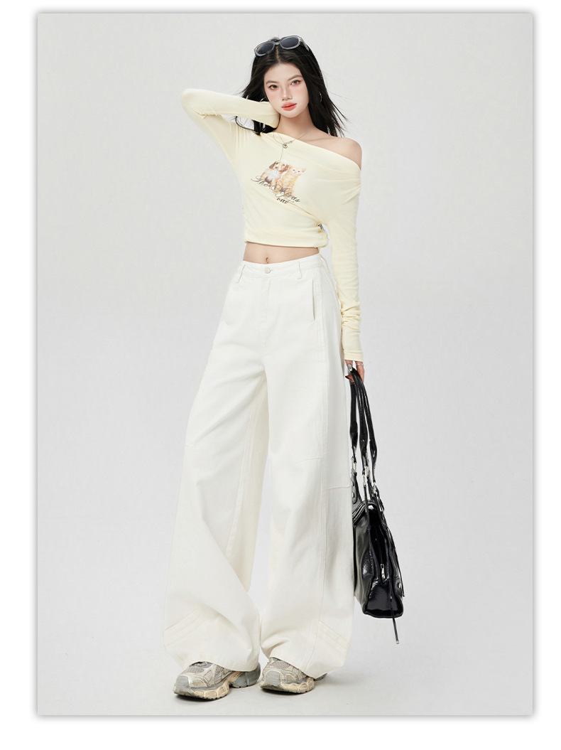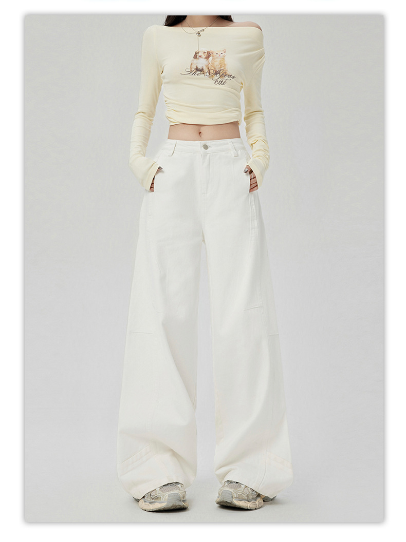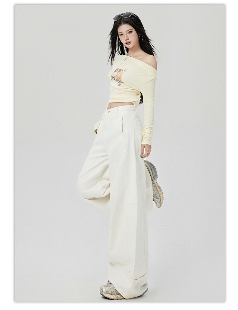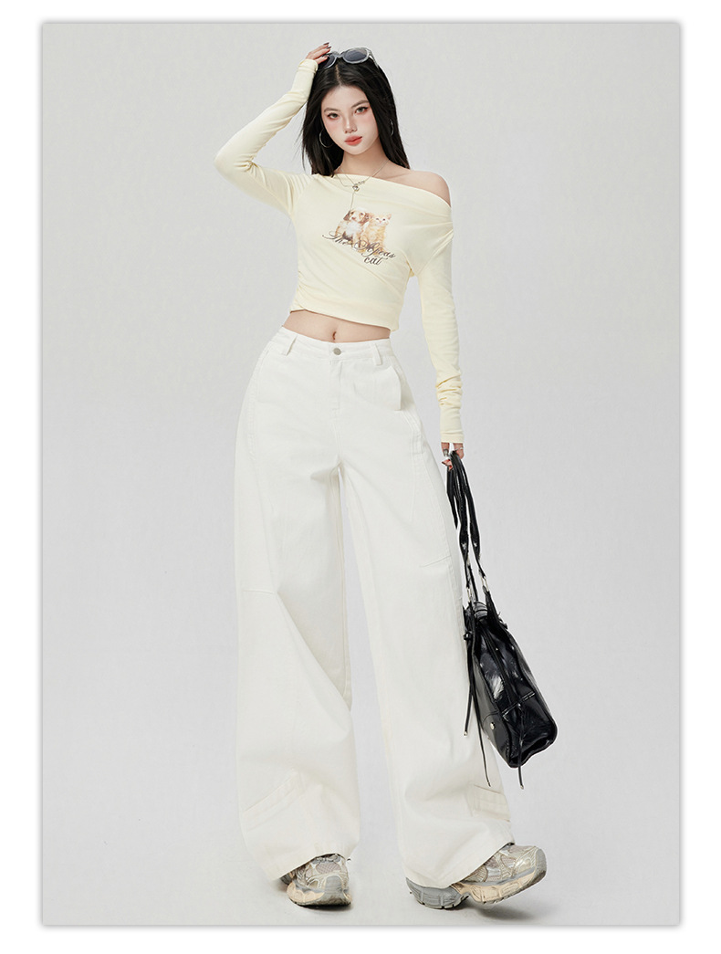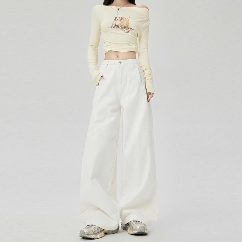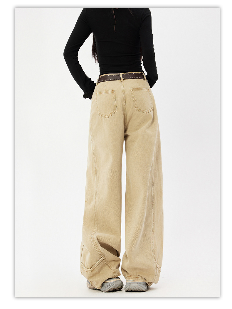오렌지 실크 여성복 # 미국 레트로 스타일 주름 와이드 레그 카이트 팬츠 여름 신상 라이트 카키 하이웨이스트 슬림핏 청바지