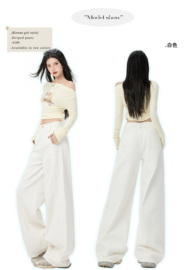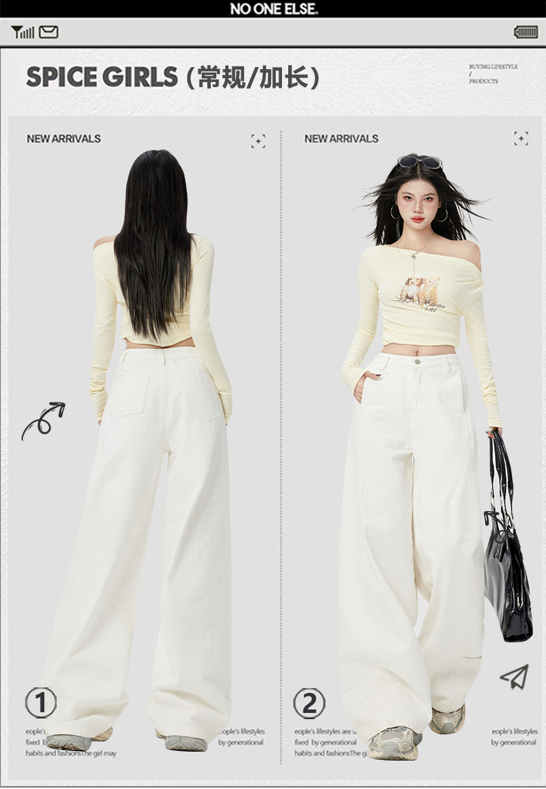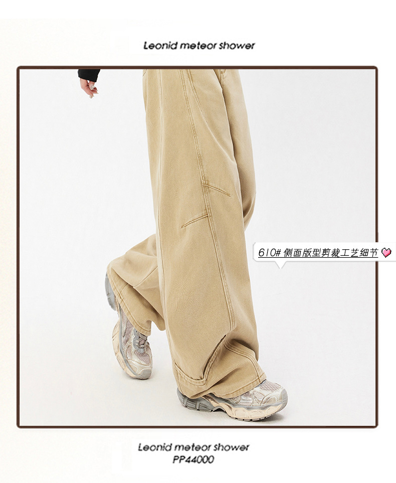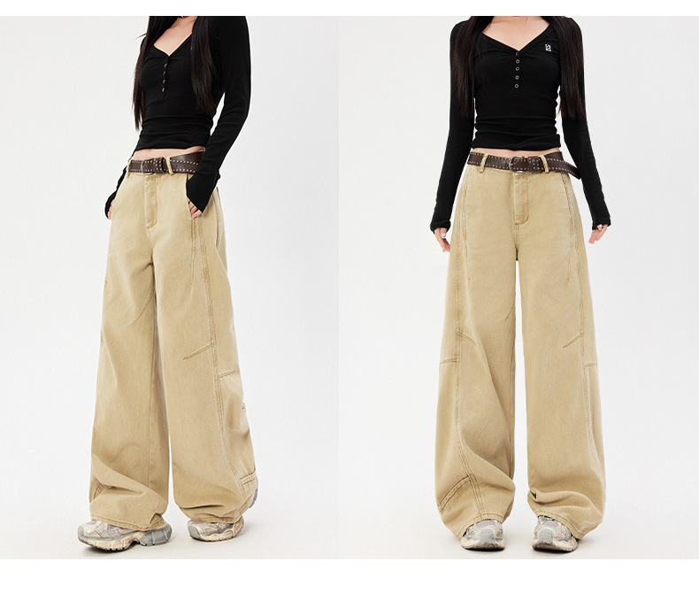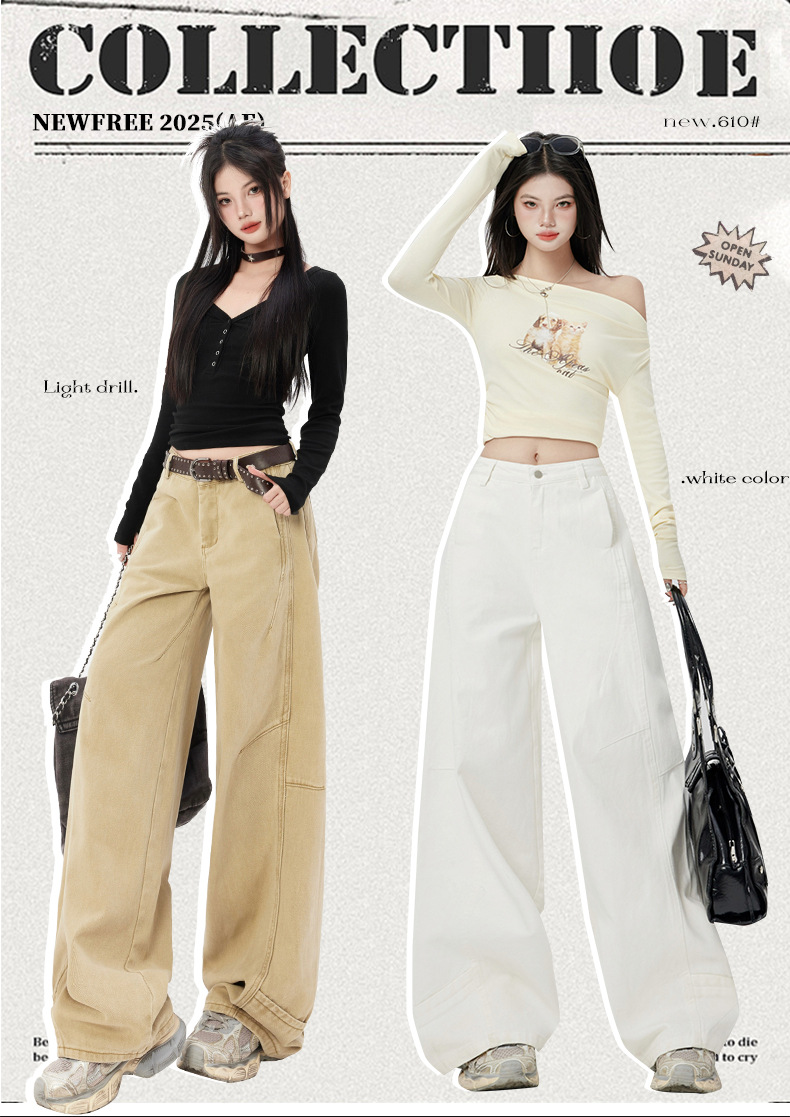 오렌지 실크 여성복 # 미국 레트로 스타일 주름 와이드 레그 카이트 팬츠 여름 신상 라이트 카키 하이웨이스트 슬림핏 청바지스토어 가기