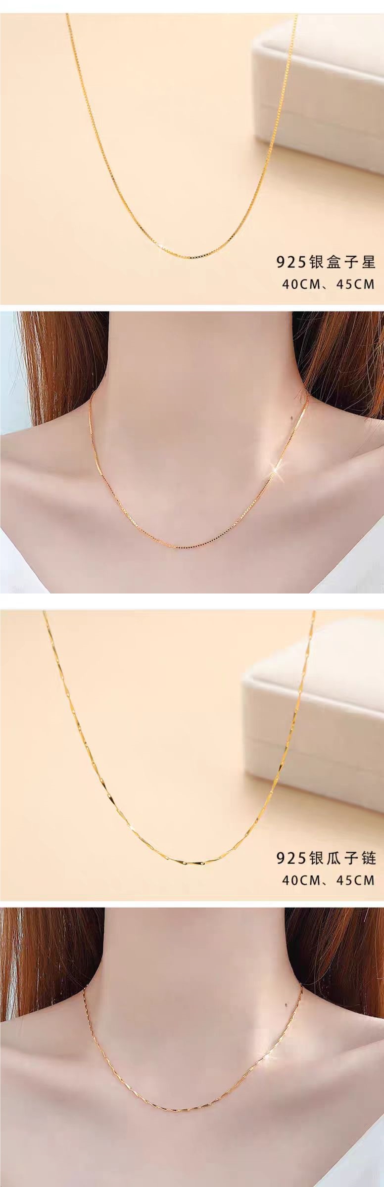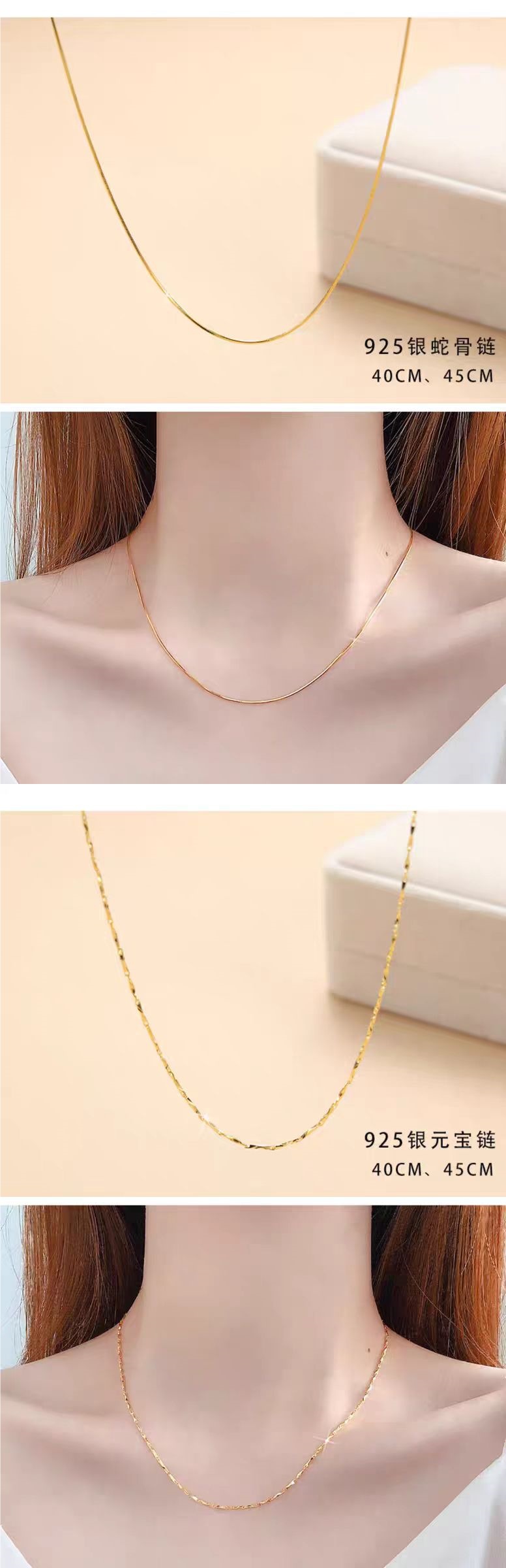 18k 골드 목걸이 여성용 925 스털링 실버 도금 골드 컬러 체인 일반 골드 체인 울 체인 얇은 알몸 체인 쇄골 체인 액세서리스토어 가기