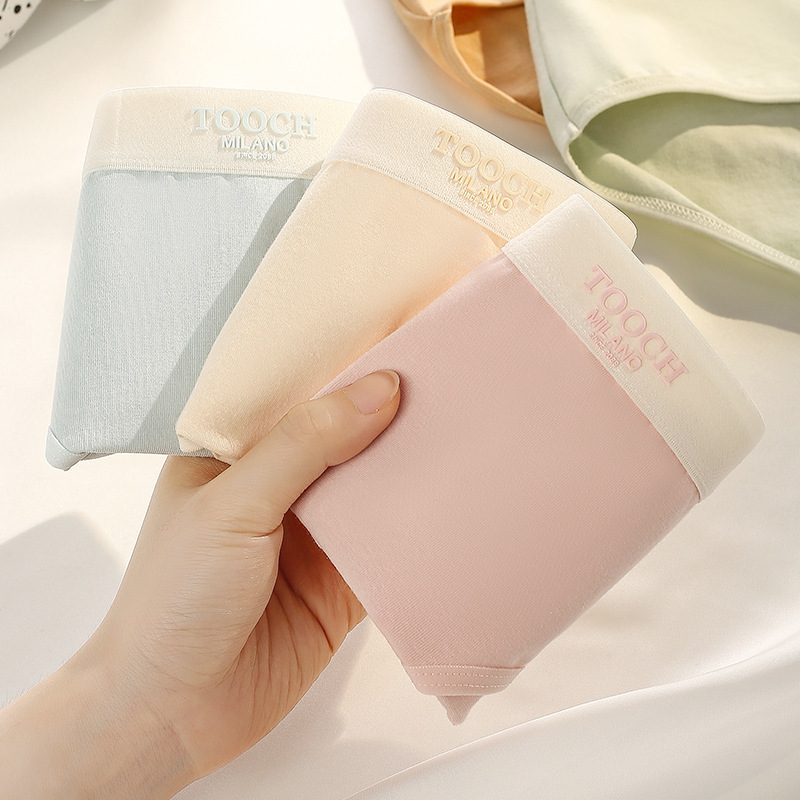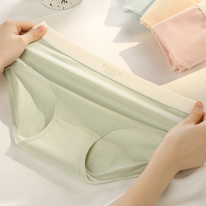 순수한 면화 여성용 속옷을 떨어 뜨리는 간단한 명암 허리 접착제 어린 소녀를위한 중간 허리 피부 친화적 인 통기성 박균 면화 내부 바지